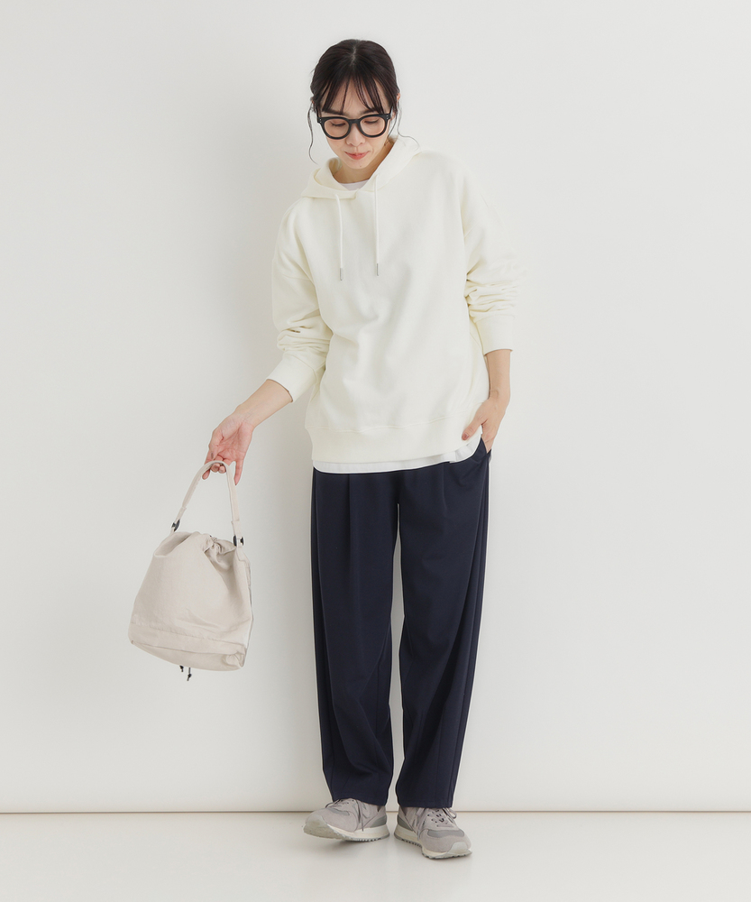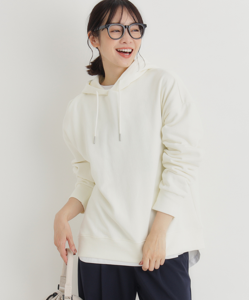 【仕様】シンプルで洗練されたデザインのスウェットプルパーカー。リラックス感のあるシルエットが特徴で、どんなスタイルにも合わせやすいアイテムです。フード付きでカジュアルさがありつつ、上品さを忘れない仕上がりです。【素材】 柔らかな肌触りのスウェット生地を使用。しっかりとした肉感ながらも軽やかで、季節の変わり目にも最適。通気性にも優れ、快適な着心地を提供します。毎日のスタイリングに活躍する素材感です。 【スタイリング】 タイトなボトムスやデニムと合わせてバランスをとるのがおすすめ。レイヤリングを楽しむためにシャツを重ねたり、スカートと合わせてカジュアル・フェミニンな印象を引き出すことも可能です。