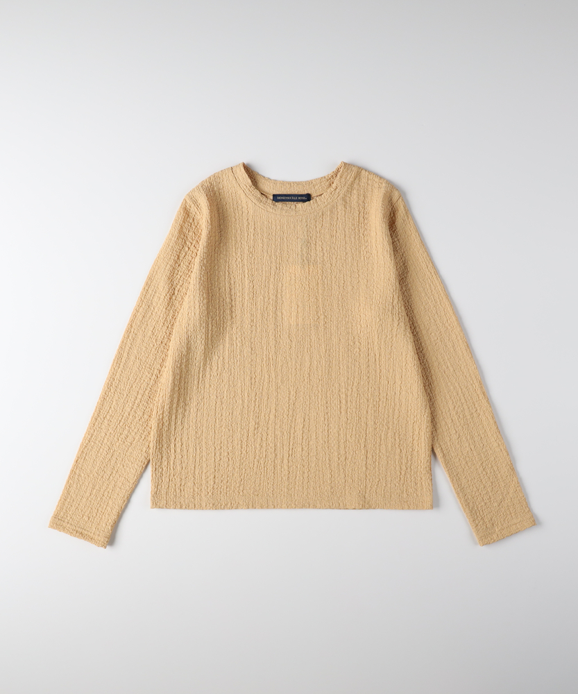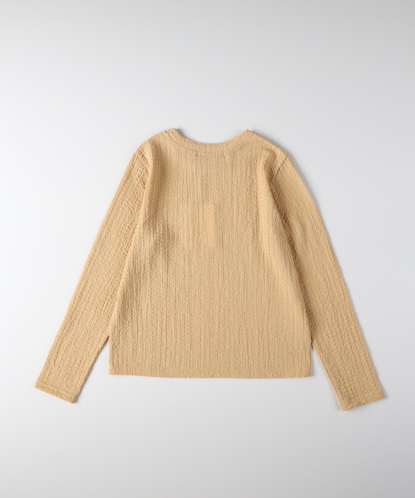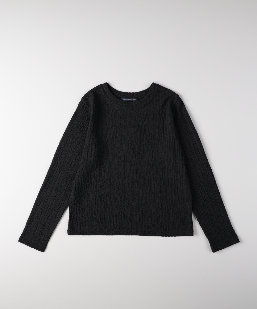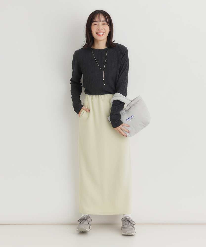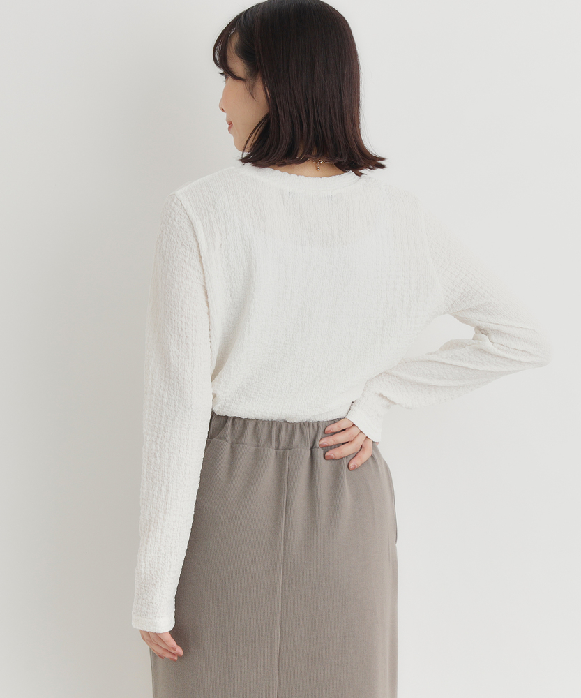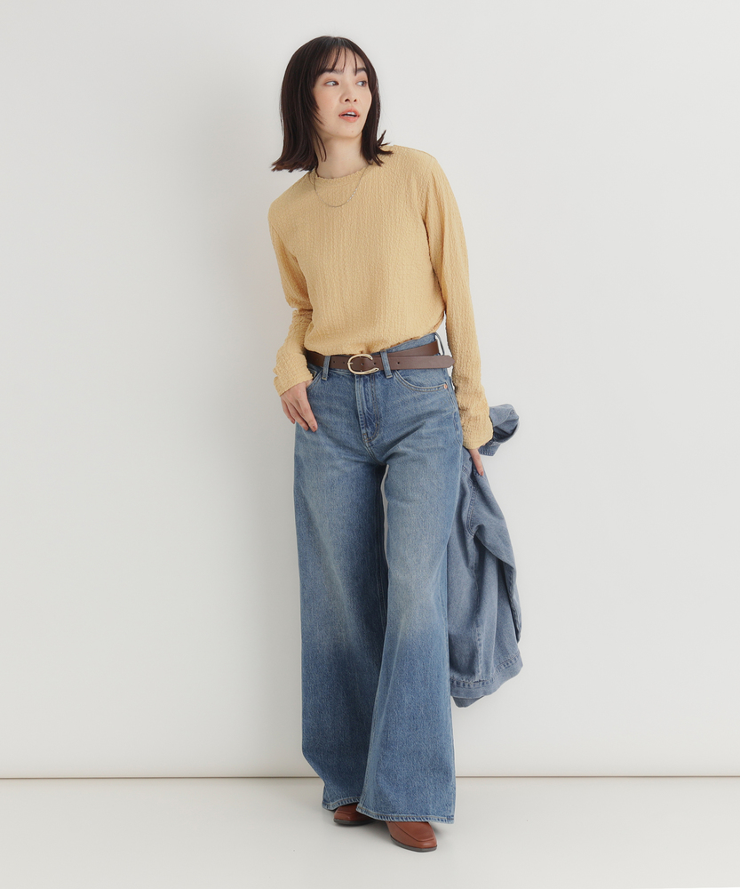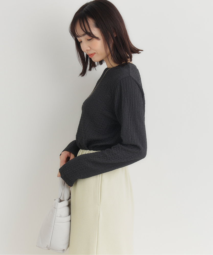 【仕様】洗練されたジャガード長袖Tシャツは、ソフトな質感と繊細なテクスチャーが魅力の一着です。ゆったりとしたフィット感が心地よく、どんなスタイルにも合わせやすいデザイン。ベーシックながらも、ほんのり個性的な印象を与え、女性らしさを引き立てます。【素材】 肌触りが良く、通気性に優れた素材を使用しているため、快適さを実現しています。ジャガード編みは、立体感を出しつつも軽やかな着心地を与え、秋冬の重ね着にも最適。また、耐久性も兼ね備えており、長く愛用できるアイテムに仕上げられています。 【スタイリング】 デニムと合わせることで、カジュアルでありながらも洗練された雰囲気を演出します。また、スカートやワンピースのインナーとして着ることで、レイヤードスタイルを楽しむことができます。シンプルながらもスタイルを引き立てる優れたアイテムです。
