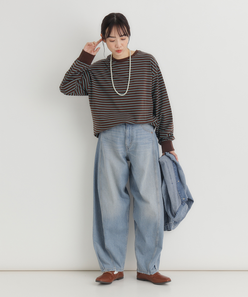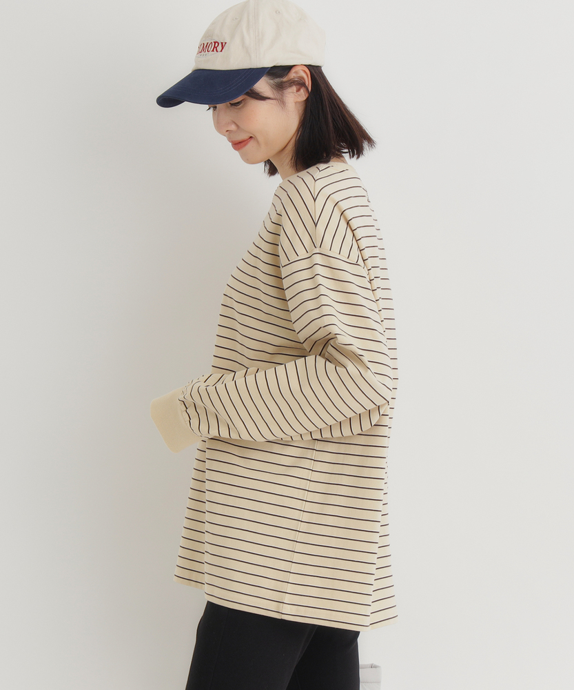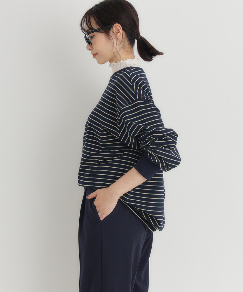 【仕様】トレンドのマルチボーダーをあしらったロングTシャツ。ゆったりとしたシルエットがリラックス感を演出し、カジュアルでありながら洗練された雰囲気を醸し出します。どんなボトムスとも相性抜群のアイテムです。【素材】 しなやかな素材を使用し、肌触りはとても心地よい仕上がりです。優れた通気性があり、季節を問わず快適に着用できる一枚。耐久性にも優れているため、長く愛用できるアイテムとなっています。 【スタイリング】 デニムやスラックスと合わせてカジュアルにまとめるのはもちろん、スカートと合わせてフェミニンな印象にもコーディネートできます。これ一枚でコーデを格上げするスタイルが楽しめます。