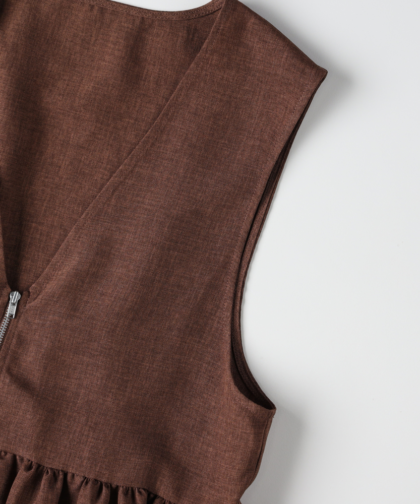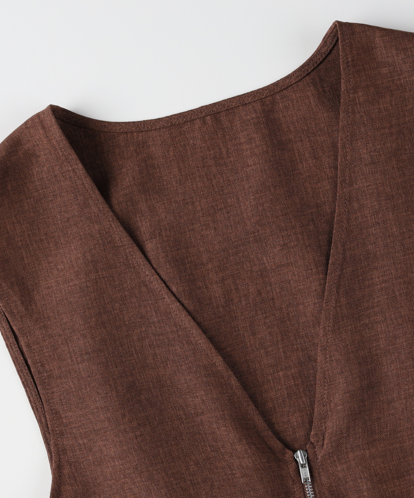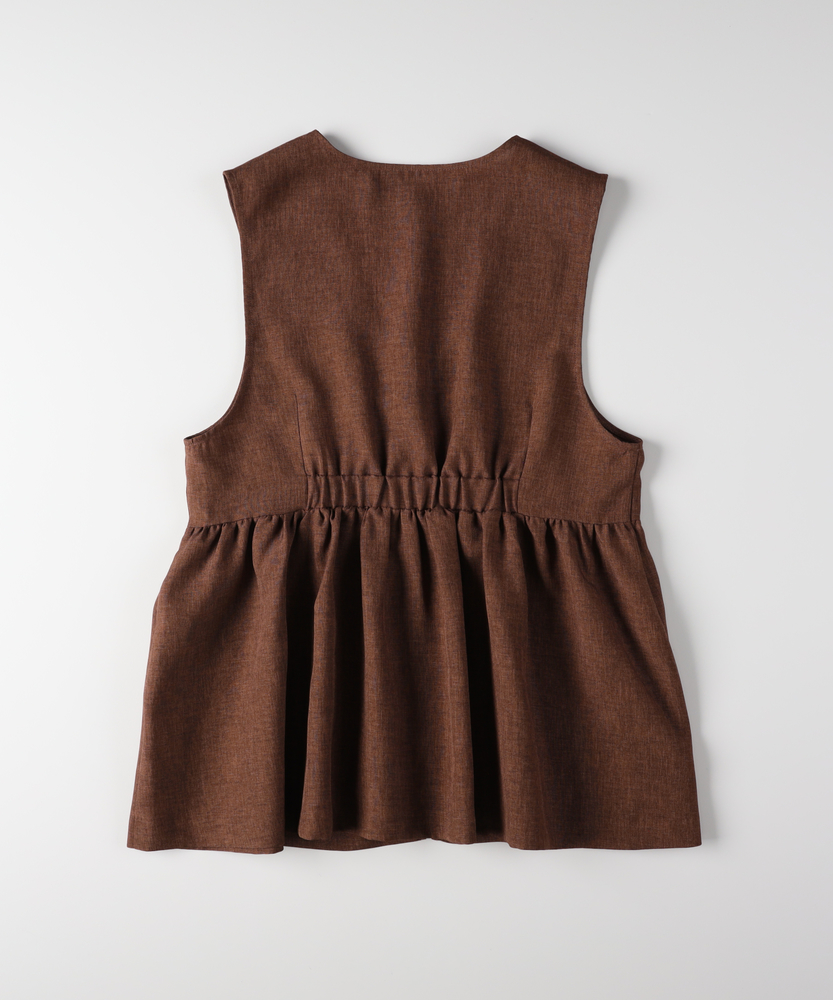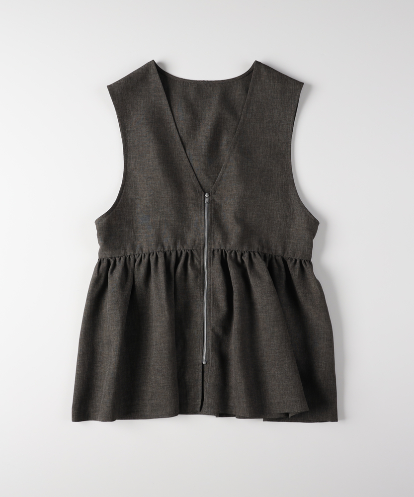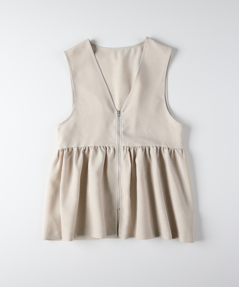 重ねるだけで、いつものコーデが見違える。甘すぎない「大人ペプラム」で、メリハリのある旬なスタイルへ。体型カバーとスタイルアップを同時に叶える、優秀レイヤードアイテム。■Point・スタイルアップ叶う「ペプラムシルエット」高めの位置に入れたウエスト切り替えがポイント。腰の位置を高く見せ、脚長効果を発揮します。ふんわり広がる裾が、女性らしい華やかさをプラス。・甘さを抑える「フロントジップ」シャープなシルバーのジップがアクセント。フェミニンなギャザーデザインを程よくカジュアルダウン。縦のラインを強調し、すっきりとした印象を与えます。・顔周りをシャープにする「深Vネック」デコルテをきれいに見せる深めのVネックライン。インナーのデザインを選ばず、レイヤードもスムーズ。タートルネックやロゴTとも相性抜群です。・気になる部分を隠す「体型カバー力」お腹周りや腰回りのラインを自然に目隠し。ギャザーの立体感で、ボディラインを拾いません。360度どこから見ても自信が持てるシルエット。・季節を問わず使える「ドライな質感」Tシャツからニットまで、合わせる素材を選びません。ロングシーズン着回せる、程よい厚みの生地感。いつもの服装にプラスワンするだけで鮮度がアップ。・ボトムスを選ばない「絶妙な丈感」パンツにもスカートにも合わせやすいバランス。ヒップにかかるくらいの丈が安心感を演出。ワイドパンツと合わせても重たくならずに決まります。【仕様】トレンドのペプラムシルエットを取り入れた、フェミニンかつモードな印象のベストです。胸下で切り替えたたっぷりのギャザーが立体的なフォルムを作り出し、シンプルながらも存在感のある一着に。フロントをジップ仕様にすることで甘さを抑え、大人の女性がデイリーに取り入れやすいデザインに仕上げました。【素材】さらりとしたドライなタッチで、ナチュラルな風合いを持つ素材を使用しています。程よいハリ感があるため、ペプラムのきれいなシルエットをキープ。季節の変わり目のレイヤードスタイルに重宝する、軽やかな着心地です。シワになりにくいのも嬉しいポイント。【スタイリング】シンプルなロンTやカットソーに重ねるだけで、一気にトレンド感のあるスタイルが完成します。ボトムスはタイトスカートやスリムパンツですっきりとまとめるのがおすすめ。同系色のボトムスと合わせてセットアップ風に着こなしたり、ワンピースの上に羽織って目線アップを狙うのもおしゃれです。 【セットアップで着用可能なアイテムはこちら】HR26102200011 【そよラク】コクーンパンツ/セットアップ対応