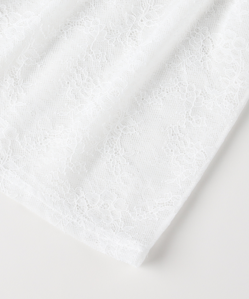 ・この商品はレース生地を使用しております。編みの目が広い為、装飾品などの突起物が引っかけやすくなっております。また、過度な力が加わると糸切れや縫い目が開いたり、目ヨレや破れが発生 する事があります。着用時などはご注意下さい。 ・別布は素材の特性上、高湿度や水分で収縮することがあります。雨や水に濡れた場合は、早めに拭き取り、当て布をしたアイロンで形を整えてください。色によっては、輪ジミになることがあります。万一輪ジミが出来た場合は、クリーニング店に説明の上、ご依頼ください。座ったり、保管中にシワが出来た場合は、当て布をしたアイロンで整えてください。湿った状態での過度の摩擦は、他のものへ色移りしたり、毛羽立って白く見えることがあります。