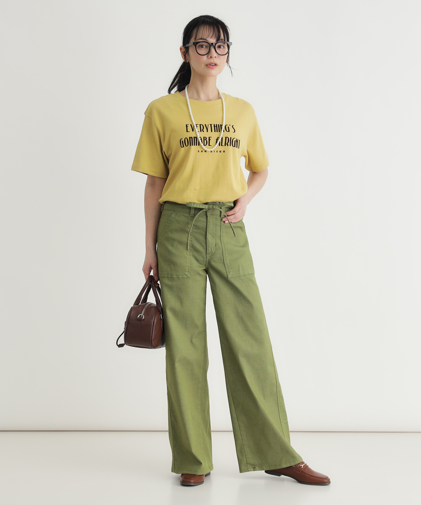 「大人の遊び心」を纏う、選べる楽しさ。1枚で決まる、洗練グラフィックTシャツ。カジュアルなのに、どこか上品な佇まい。■Point・個性が光る「アソートデザイン」シンプルなロゴからヴィンテージ風フォトまで、気分や好みに合わせて選べるバリエーション展開。・絶妙な「ゆとり」シルエット体のラインを拾いすぎず、リラックスして着られるサイズ感。大人の余裕を感じさせる着こなしに。・こなれ感を生む「ラウンドヘム」裾が緩やかな曲線を描くデザイン。アウトで着ても野暮ったくならず、サイドからのシルエットも美しく見せます。・気になる二の腕を「カバー」少し長めに設定された袖丈が、露出を控えたい大人女性の悩みをさりげなく解消します。・心地よい「肌触り」デイリーに素肌に着たくなる、ナチュラルで柔らかな風合い。ストレスフリーな着心地です。・インもアウトも「自由自在」ボトムスにインしてすっきりと見せるのも、アウトでリラックス感を出すのも様になる万能な丈感です。【仕様】ベーシックなクルーネックをベースに、それぞれ異なるグラフィックを施したアソートTシャツです。幼く見えない洗練されたフォント選びや、落ち着いた配色のプリントなど、大人が日常に取り入れやすいデザインにこだわりました。裾は前後差のあるラウンドカット仕様になっており、ヒップ周りを自然にカバーしつつ、動きのある軽やかな印象を与えます。【素材】肌馴染みの良い、柔らかなカットソー生地を使用しています。適度な厚みがあるため1枚でも安心して着用でき、シーズンを通して長く愛用いただけます。洗いざらしのようなナチュラルな風合いが、気取らない大人のカジュアルスタイルにマッチし、洗濯などのお手入れもしやすい素材感です。【スタイリング】デニムと合わせた王道カジュアルはもちろん、スラックスやタイトスカートと合わせれば、程よく力の抜けた「大人きれいめ」スタイルが完成します。裾のデザインを活かし、ワイドパンツの上にさらりと出してもバランス良く決まります。ジャケットやカーディガンのインナーとして、ロゴをチラ見せするアクセント使いもおすすめです。