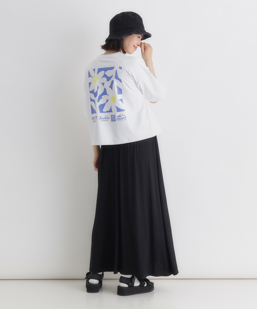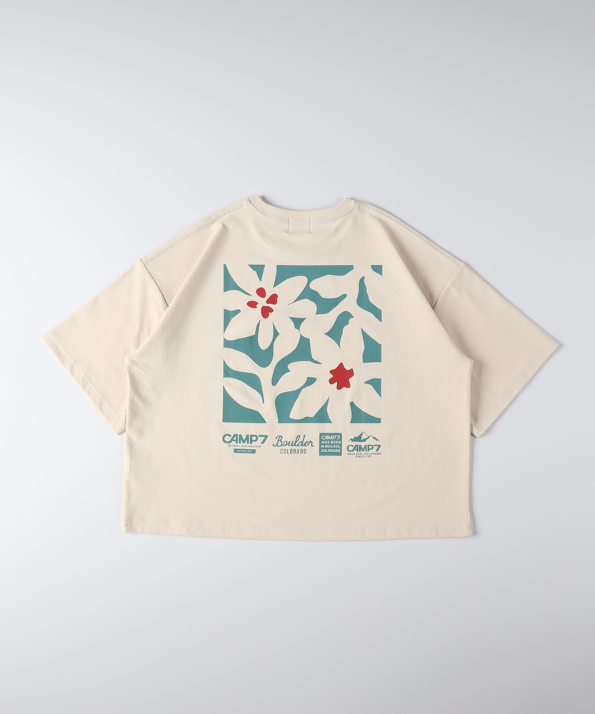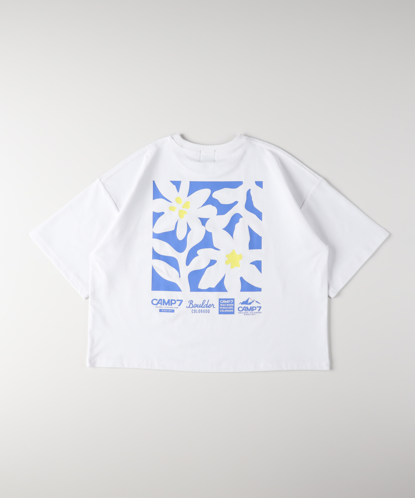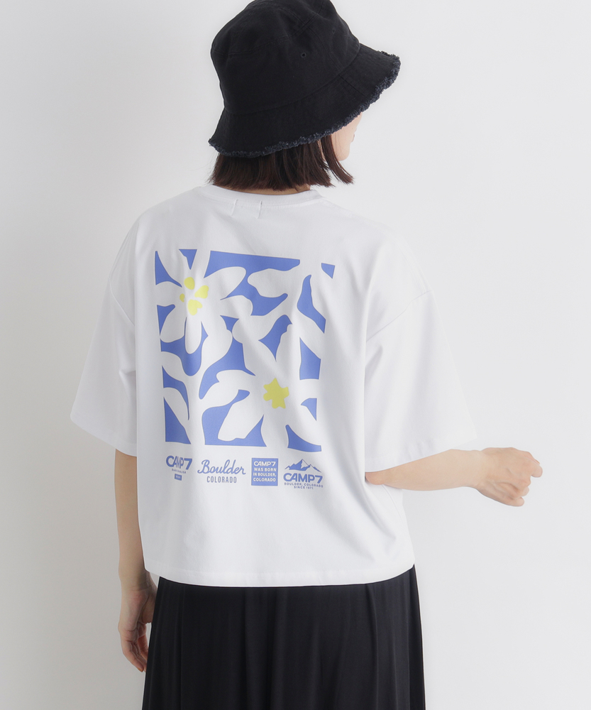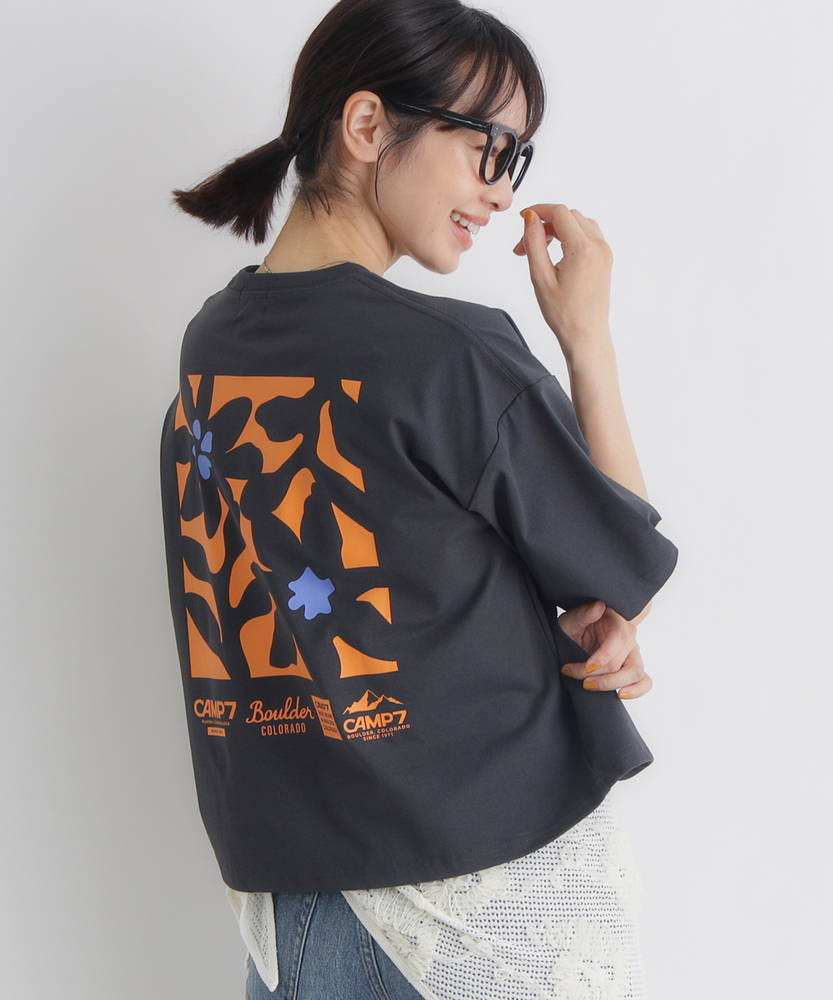 夏に映えるボタニカルプリント。旬のショート丈でスタイルアップ。快適機能を備えた大人のデイリーTシャツ。■Point・印象的なバックプリント夏らしい華やかな花柄デザイン。後ろ姿を鮮やかに彩ります。一枚で主役になる存在感。・抜け感のあるショート丈トレンド感のあるショート丈。すっきりと軽やかな印象。自然なスタイルアップを叶えます。・ゆったりシルエット身幅を広くとった設計。リラクシーな着心地をキープ。気になる体型も優しくカバー。・夏に嬉しいUVカット気になる紫外線をガード。日差しの強い季節も安心。夏の外出を快適にサポートします。・快適な吸水速乾性汗をかいても素早く乾く吸水速乾性。サラッとした肌触りが続きます。アクティブな日も快適に。・コットンのような風合いポリエステル100%の素材。ナチュラルで柔らかな肌触り。毎日のお手入れも簡単で実用的。【仕様】背面に大胆に施されたボタニカルなフラワープリントが、夏の日差しに映える一枚。フロントは胸元のさりげないロゴプリントのみで、大人も着やすいすっきりとしたデザインに仕上げました。トレンド感のあるショート丈と、体を包み込むようなゆったりとした身幅のバランスが絶妙で、リラクシーでありながらこなれた印象を与えます。【素材】ポリエステル100%でありながら、まるでコットンのようなナチュラルで柔らかな風合いが魅力。夏の環境にも頼もしい、UVカット機能と吸水速乾機能を備えています。汗をかいても乾きやすく、サラッとした快適な着心地をキープ。アクティブなレジャーから日常のお出かけまで、幅広いシーンで活躍する優秀素材です。【スタイリング】すっきりとしたショート丈は、ハイウエストのワイドパンツやマキシスカートと相性抜群。腰回りを高く見せ、自然なスタイルアップを叶えます。ボリュームのあるボトムスと合わせてもバランス良くまとまり、メリハリのあるシルエットに。キャップやスニーカーを合わせた、軽快なカジュアルスタイルに最適なアイテムです。【CAMP7】CAMP7は、1971年アメリカ合衆国コロラド州ボルダーにて設立されたブランド。ロッキー山脈に集まる世界中のクライマーたちの要望に応え、常にハイクオリティな商品を開発・提供してきました。流行に左右されず、機能を追い求める姿勢が、古き良き時代のアメリカ製品として、愛好家たちの間で支持を受けています。