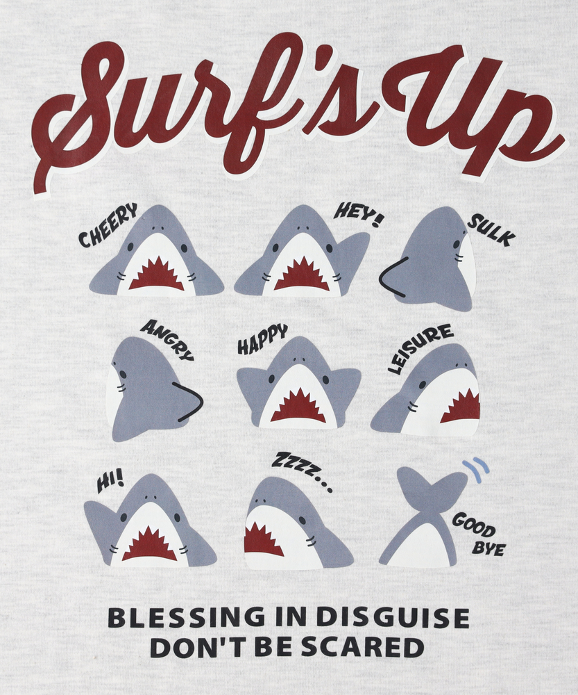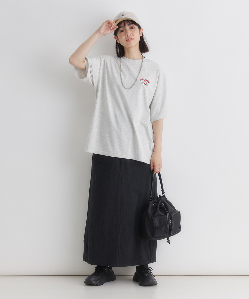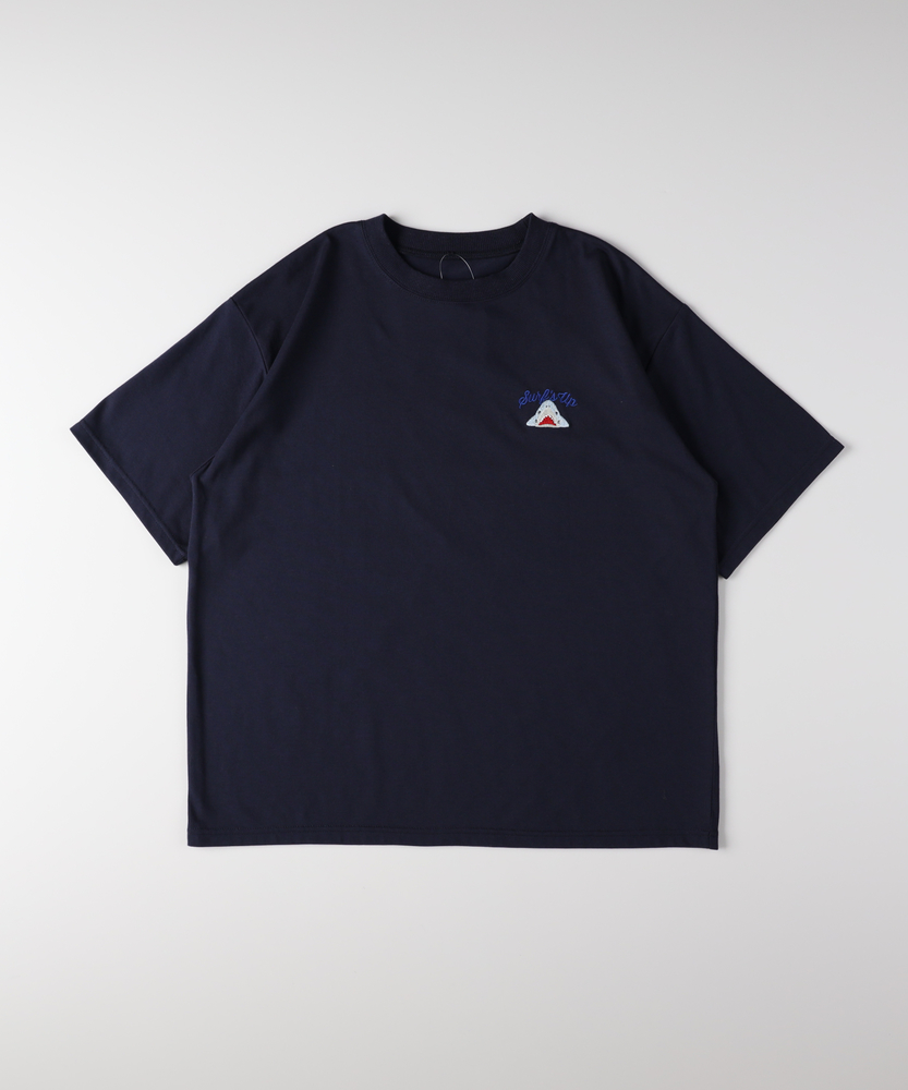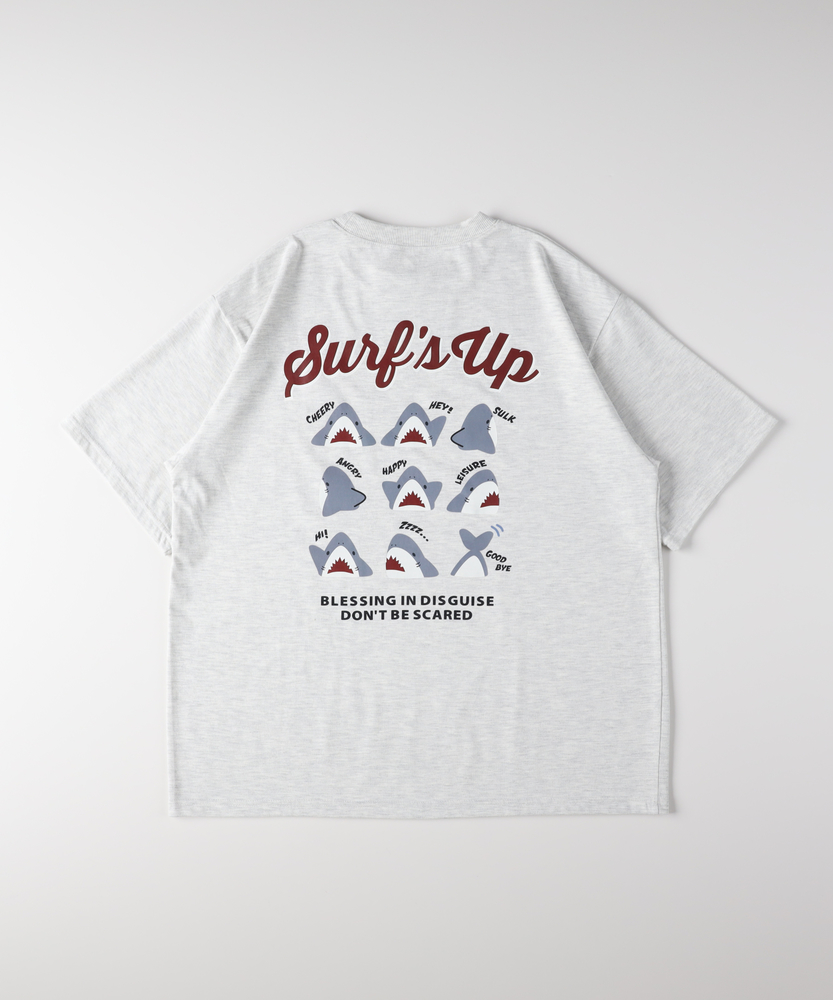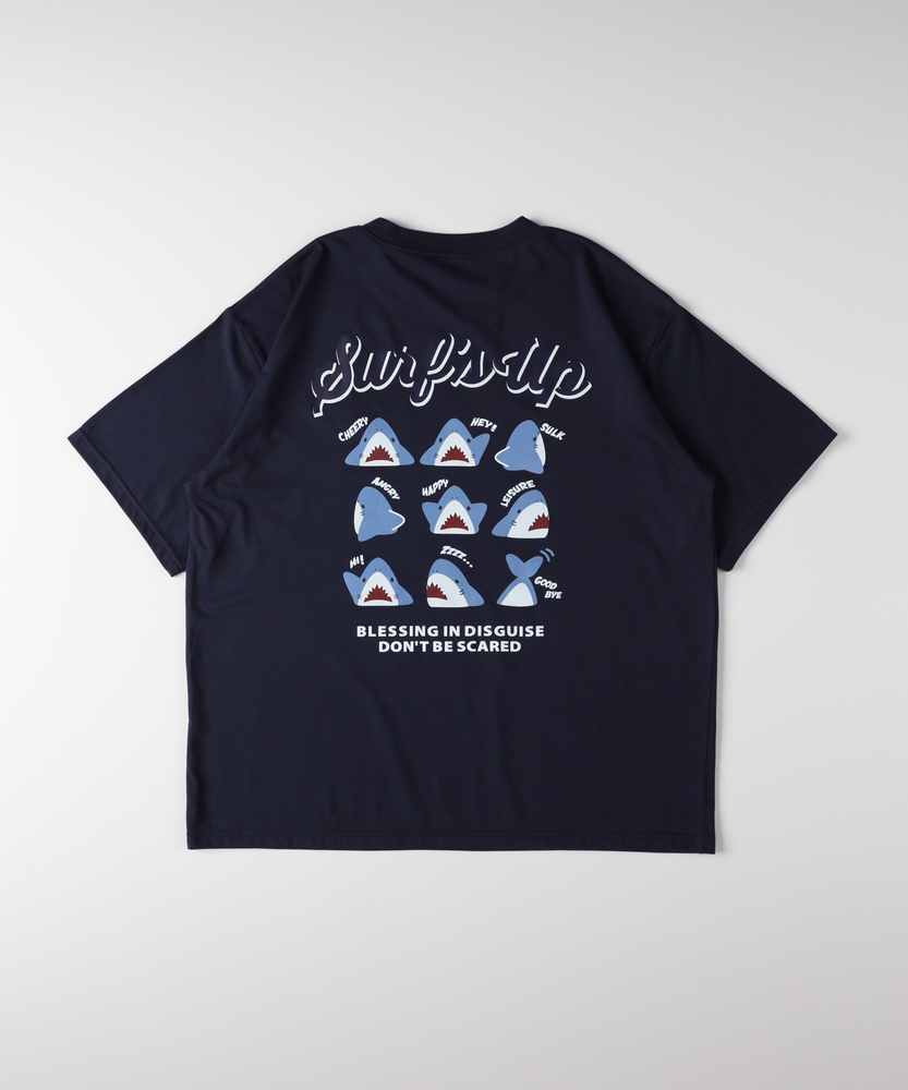 後ろ姿で語る、大人の遊び心。ゆったりシルエットで叶える「エフォートレスな日常」。リラクシーに着映える、主役級プリントTシャツ。■Point・目を惹くバックプリント愛嬌たっぷりのサメたちが勢ぞろい。後ろ姿に遊び心をプラスします。大人のカジュアルコーデのアクセントに。・フロントはシンプルに胸元にはさりげないワンポイント。前から見るとすっきりとした印象に。どんなボトムスとも好相性です。・こなれ感漂うビッグシルエットゆったりとしたオーバーサイズ。身体のラインを拾わずリラックス。自然な抜け感を演出します。・華奢見えドロップショルダー肩のラインを落としたデザイン。二の腕周りも優しくカバーします。女性らしい柔らかなシルエットに。・着回しやすいベーシックカラー日常使いに馴染む落ち着いた色合い。お手持ちのアイテムと合わせやすい。色違いで揃えたくなる使い勝手の良さ。・定番のクルーネック首元がすっきり見えるクルーネック。程よい開き具合で安心感があります。レイヤードスタイルにも最適です。【仕様】ゆったりとした身幅とドロップショルダーが特徴のビッグシルエットTシャツです。フロントは左胸にさりげないワンポイントをあしらい、すっきりとした印象に。一方でバックには、表情豊かなサメのイラストとロゴを大胆にプリント。前後で異なる表情を楽しめる、大人の遊び心をくすぐるデザインに仕上がっています。【素材】肌当たりが良く、デイリーユースにぴったりの柔らかな生地感です。厚すぎず薄すぎない程よい肉感で、一枚で着ても安心感があります。リラックスタイムからちょっとしたお出かけまで、気負わずデイリーに着回せるタフさも魅力。ロングシーズン活躍してくれる、ワードローブの頼れる味方です。【スタイリング】ボリュームのあるトップスなので、細身のテーパードパンツやリブスカートと合わせるとバランス良くまとまります。あえてワイドパンツやマキシスカートを合わせて、全体をゆるっとさせたリラクシーなスタイリングも今の気分。フロントだけ軽くタックインすれば、こなれ感のあるシルエットが完成します。