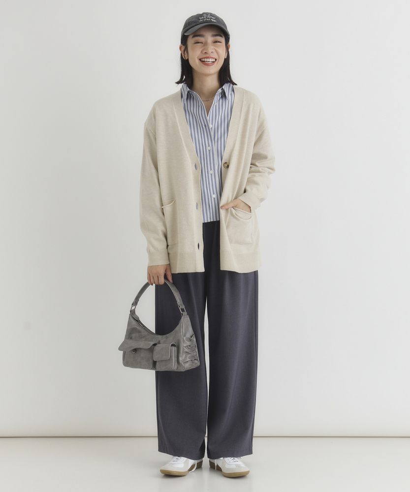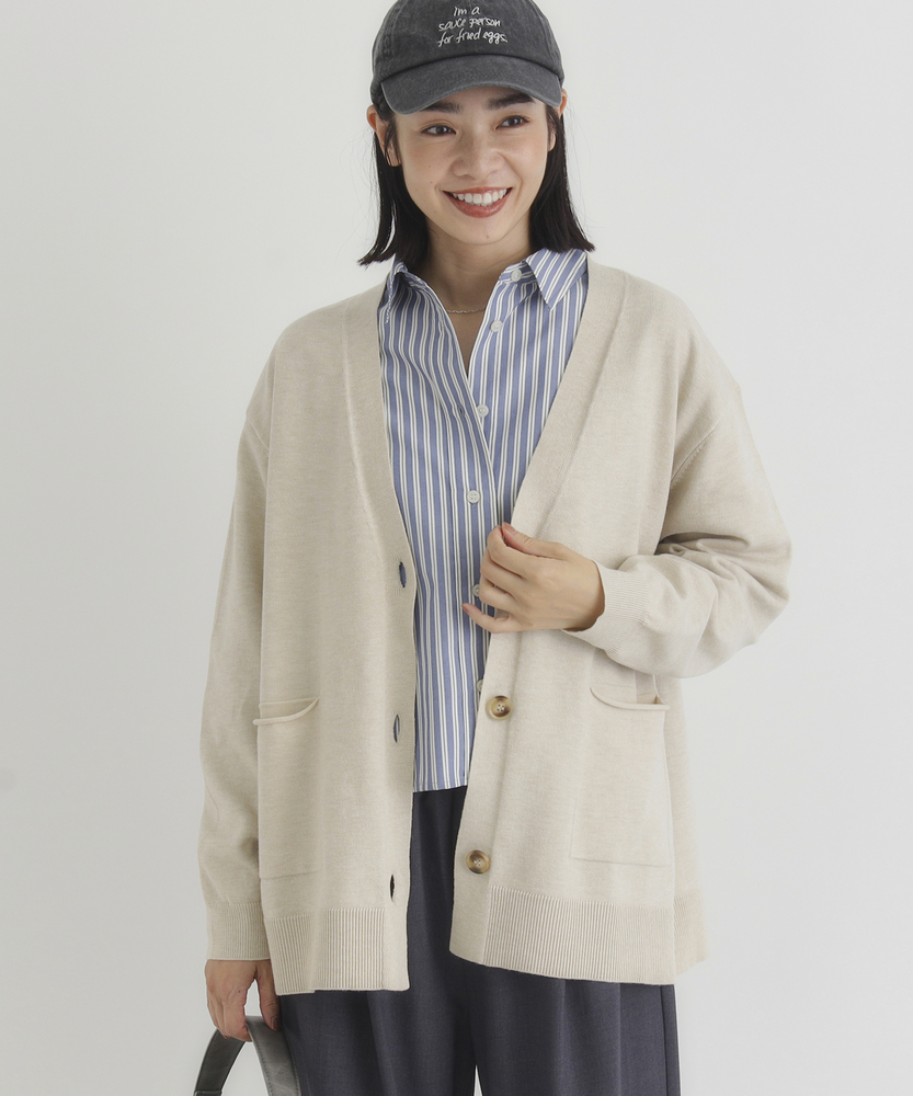「やわラク」とにかく柔らかく、肌触りが心地よい人気のニットシリーズ。■FUNCTION・マシンウォッシャブル 家庭用洗濯機での選択が可能でお手入れが簡単。・抗ピリング毛玉ができにくい。■Point・年齢に関係なく使いやすい程よくゆったりめのシルエット。気になる部分を隠せるように絶妙なシルエットに。・オーソドックスなデザインはどんなコーデにも使える・洗濯機での洗濯も出来、お手入れもラクラク。・コレ1つで秋気分に。【仕様】シンプルで洗練されたVネックニットカーディガンは、リラックス感のあるシルエットが特徴です。フロントのボタンとポケットがアクセントとなり、カジュアルながらも上品な印象を与えます。どんなスタイルにも合わせやすく、デイリーユースにぴったりです。【素材】 柔らかなニット素材は、肌触りが良く、着心地も抜群です。軽やかで通気性に優れ、季節を問わず快適に着用できます。シンプルなデザインながら、素材の質感が高級感を演出し、洗練されたスタイルを実現します。【スタイリング】 デニムやスカートと合わせてカジュアルに、またはワンピースの上に羽織ってエレガントに仕上げるのもおすすめです。シンプルなトップスと合わせることで、カーディガンの色合いを引き立て、洗練された印象を与えます。