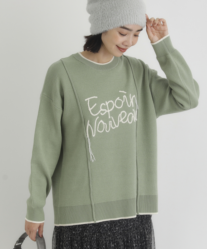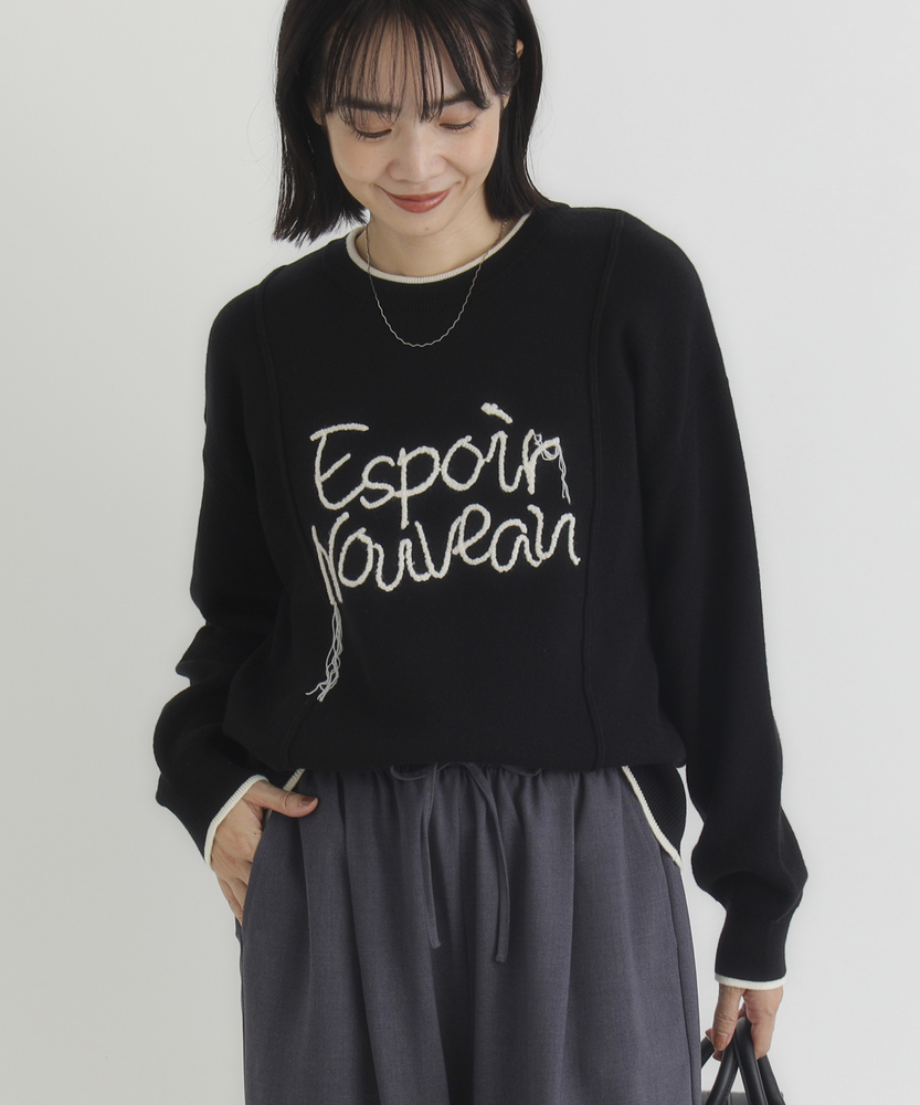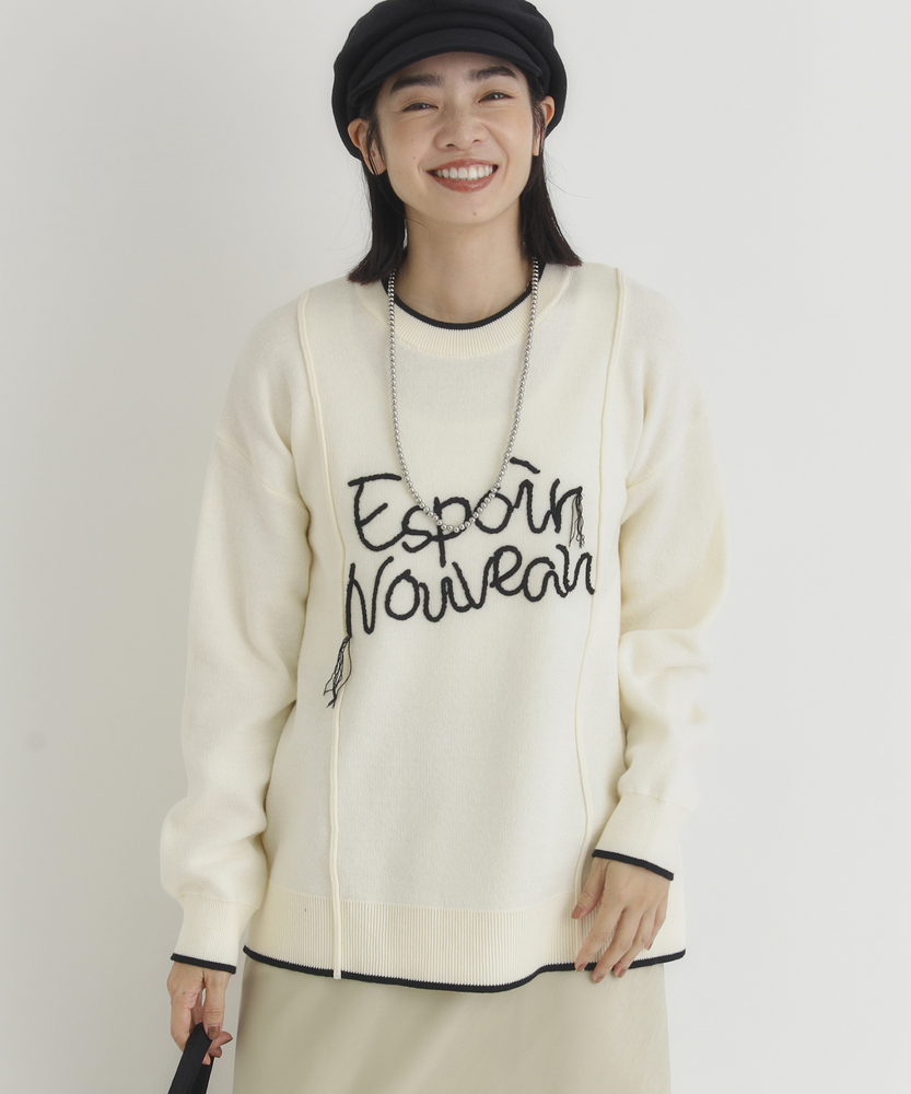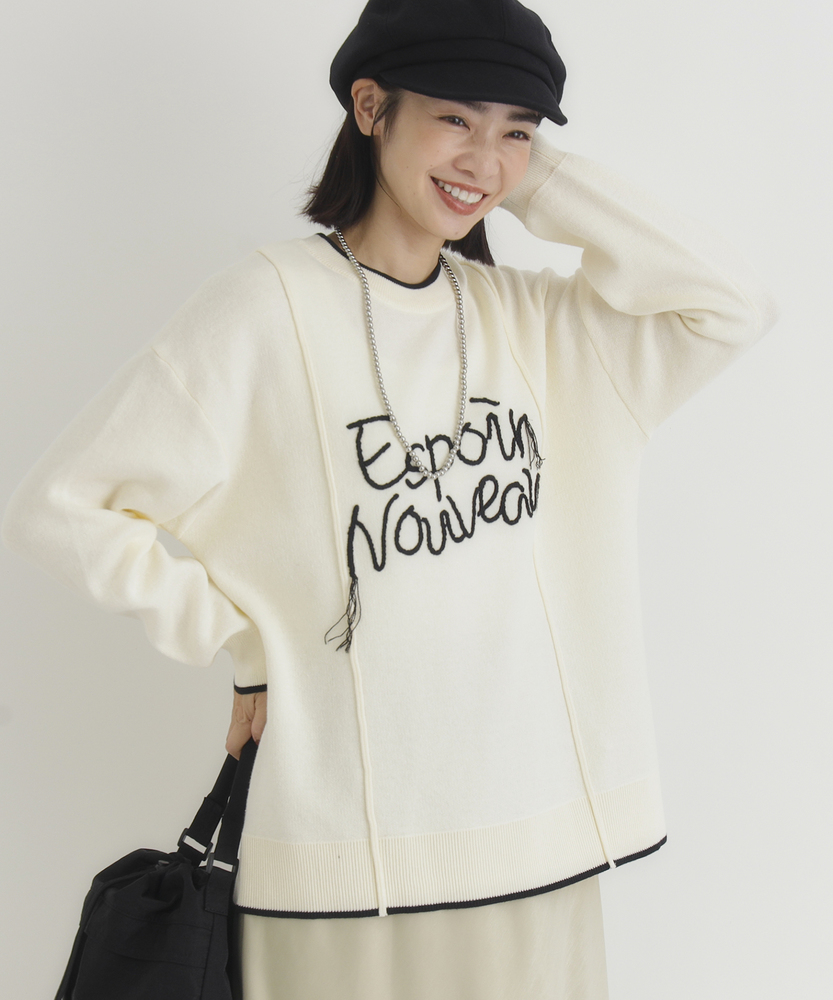 【仕様】立体感のあるロープ刺繍が施されたセーターは、トレンド感満載のレタリング風ロゴが特徴。絶妙なゆったり感で、気になる部分をさりげなくカバーしつつ、洗練されたシルエットを実現しています。シンプルながらも存在感のあるデザインが、日常のスタイルにエッセンスを加えます。【素材】 柔らかな風合いの素材を使用し、着心地の良さを追求。軽やかで通気性に優れた生地は、デイリーに気軽に着こなせる一着。ストレッチ性もあり、動きやすさを兼ね備えています。シンプルな中にも、素材の特性が引き立つデザインです。【スタイリング】 デニムやスカートと合わせてカジュアルに、またはテーパードパンツでクリーンな印象に仕上げるのがおすすめ。シンプルなアクセサリーをプラスすることで、洗練されたスタイルが完成します。季節を問わず活躍するアイテムとして、クローゼットに加えたい一着です。