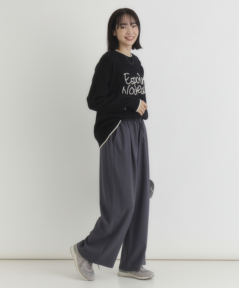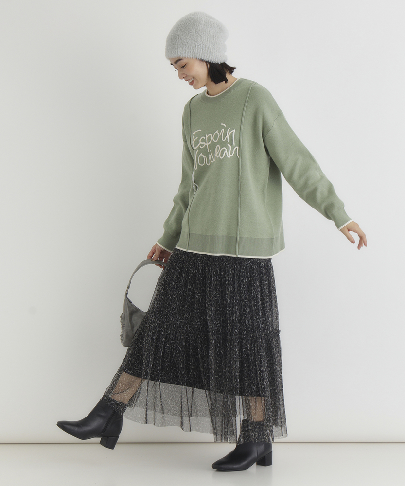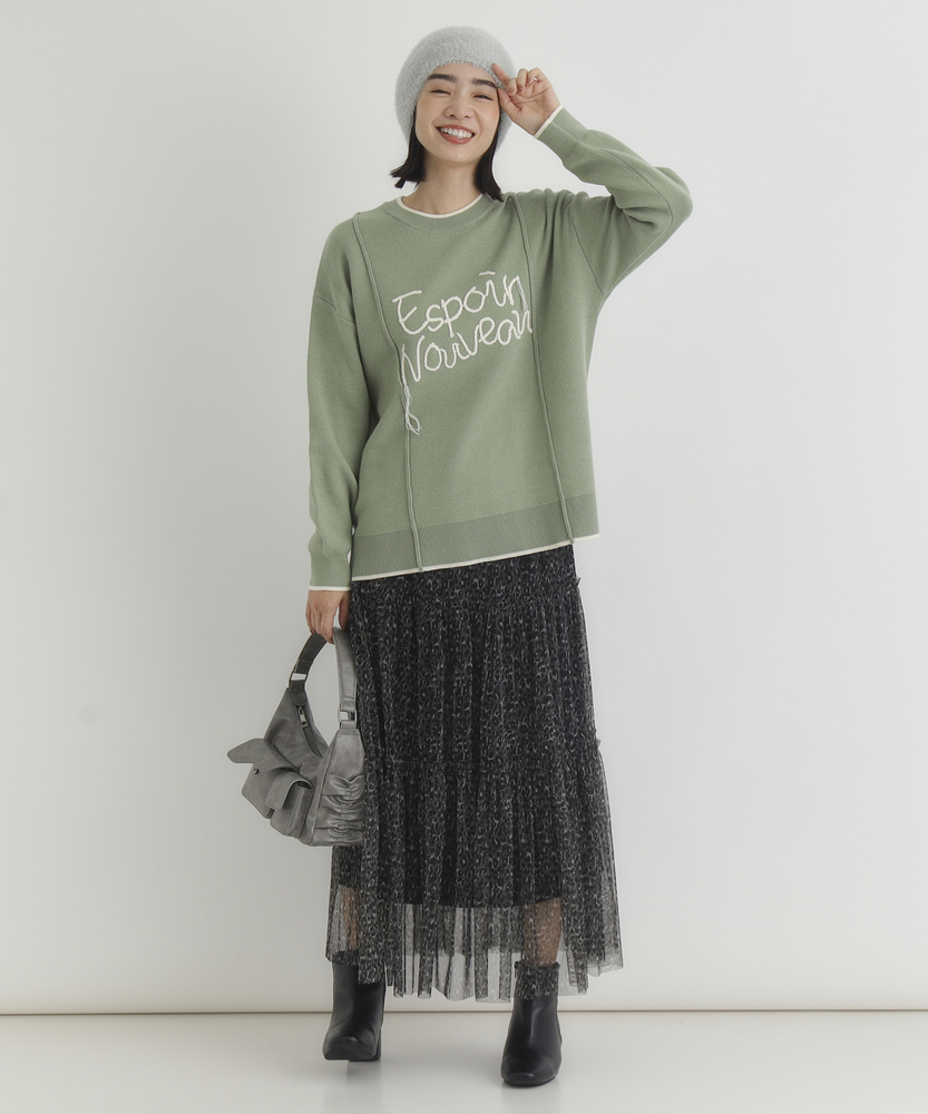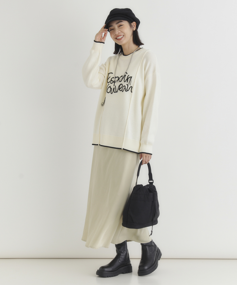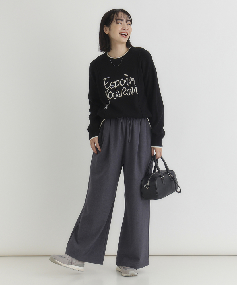 【仕様】立体感のあるロープ刺繍が施されたセーターは、トレンド感満載のレタリング風ロゴが特徴。絶妙なゆったり感で、気になる部分をさりげなくカバーしつつ、洗練されたシルエットを実現しています。シンプルながらも存在感のあるデザインが、日常のスタイルにエッセンスを加えます。【素材】 柔らかな風合いの素材を使用し、着心地の良さを追求。軽やかで通気性に優れた生地は、デイリーに気軽に着こなせる一着。ストレッチ性もあり、動きやすさを兼ね備えています。シンプルな中にも、素材の特性が引き立つデザインです。【スタイリング】 デニムやスカートと合わせてカジュアルに、またはテーパードパンツでクリーンな印象に仕上げるのがおすすめ。シンプルなアクセサリーをプラスすることで、洗練されたスタイルが完成します。季節を問わず活躍するアイテムとして、クローゼットに加えたい一着です。