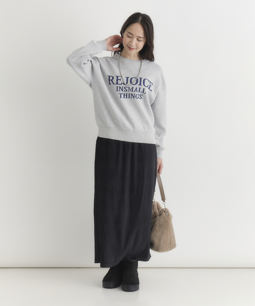 「やわラク」とにかく柔らかく、肌触りが心地よいニットシリーズ。こちらのニットはスウェット感覚で着られて、どこか品良く仕上がる。この秋冬はこれで決まり!の人気アイテム。■FUNCTIONマシンウォッシャブル 家庭用洗濯機での選択が可能でお手入れが簡単。■Point・年齢に関係なく使いやすい程よくゆったりめのシルエット。気になる部分を隠せるように絶妙なシルエットに。・スウェットのような感覚で着られて、どこか品良く仕上がるいいトコ取りなアイテム。・カジュアルなデザインはどんなコーデにも使える・洗濯機での洗濯も出来、お手入れもラクラク。・コレ1つで秋気分に。・親子お揃いで着られる。【仕様】スウェットライクロゴセーターは、スウェットのようなリラックス感を持ちながらも、洗練されたシルエットが特徴です。オーバーサイズではなく、程よいフィット感で、カジュアルながらもスタイリッシュな印象を与えます。ロゴは、きれいめなフォントからカジュアルなカレッジロゴまで多彩に展開し、幅広い層にマッチします。【素材】 柔らかなスウェットライクな素材を使用し、着心地の良さを追求しました。通気性に優れ、デイリーに着用しても快適さが持続します。シルエットの変化により、無地のスウェットとは異なる洗練された印象を与え、様々なスタイルに合わせやすいアイテムです。【スタイリング】 デニムやチノパンと合わせてカジュアルに、またはスカートと組み合わせて女性らしさを引き立てるスタイルが楽しめます。シンプルなアクセサリーを添えることで、より洗練された印象に。季節を問わず活躍する一着として、クローゼットに加えたいアイテムです。 【親子でお揃い】MP25203200009 【ママとお揃い】スウェットライクセーター