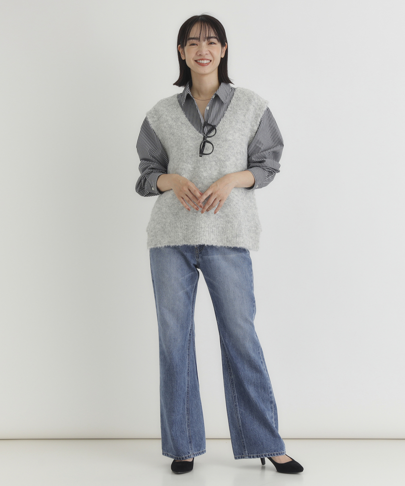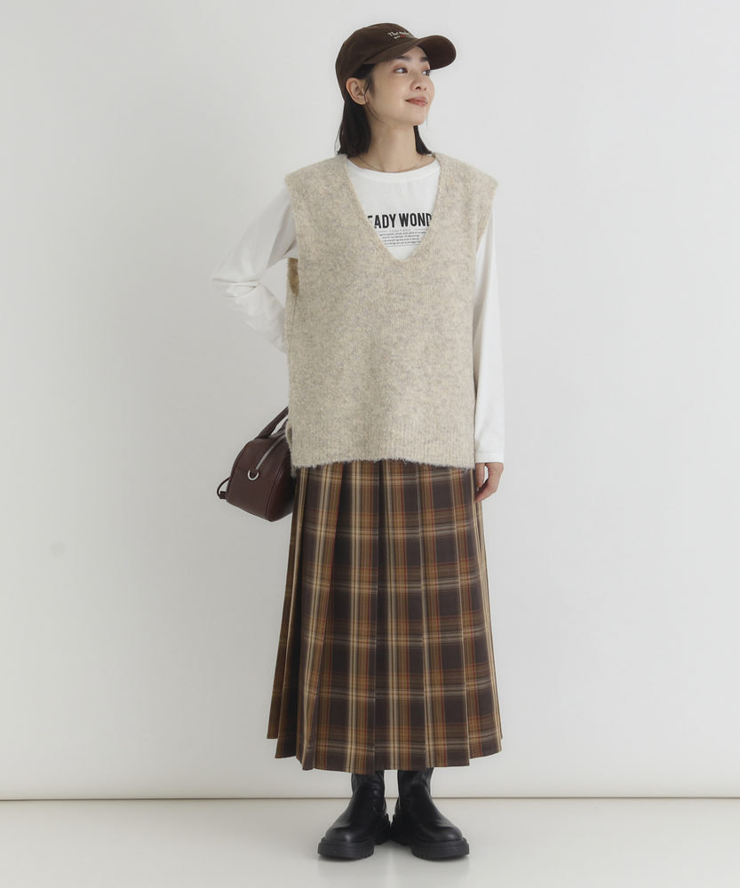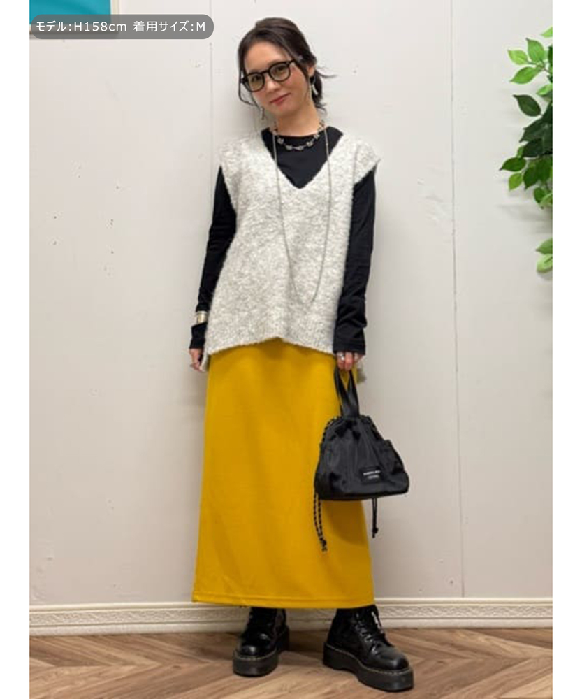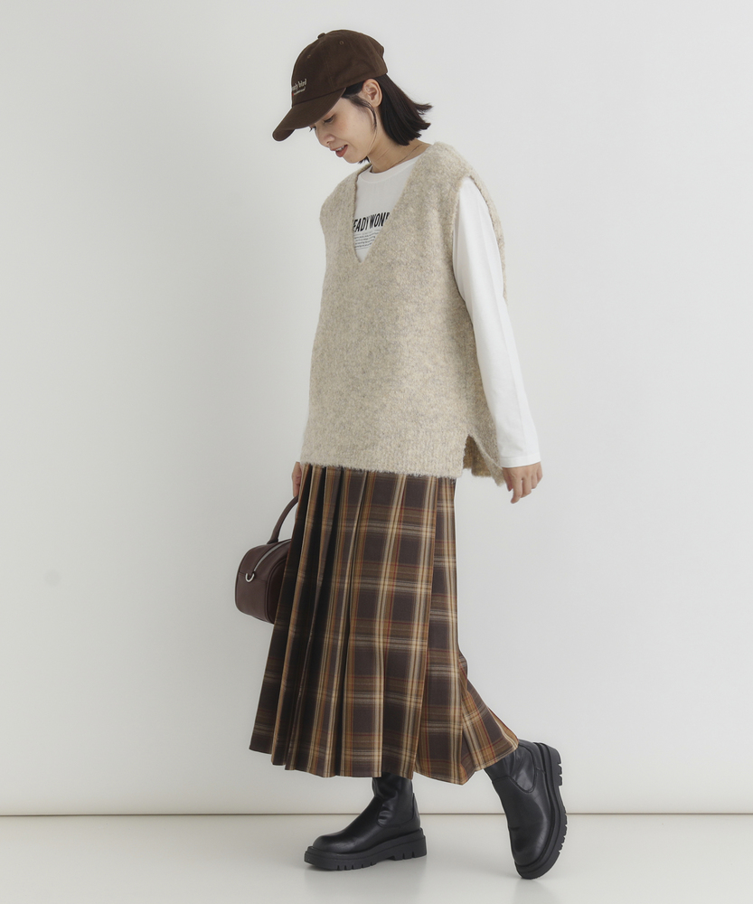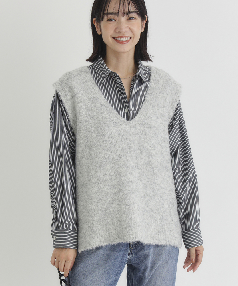 ブークレニットベストは、体型カバーができるコクーンシルエットが特徴です。