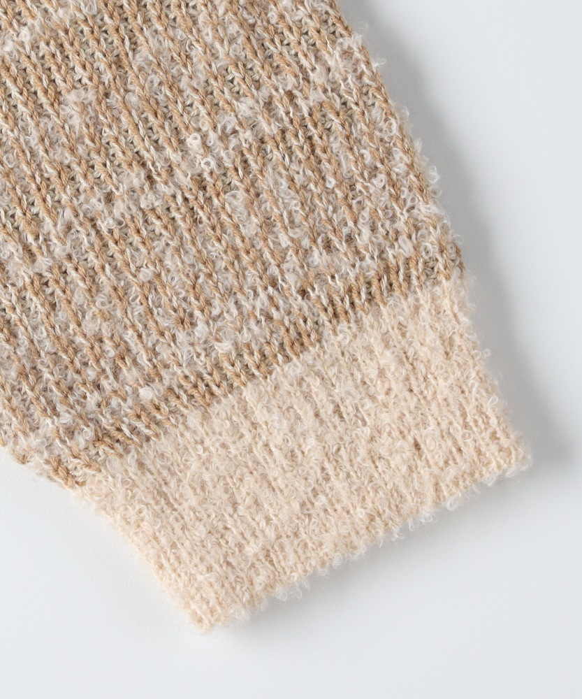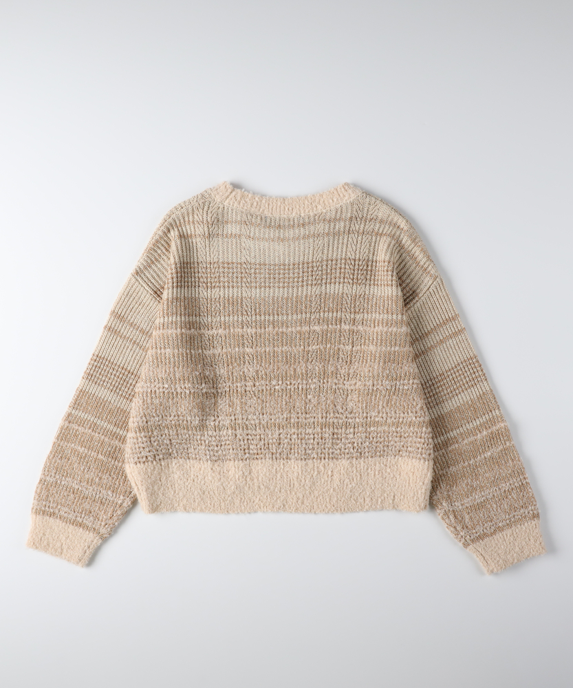 【仕様】洗練されたグラデーションと異なる編み方のミックスが特徴的なセーター。立体感のあるデザインが、視覚的に興味を引き、コーディネートのアクセントになります。ラウンドネックと落ち着いた袖のラインが、リラックスした雰囲気を演出します。【素材】柔らかな毛糸を使用したこのセーターは、暖かさだけでなく、肌触りも優しく仕上げています。洗濯機での洗濯が可能なため、日常使いにも適しており、さまざまなシーンで活躍するアイテムとなっています。裾と袖口はリブ編みデザインで、全体を引き締める効果があります。 【スタイリング】 ゆったりとしたオーバーサイズシルエットで、快適な着心地を実現。ボディラインを気にせずに着用でき、トレンド感のあるスタイルを楽しめます。シンプルなボトムスと合わせるだけでおしゃれに決まります。