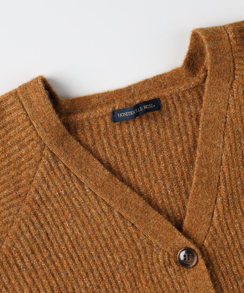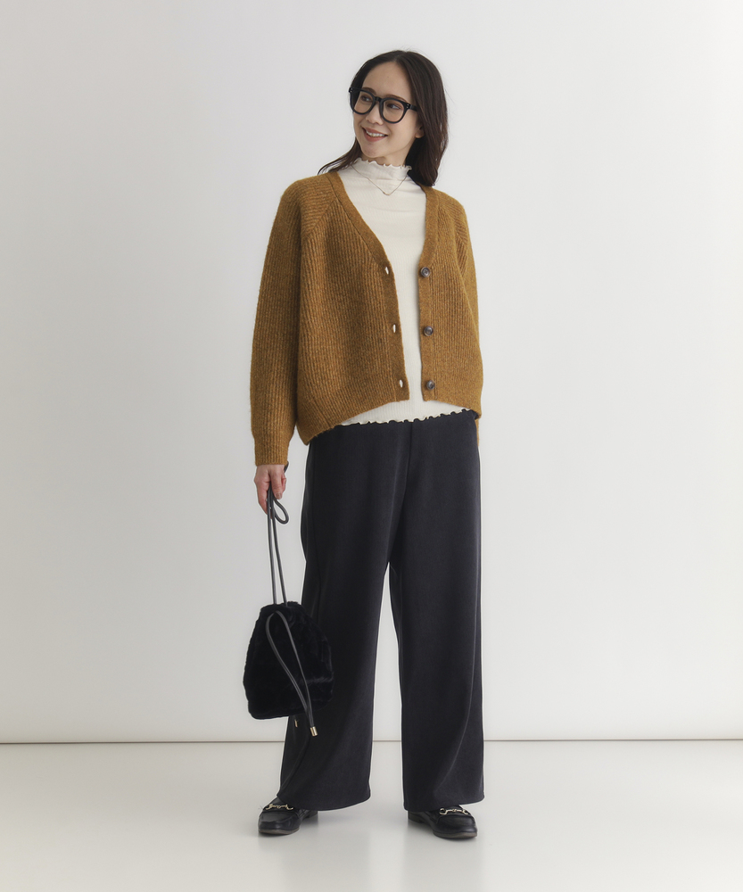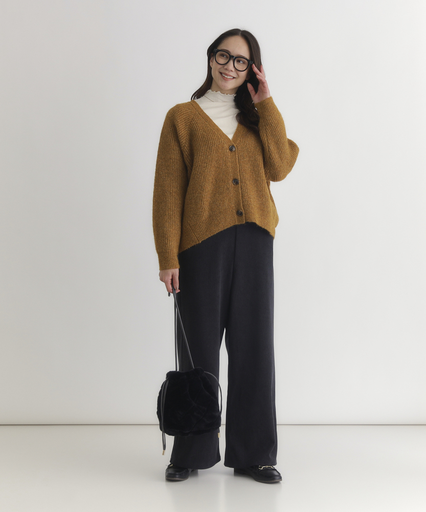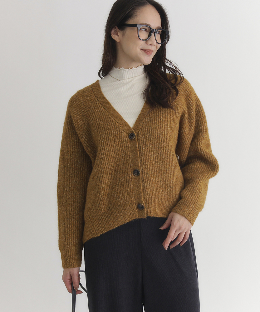【仕様】柔らかなメランジ具合が魅力的なニットカーディガン。Vネックデザインは顔周りをすっきり見せ、ボタンスタイルがカジュアルながらもエレガントな雰囲気を演出します。リラックス感のあるシルエットで、どんなスタイルにも合わせやすいアイテムです。【素材】 しっかりとしたニット素材は、厚みがありながらも軽やかで温かさをキープ。メランジカラーが奥行きを生み出し、優しい肌触りが着心地をさらに向上させています。シンプルさの中に上質感を感じることができます。 【スタイリング】 ワイドパンツと合わせたカジュアルコーデが一押し。さらに、スカートと組み合わせることで、フェミニンな印象にも仕上げられます。季節の変わり目に、重ね着アイテムとしても活用できる懐の深い一着です。