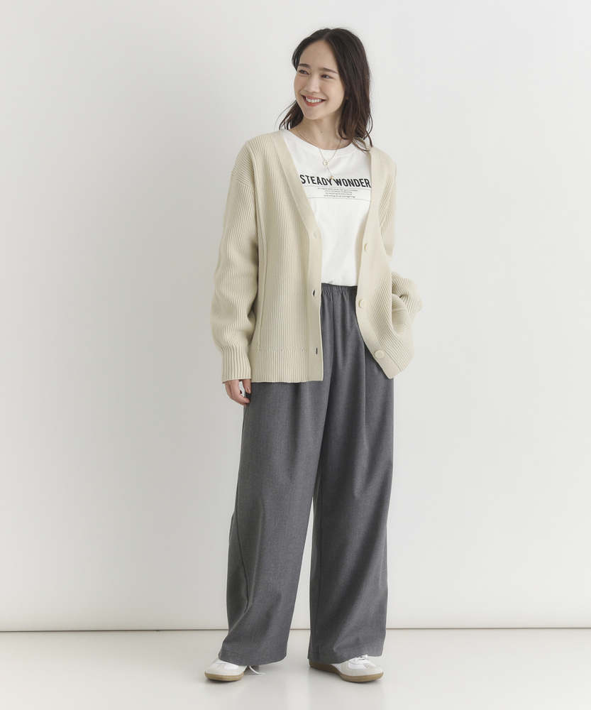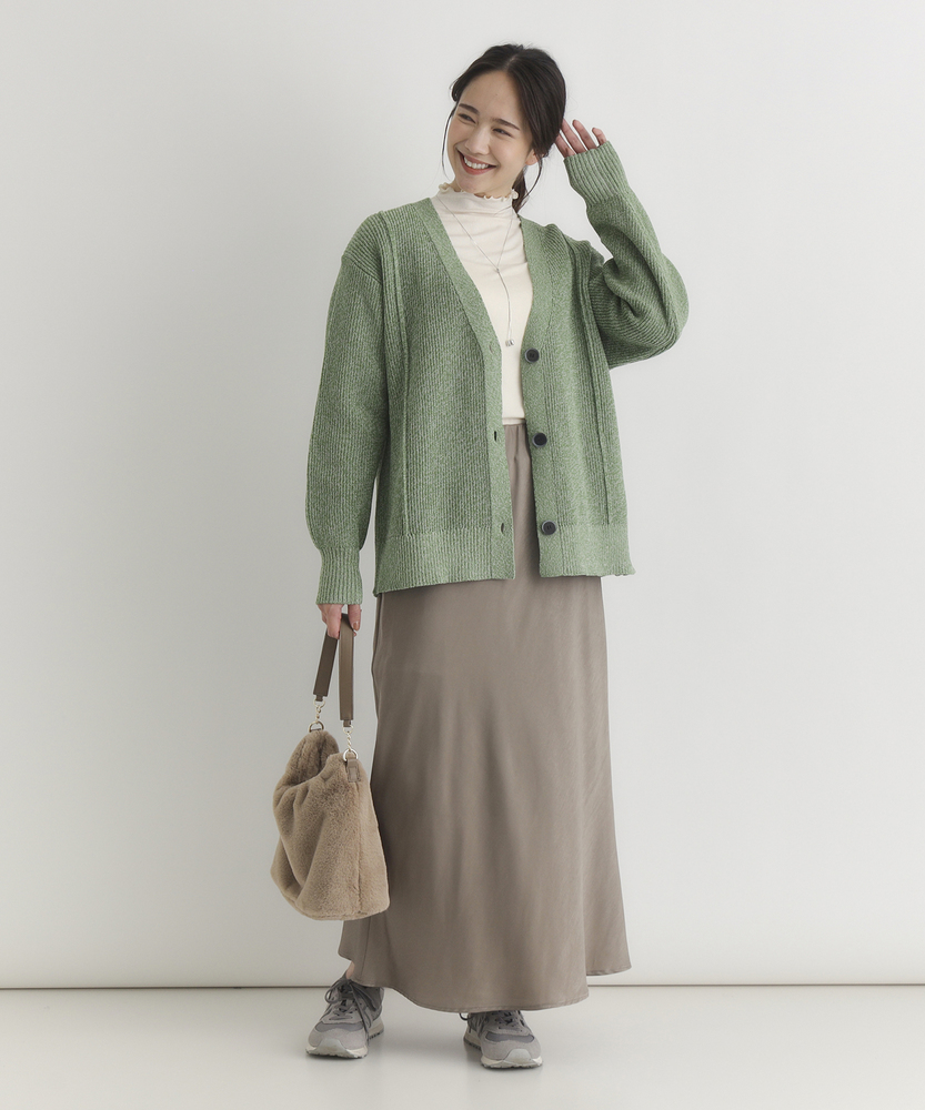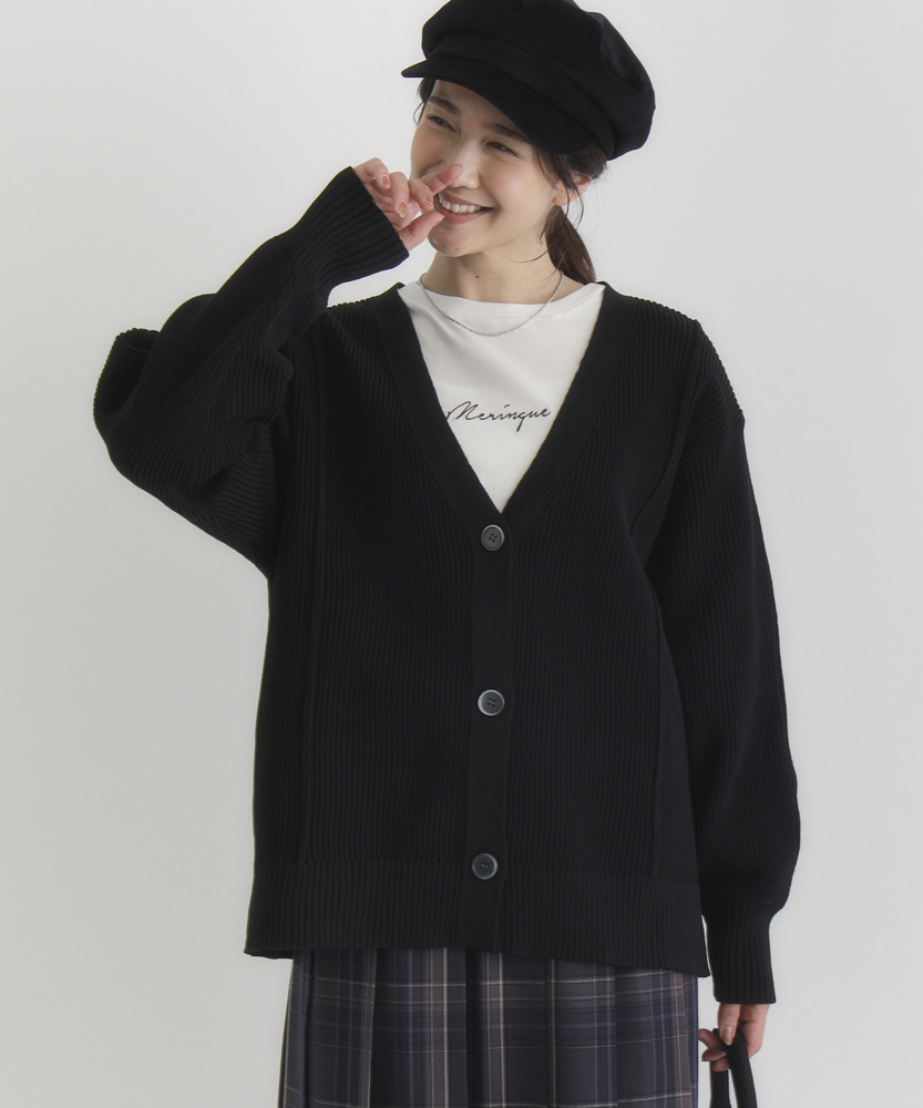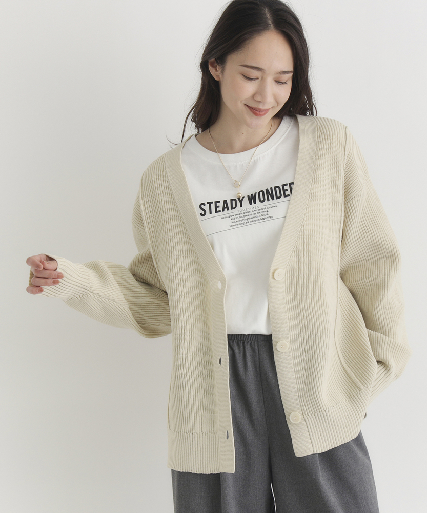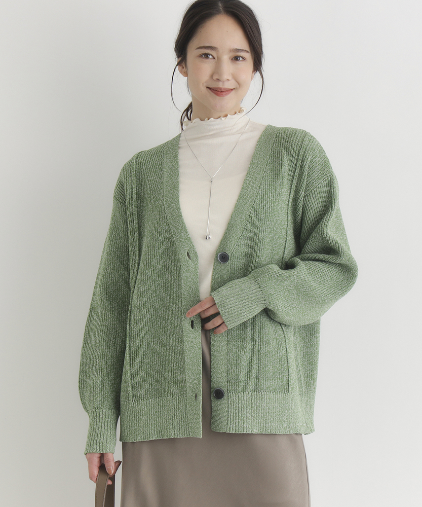 スポンジみたいな柔らかさ。立体感が出る素材で体のシルエットが拾いにくい。柔らかく、チクチクしずらいのでニットを着ない方にもお勧め。肌触りが心地よいニットシリーズ。【仕様】ナチュラルで洗練された畦編みが魅力のニットカーディガン。深めのVネックとボタンディテールが、大人の余裕を演出します。豊富なカラーバリエーションで、日常のコーディネートに自然に溶け込む一着が揃っています。【素材】 柔らかく伸縮性のあるニット素材を使用し、快適な着心地を実現。通気性があり、さらりとした肌触りが特徴で、季節の変わり目にも重宝するアイテムです。温かさと軽やかさを兼ね備えています。 【スタイリング】 Tシャツやブラウスの上にさらりと羽織ることで、リラックス感のあるスタイルに。パンツやスカートと合わせたシンプルなコーディネートでも、カラーで印象を変えられます。アクセサリーやバッグとのコーディネートで、個性を引き立てるスタイリングが楽しめます。