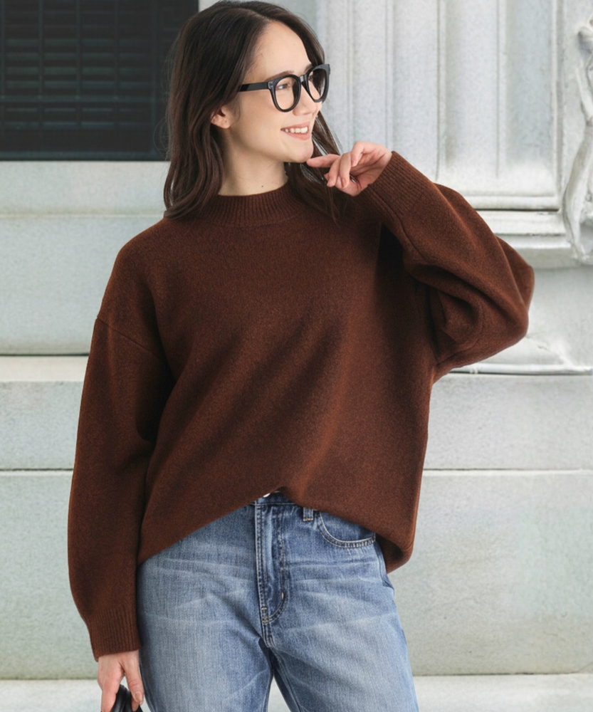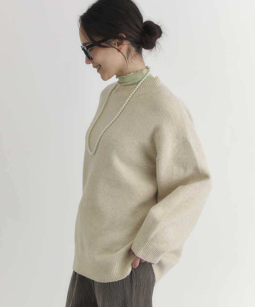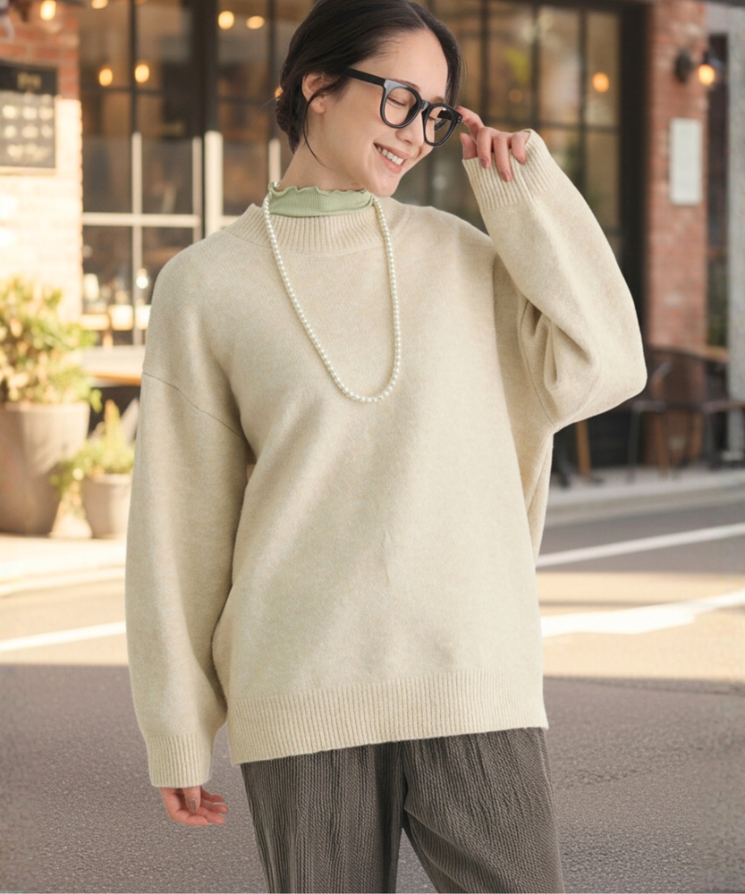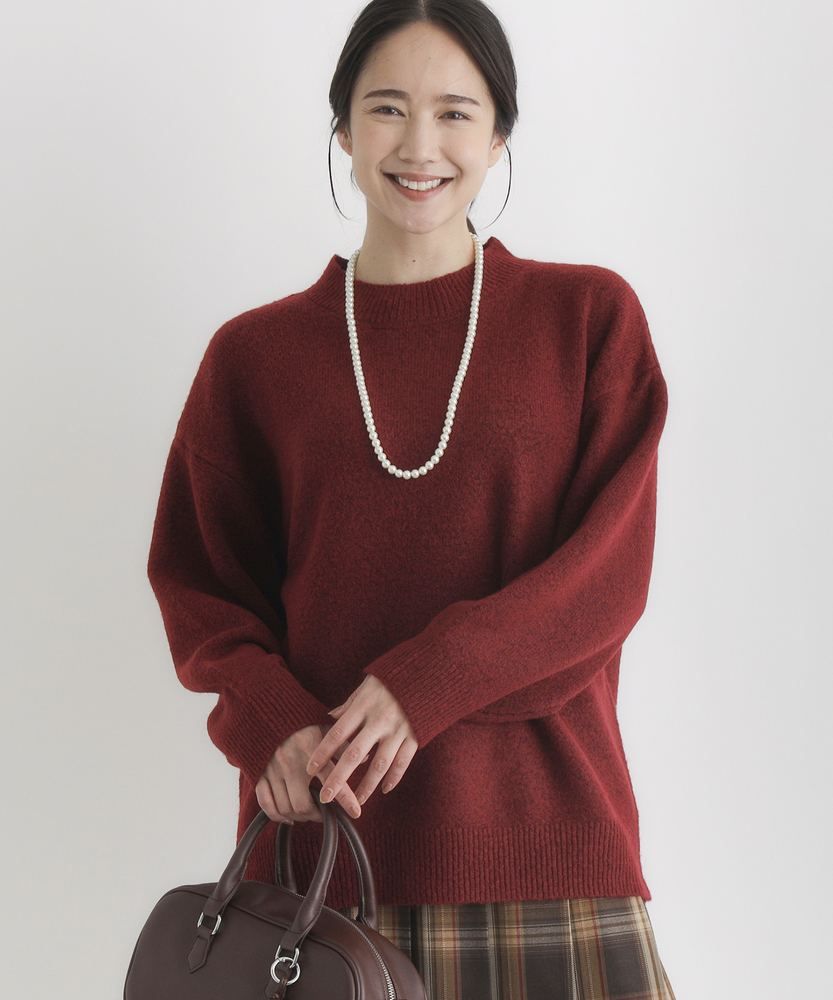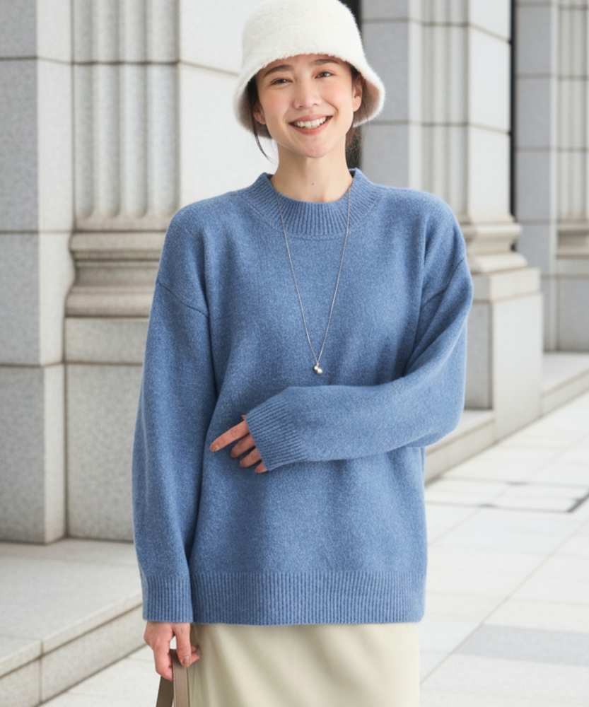 コスパ◎「イロチ買い確定!」毎日着たい「もちもち」なニット。体のラインを"拾わない"、絶妙ゆったりシルエット。お尻も隠れて体型カバーも叶える。■Point・体のラインを"拾わない"、絶妙ゆったりシルエット。忙しい朝も、インナーの上からバサッと着るだけでOK。楽ちんなのに「手抜き感ゼロ」が叶います。・気になる腰・お尻を"こっそり"カバー出来る絶妙な着丈。安心感のある着丈で、細身のパンツやタイトスカートとの相性も抜群。・もう迷わない。ベーシックな万能デザイン。どんなボトムにも合う汎用性。・「タートルネックは苦手…」な人にオススメな上品見えするモックネック。首が詰まりすぎず、苦しくない"ちょうどいい"襟元。アクセサリーも映え、一枚で上品な印象に仕上がります。・ヤミツキになる「もちもち」っとした感触。伸縮性もあり、快適な着心地。・きっと見つかる、豊富なカラー展開。コーデの主役になるトレンドカラーも、着回し抜群のベーシックカラーも。思わず「イロチ買い」したくなるラインナップです。【仕様】ボリューム感があり、リラックスしたシルエットが特徴的なクルーセーター。ゆとりのあるデザインが、着こなしにさりげないこなれ感をプラスします。定番のモックネックは、シンプルながらもスタイリッシュさを兼ね備えています。【素材】 肌触りの良い素材を使用し、軽やかな着心地を実現。秋冬のコーディネートにもぴったりなウォーム感がありながら、しなやかさも併せ持っています。柔らかさがあることで、インナーとしても活躍するアイテムです。 【スタイリング】 シンプルなパンツと合わせることで、カジュアルにもフォーマルにもスタイルアップ可能。アクセサリーで個性を加えることで、より自分らしいコーディネートを楽しめます。シンプルでありながら、センスの良さが際立つ一着です。※こちらの商品はオンラインショップ、一部店舗での限定展開となります。また店頭での発売日と前後する可能性がございます。予めご了承下さい。