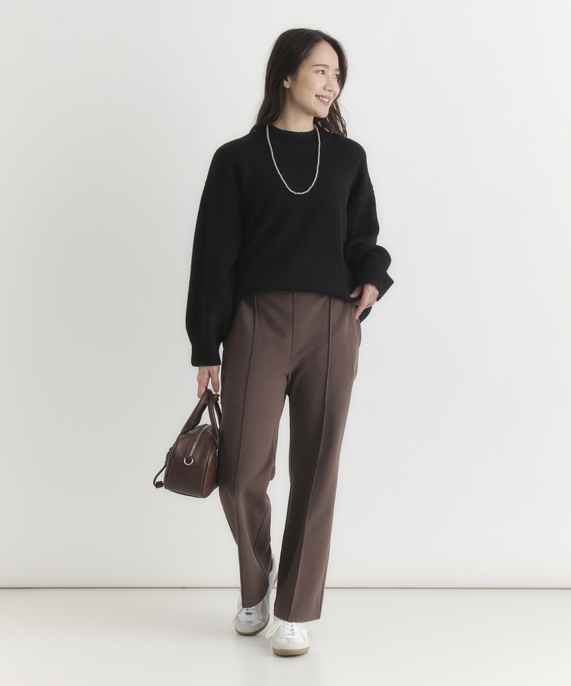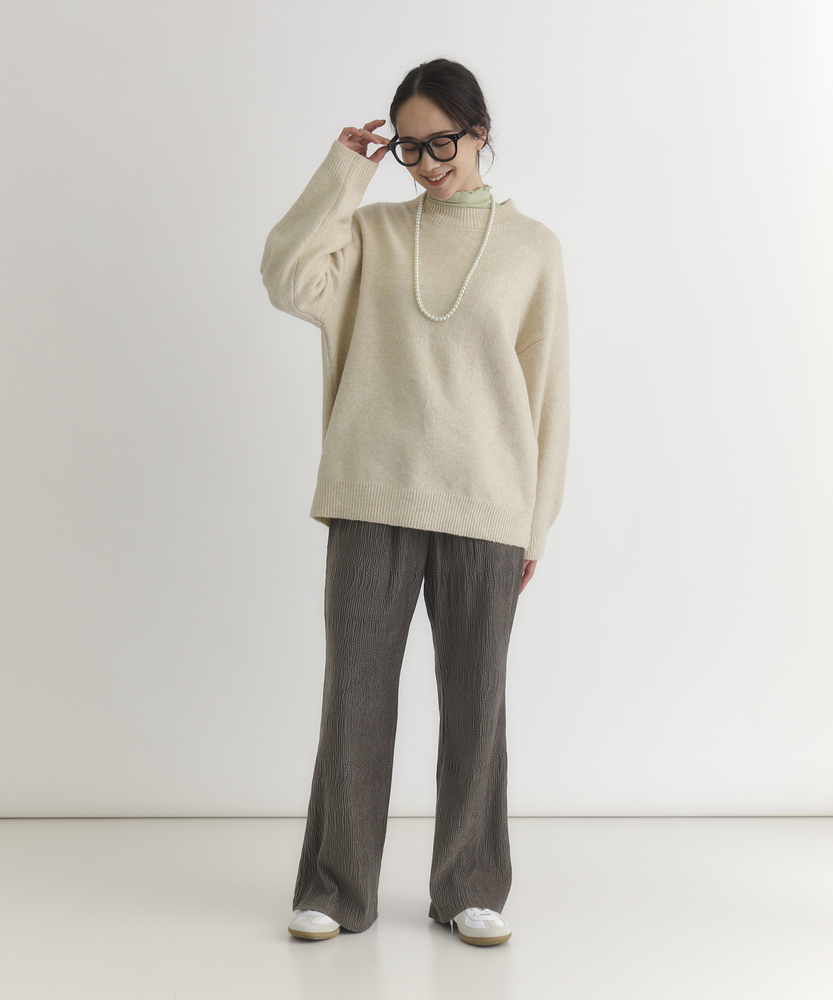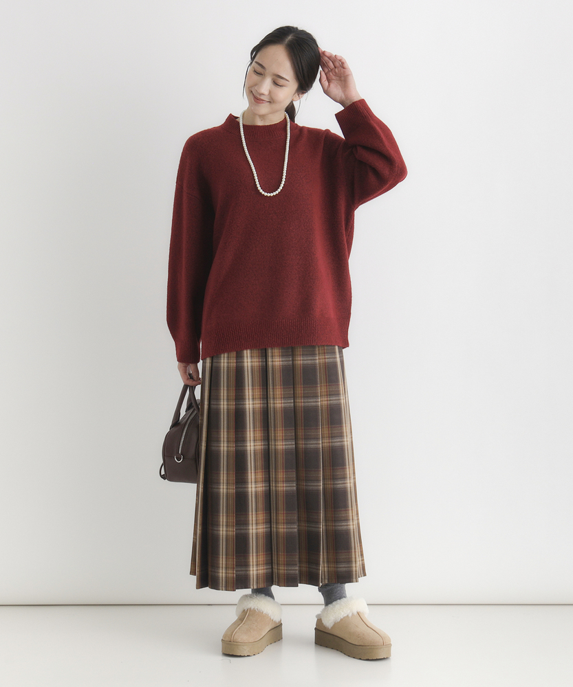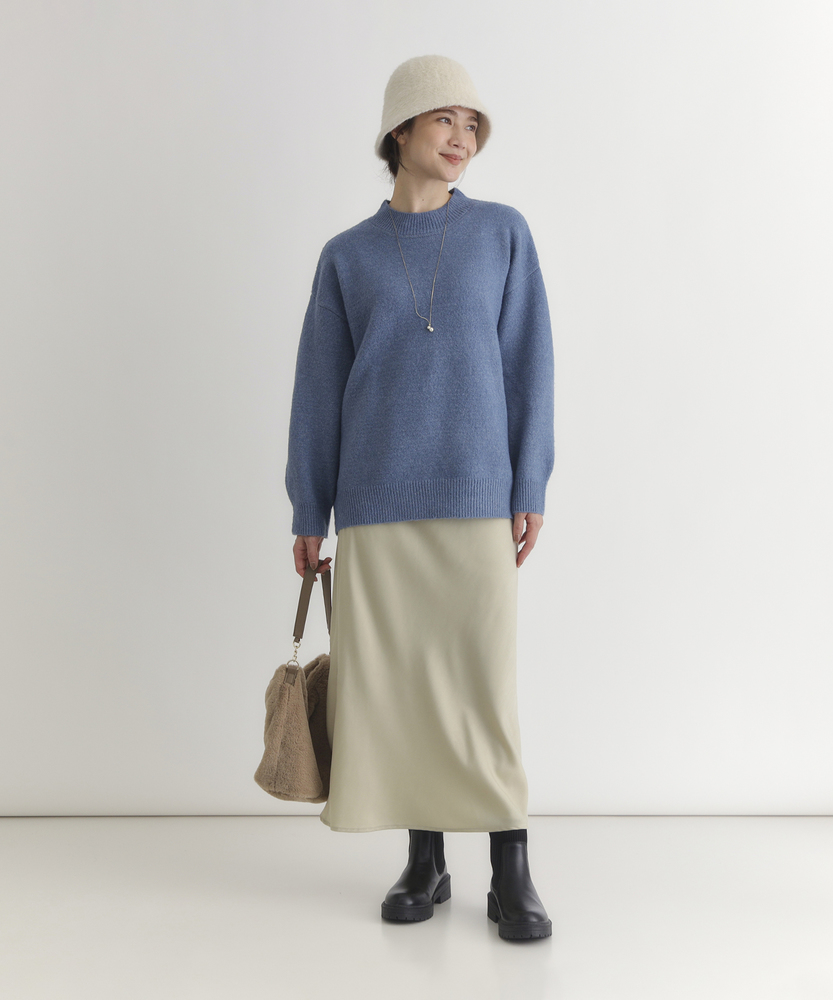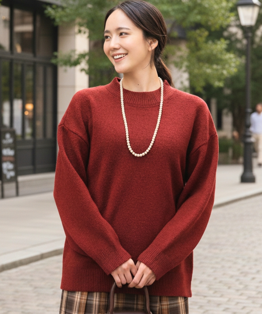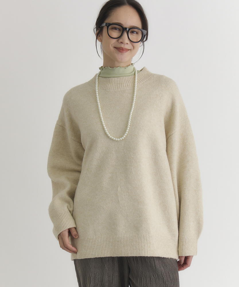 コスパ◎「イロチ買い確定!」毎日着たい「もちもち」なニット。体のラインを"拾わない"、絶妙ゆったりシルエット。お尻も隠れて体型カバーも叶える。■Point・体のラインを"拾わない"、絶妙ゆったりシルエット。忙しい朝も、インナーの上からバサッと着るだけでOK。楽ちんなのに「手抜き感ゼロ」が叶います。・気になる腰・お尻を"こっそり"カバー出来る絶妙な着丈。安心感のある着丈で、細身のパンツやタイトスカートとの相性も抜群。・もう迷わない。ベーシックな万能デザイン。どんなボトムにも合う汎用性。・「タートルネックは苦手…」な人にオススメな上品見えするモックネック。首が詰まりすぎず、苦しくない"ちょうどいい"襟元。アクセサリーも映え、一枚で上品な印象に仕上がります。・ヤミツキになる「もちもち」っとした感触。伸縮性もあり、快適な着心地。・きっと見つかる、豊富なカラー展開。コーデの主役になるトレンドカラーも、着回し抜群のベーシックカラーも。思わず「イロチ買い」したくなるラインナップです。【仕様】ボリューム感があり、リラックスしたシルエットが特徴的なクルーセーター。ゆとりのあるデザインが、着こなしにさりげないこなれ感をプラスします。定番のモックネックは、シンプルながらもスタイリッシュさを兼ね備えています。【素材】 肌触りの良い素材を使用し、軽やかな着心地を実現。秋冬のコーディネートにもぴったりなウォーム感がありながら、しなやかさも併せ持っています。柔らかさがあることで、インナーとしても活躍するアイテムです。 【スタイリング】 シンプルなパンツと合わせることで、カジュアルにもフォーマルにもスタイルアップ可能。アクセサリーで個性を加えることで、より自分らしいコーディネートを楽しめます。シンプルでありながら、センスの良さが際立つ一着です。※こちらの商品はオンラインショップ、一部店舗での限定展開となります。また店頭での発売日と前後する可能性がございます。予めご了承下さい。