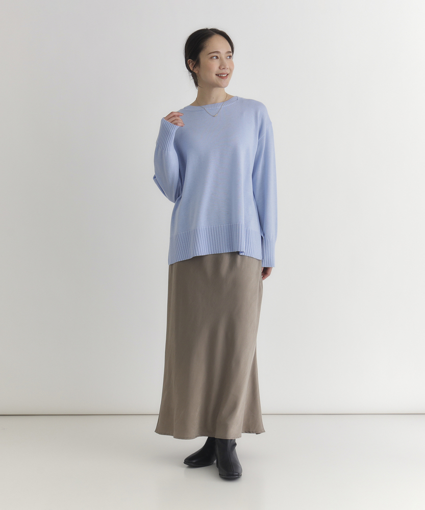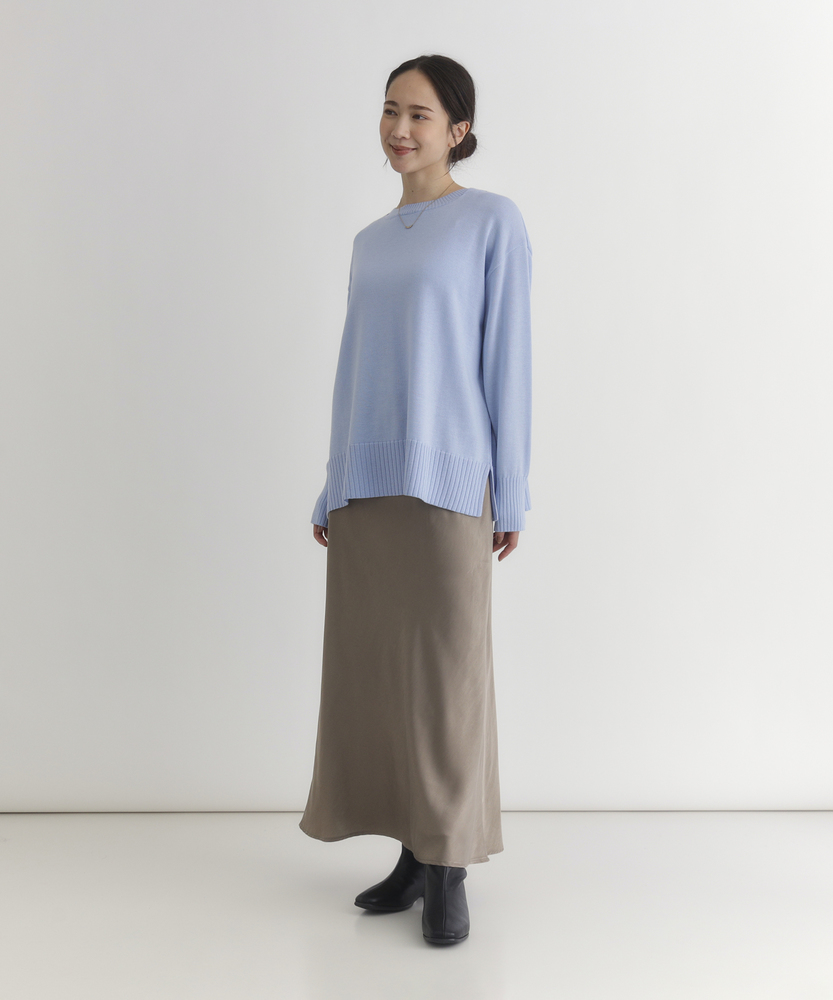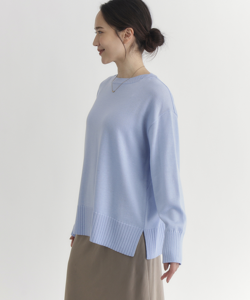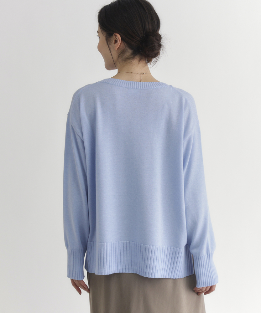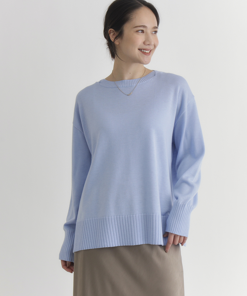 【仕様】シンプルで使いやすいボートネックのセーター。レギュラーフィットで、体型を選ばず、シーンを問わない優れた着回し力が魅力。シンプルながらも洗練されたデザインが、日常のスタイルを格上げします。【素材】 ポリエステルを主体とした柔らかなニット素材は、程よいハリ感と柔らかさを兼ね備えています。通気性も良く、お手入れも簡単なので、毎日安心して着用できるアイテム。肌触りの良さは、一度着ればやみつきに。 【スタイリング】 コートやジャケットのインナーとしても最適で、大人のカジュアルスタイルを演出。幅広いスタイルにマッチし、シンプルながらも存在感を放つ一着です。