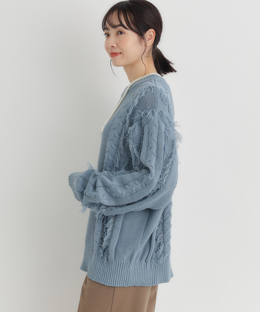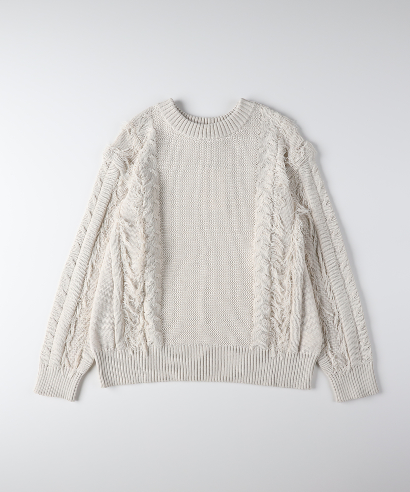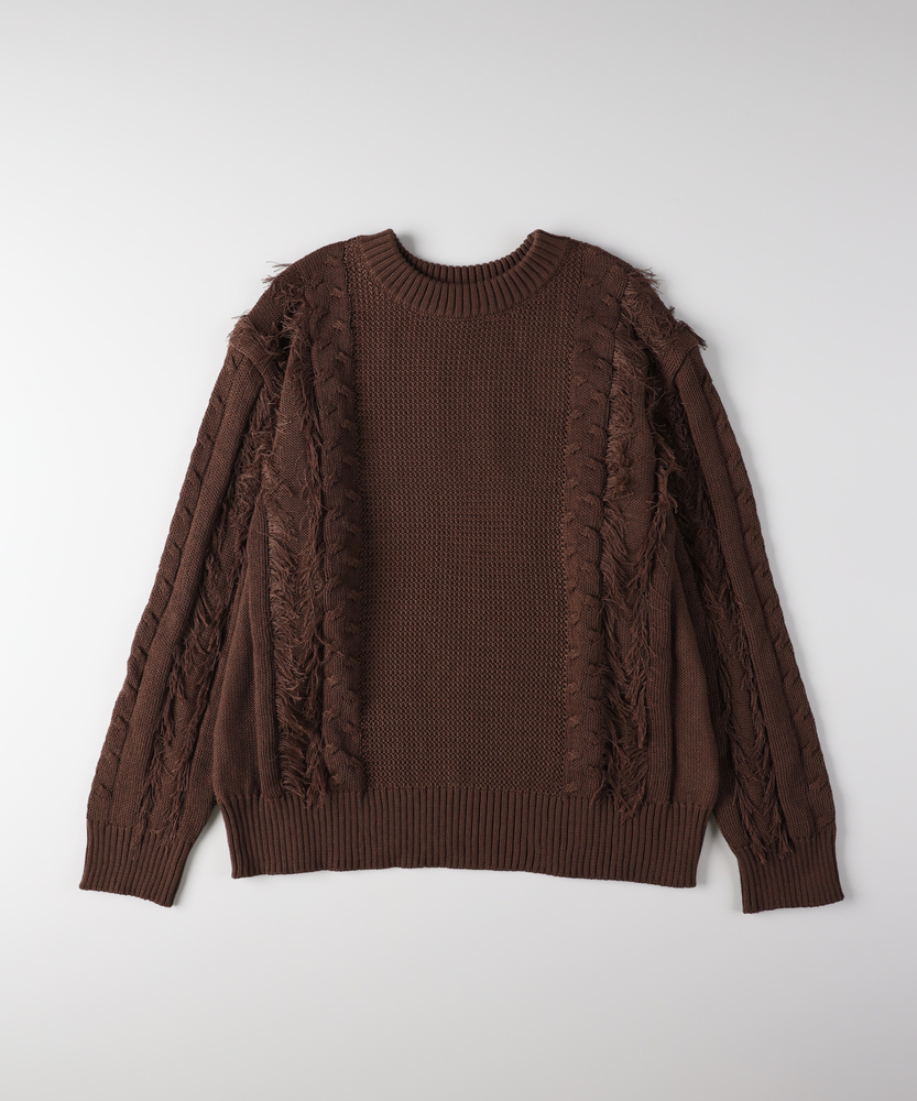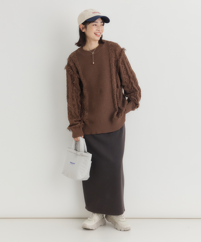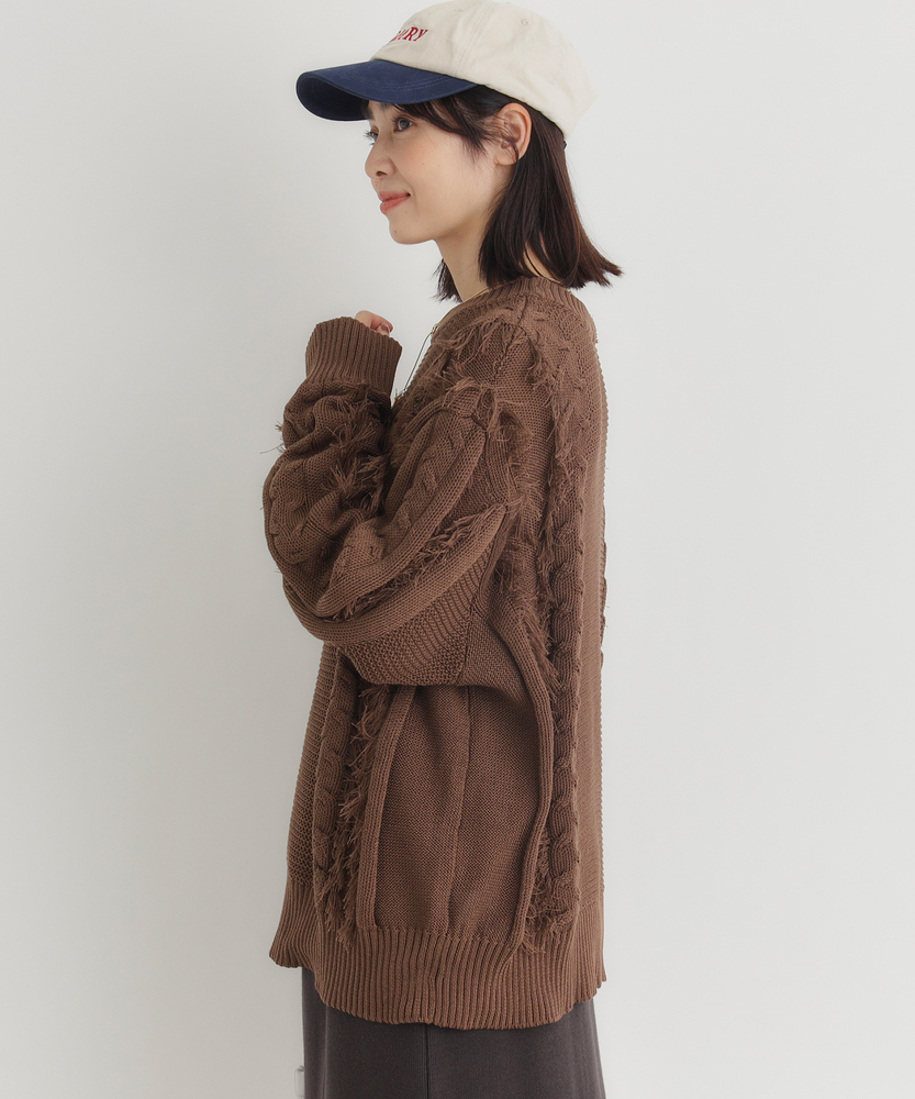 【仕様】ケーブルフリンジセーターは、洗練されたケーブル編みが特徴的で、トレンド感溢れる一着。フリンジのディテールが印象的で、動きのあるスタイルを演出します。ゆったりとしたシルエットが女性らしさを引き立て、カジュアルからフォーマルまで幅広くコーディネート可能です。【素材】 柔らかく、暖かいニット素材を使用しており、肌触りが良く快適な着心地を提供します。軽やかな風合いは、動くたびに自然なドレープを生み出し、シーズンを通して愛用できる優れたアイテムです。 【スタイリング】 デニムやスカートと合わせることで、カジュアルでありながらもエレガントさを感じさせるスタイリングが楽しめます。また、トレンチコートやダウンジャケットを羽織れば、寒い季節でもおしゃれに決まります。ブーツやスニーカーで遊び心をプラスするのもおすすめです。