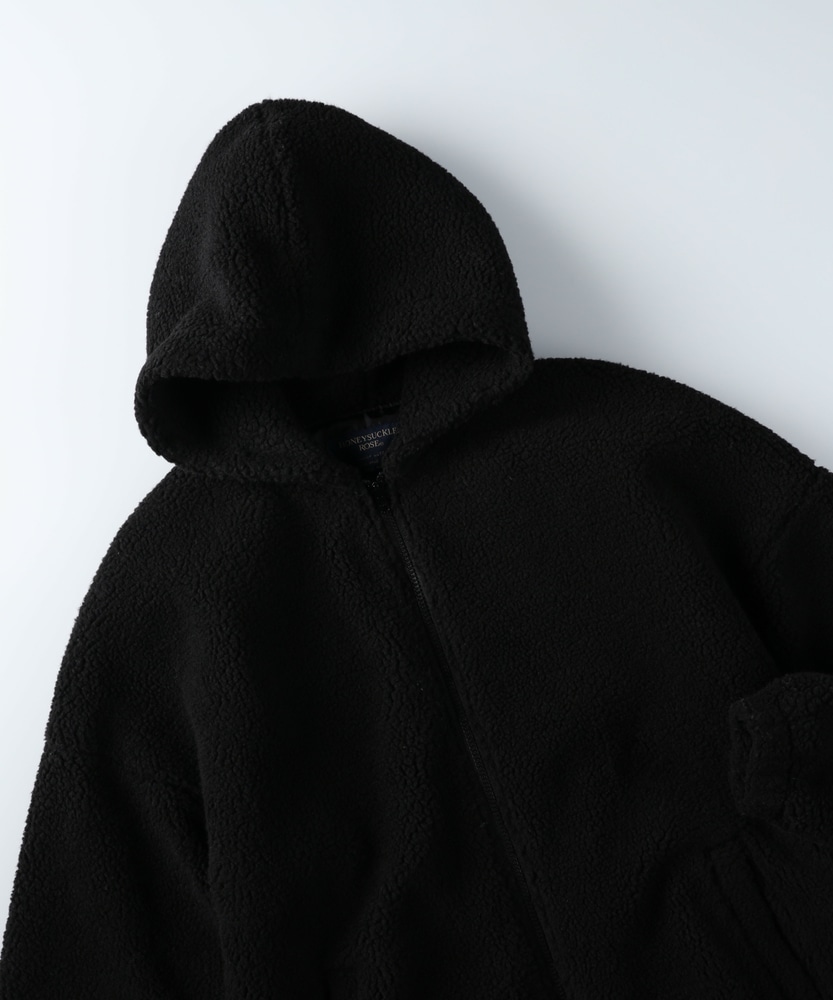 ゆったりと着やすいビッグシルエットです。パーカー感覚で羽織れるボアフーディー。袖のボリュームが女性らしい印象に◎
