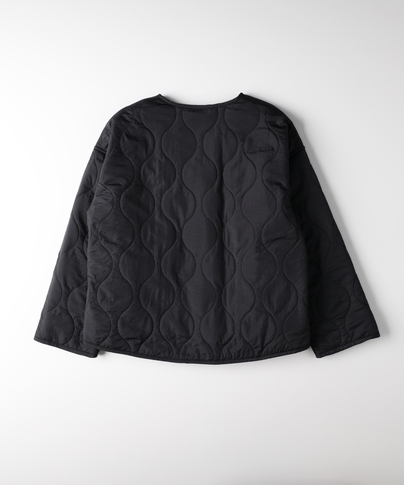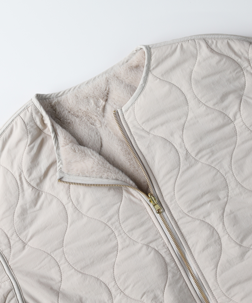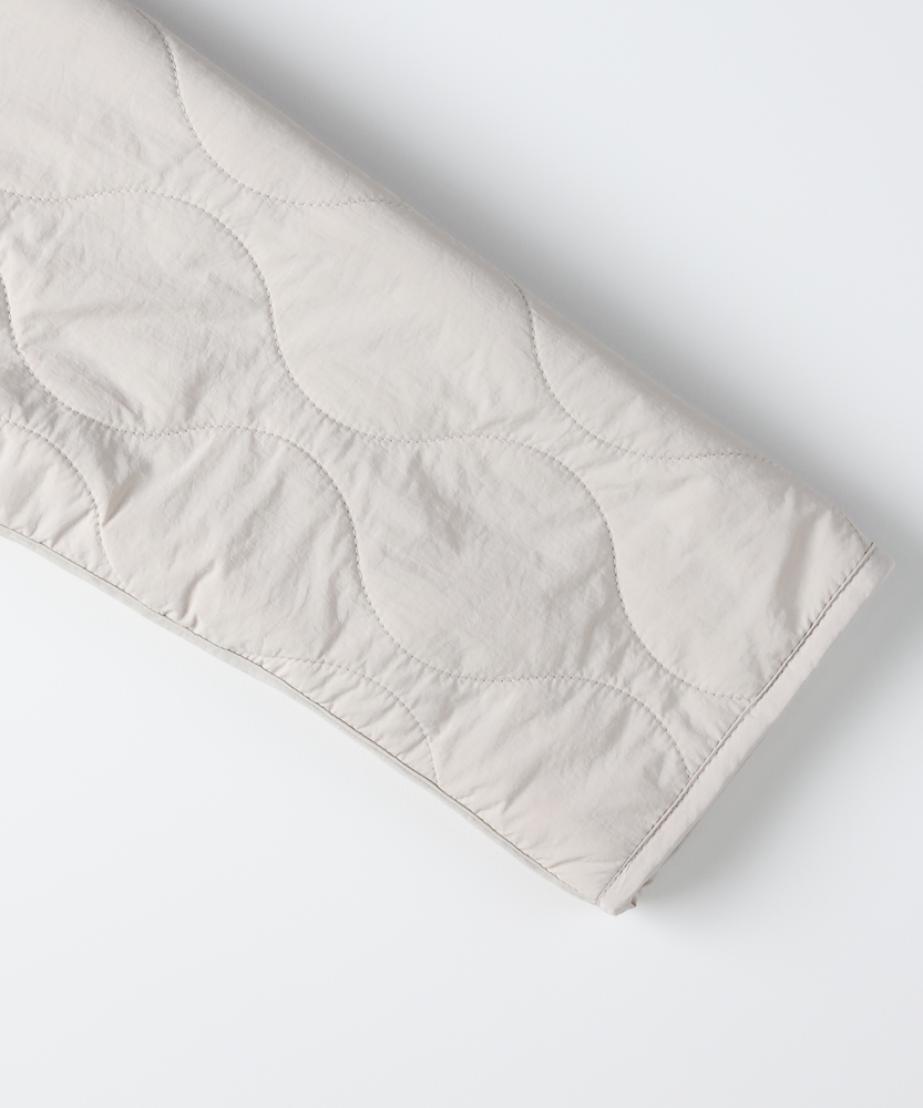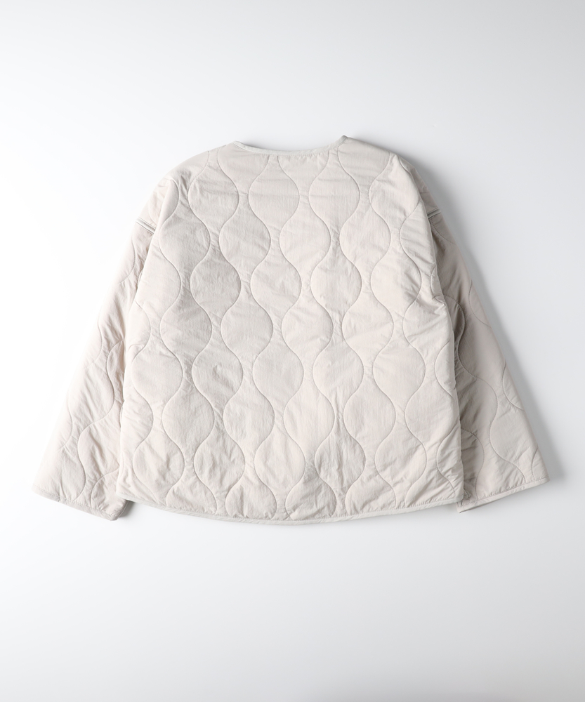 【仕様】リバーシブル仕様のキルトジャケットは、表裏で異なる表情を楽しめる一着。シンプルながらも独特のキルトデザインがスタイリッシュさを演出し、様々なコーディネートにマッチします。ゆったりとしたシルエットが女性らしさを引き立て、どんな場面でも快適に着こなせます。【素材】 柔らかい質感を持つ素材を使用し、軽やかさと保温性を兼ね備えています。キルト仕立てにより、温かみのあるデザインが体を包み込み、寒い季節にぴったり。リバーシブルで使えるため、一枚で多様なスタイルを楽しめるのが魅力です。 【スタイリング】 シンプルなタートルネックやニットと合わせることで、カジュアルでありながら洗練された印象に。ボトムスはスリムなパンツを選べば、バランスの取れたスタイルが完成。カジュアルなブーツやスニーカーとの相性も抜群です。