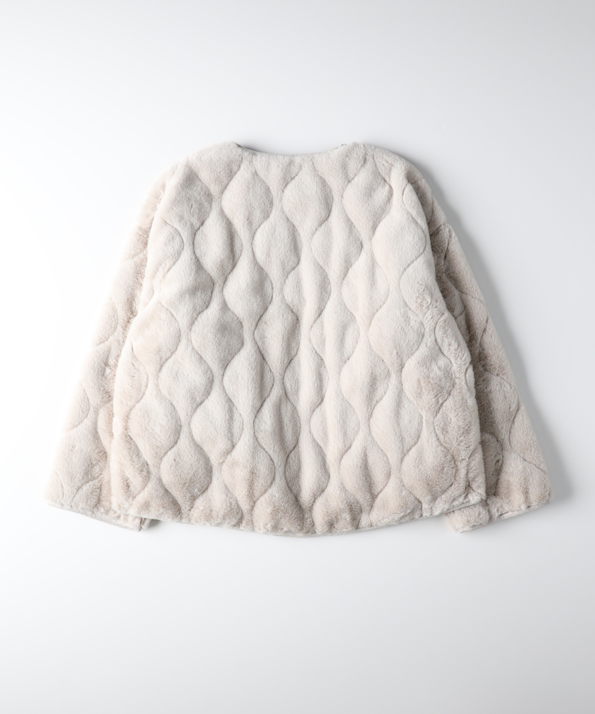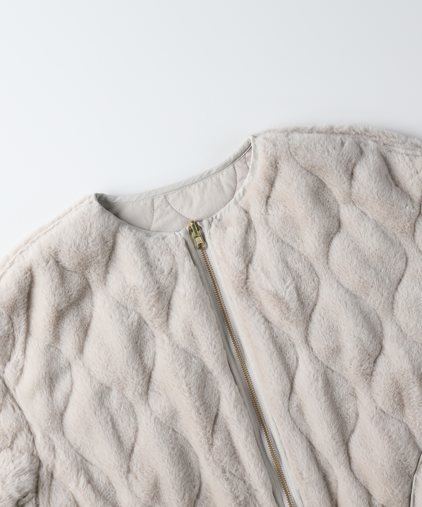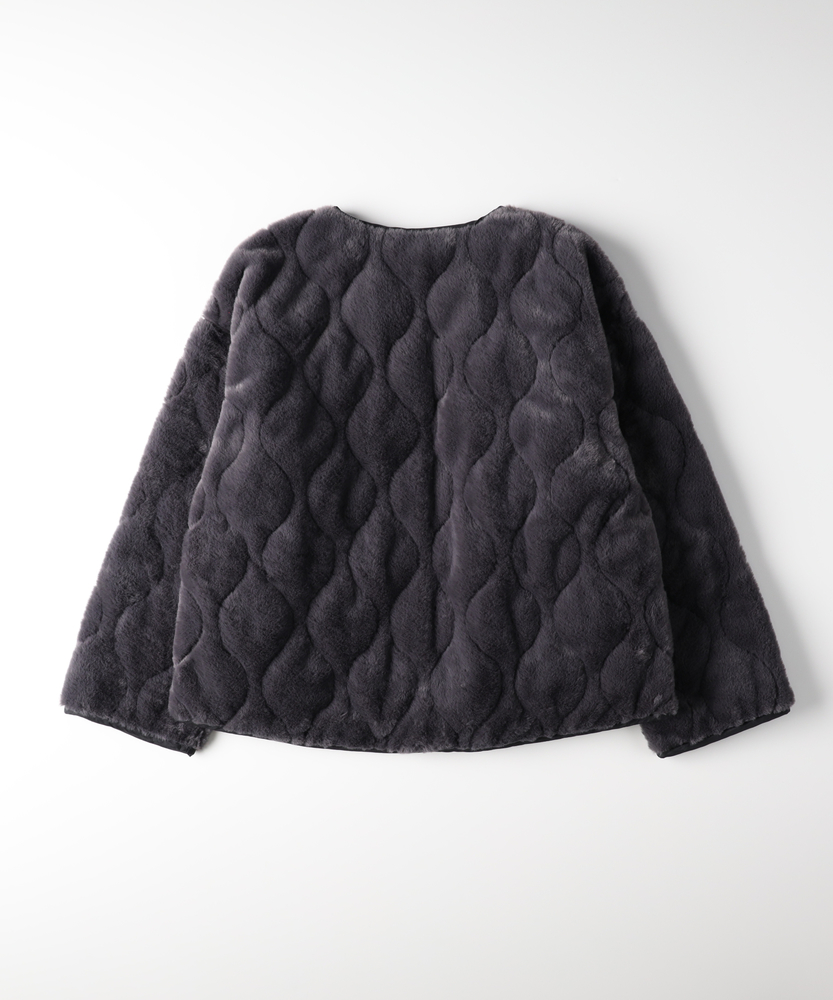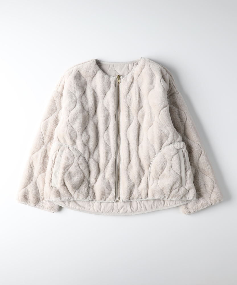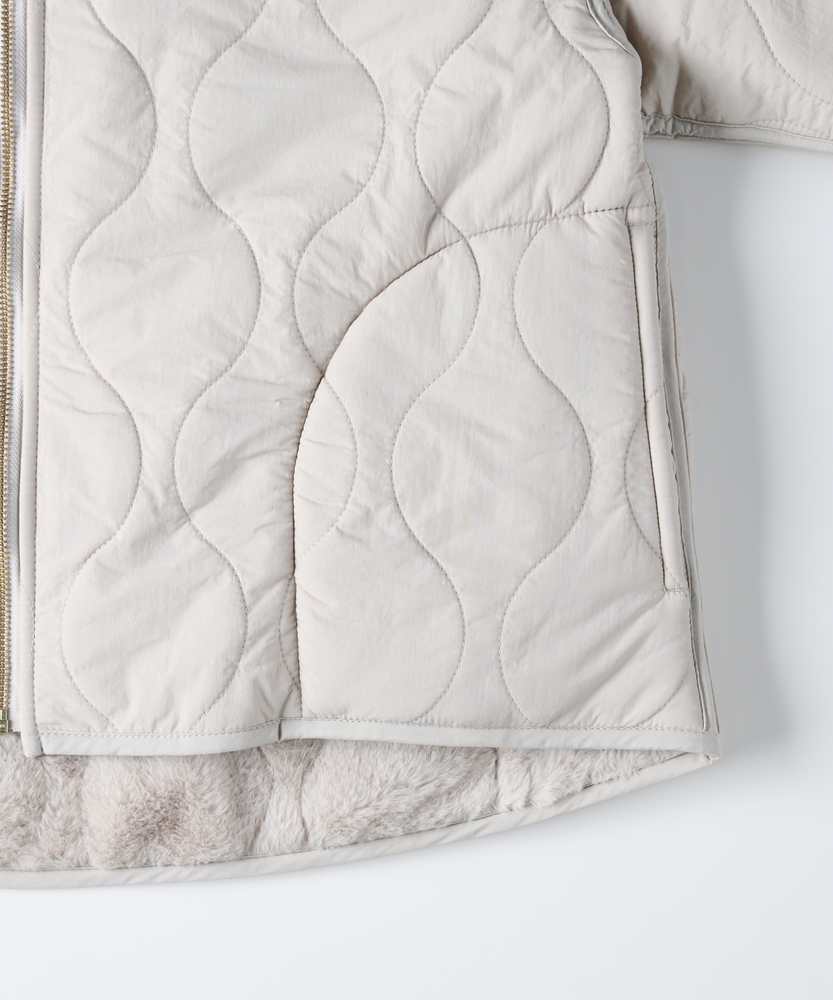 【仕様】リバーシブル仕様のキルトジャケットは、表裏で異なる表情を楽しめる一着。シンプルながらも独特のキルトデザインがスタイリッシュさを演出し、様々なコーディネートにマッチします。ゆったりとしたシルエットが女性らしさを引き立て、どんな場面でも快適に着こなせます。【素材】 柔らかい質感を持つ素材を使用し、軽やかさと保温性を兼ね備えています。キルト仕立てにより、温かみのあるデザインが体を包み込み、寒い季節にぴったり。リバーシブルで使えるため、一枚で多様なスタイルを楽しめるのが魅力です。 【スタイリング】 シンプルなタートルネックやニットと合わせることで、カジュアルでありながら洗練された印象に。ボトムスはスリムなパンツを選べば、バランスの取れたスタイルが完成。カジュアルなブーツやスニーカーとの相性も抜群です。