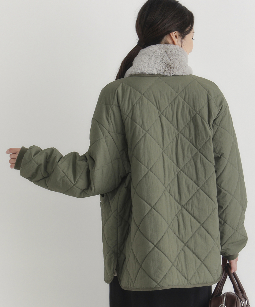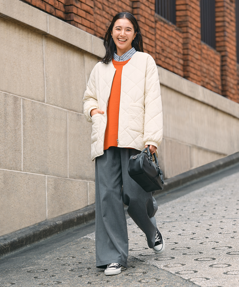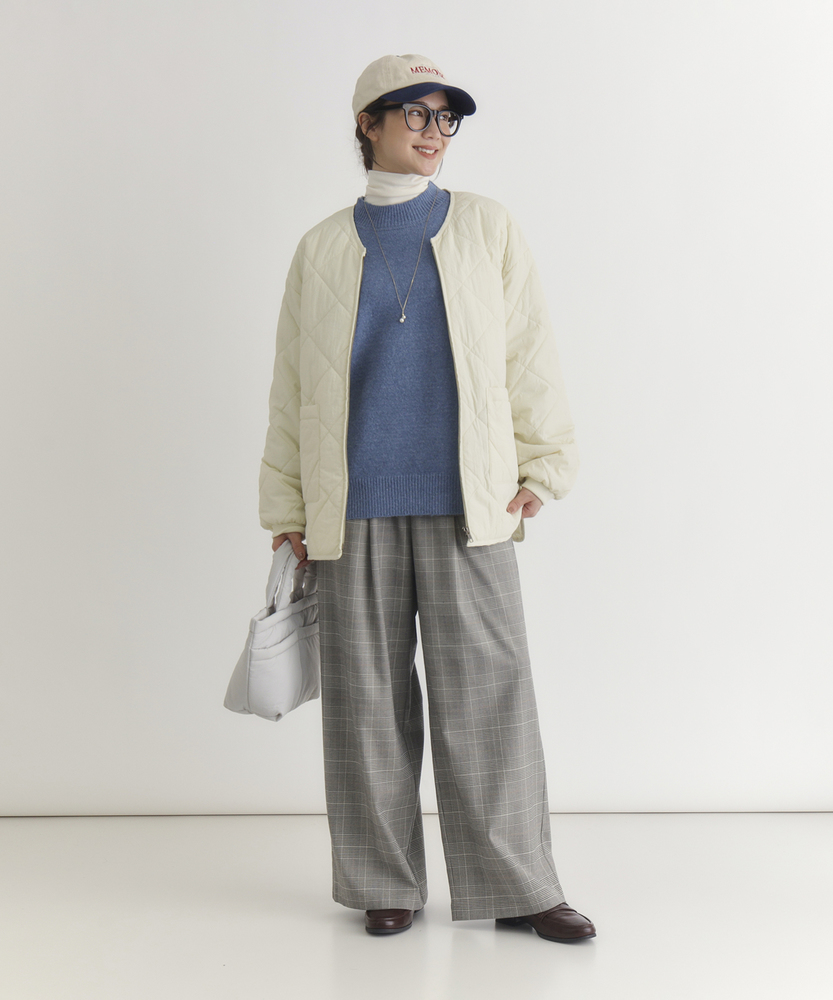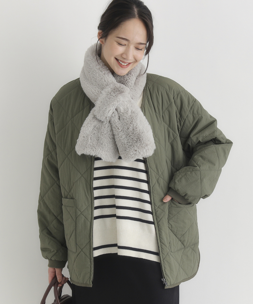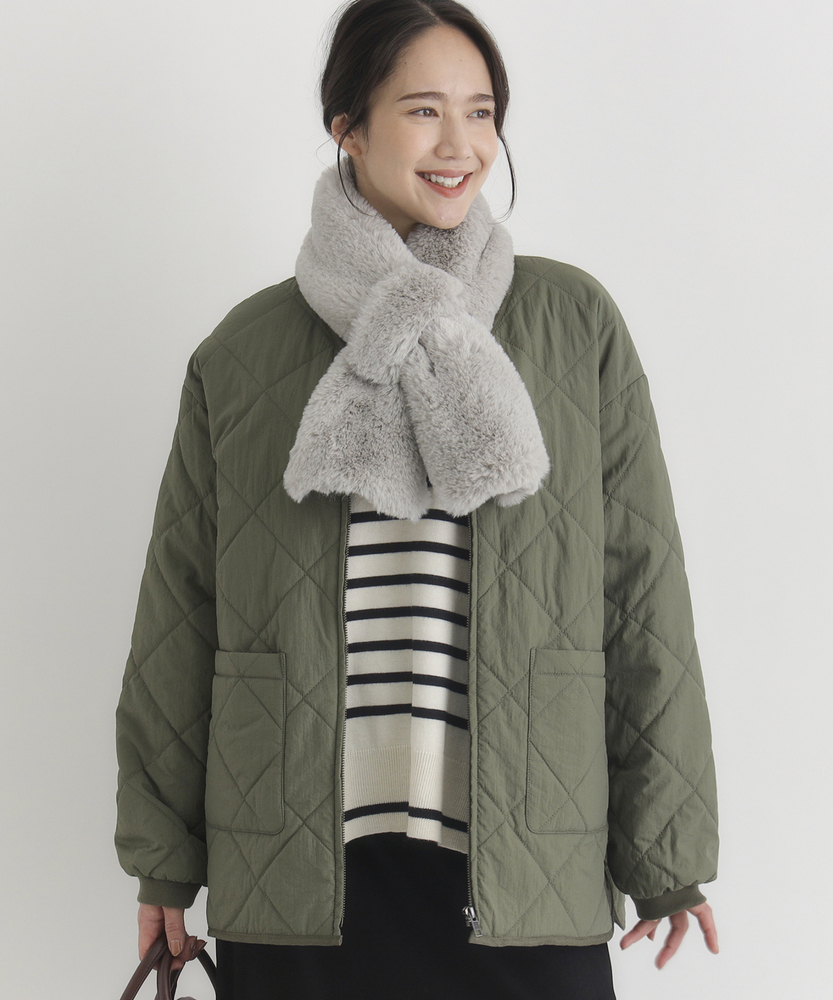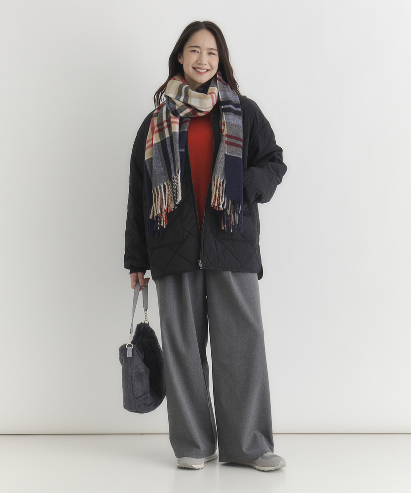 お尻にかかるくらいの着丈で気になる部分もカバー。とにかく軽量で快適な着心地。薄中綿素材で長いシーズン使える便利なアウター。【仕様】ベーシックな中綿入りキルティングジャケットは、シンプルかつコーディネートしやすいデザインが特徴。ややゆったりしたシルエットが動きやすさを提供し、フロントの大きめなポケットがアクセントに。どんなスタイルにも合わせやすく、デイリー使いに最適です。【素材】 100%ポリエステル製のため、軽量でありながら保温性にも優れています。肌触りがよく、ストレスなく着用できるため、春先や秋のはおりにもぴったり。普段使いからお出かけまで、幅広いシーンで活躍するアイテムです。 【スタイリング】 カジュアルなTシャツやタートルネックと合わせて、リラックスしたスタイルを楽しむのがオススメ。スキニーパンツやワイドパンツとの相性も良く、レイヤードスタイルでも活躍。スニーカーやブーツで足元をまとめると、クリーン感が引き立って、スタイリッシュな印象になります。