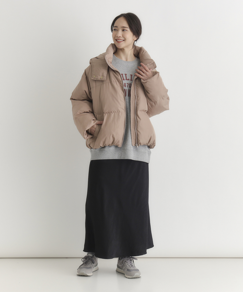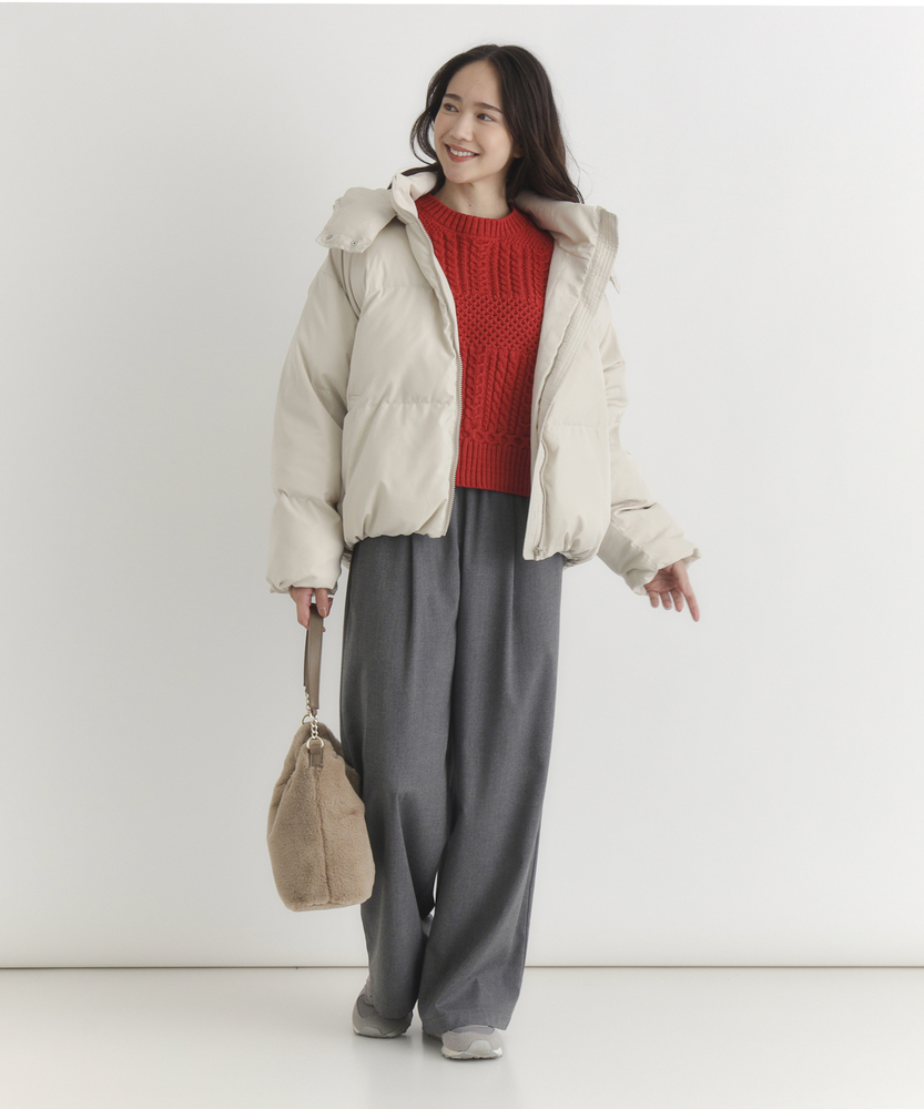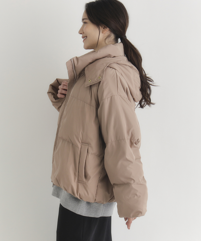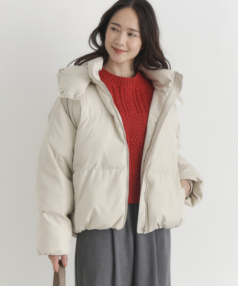「着ぶくれしない」&「軽くて暖かい」アウター。トレンドのショート丈で脚長効果!首元まで隠れて暖かい。2WAY仕様でお得な気分。この秋冬のアウターはこれで決まり!のマストBUYアイテム。■Point・年齢に関係なく使いやすい程よくゆったりめのシルエット。トレンドのクロップドの丈で脚長効果。・どこか品良く仕上がるいいトコ取りなアイテム。・オーソドックスなデザインはどんなコーデにも使える【仕様】スッキリとしたシルエットに拘った中綿ショートジャケットです。フードは取り外しが可能で、シーンに応じた着こなしが可能です。トレンドを押さえたスモーキーカラーが、コーディネートを引き立て、秋冬の装いにぴったりです。【素材】 中綿仕様のポリエステル素材は、軽量でありながら保温性に優れ、日常使いに適した一着です。風を通さず、心地よい暖かさを提供。しなやかな質感が、着るたびに心地よいフィット感を実現し、手軽に羽織れて日常を快適に過ごせます。 【スタイリング】 カジュアルなパンツやスカートと合わせて、リラックスしたスタイルを楽しむのがおすすめ。レギンスやタイツを合わせれば、暖かさとともにトレンド感もアップ。シンプルなトップスと合わせて、オシャレで利便性の高いコーディネートを演出し、街中でのアクティブなシーンにもぴったりです。