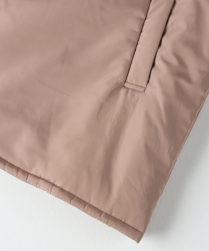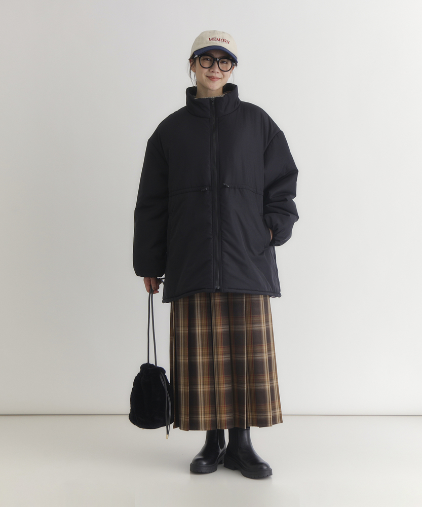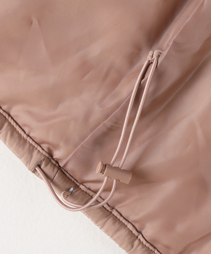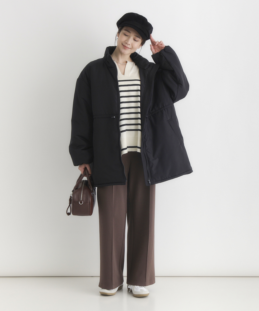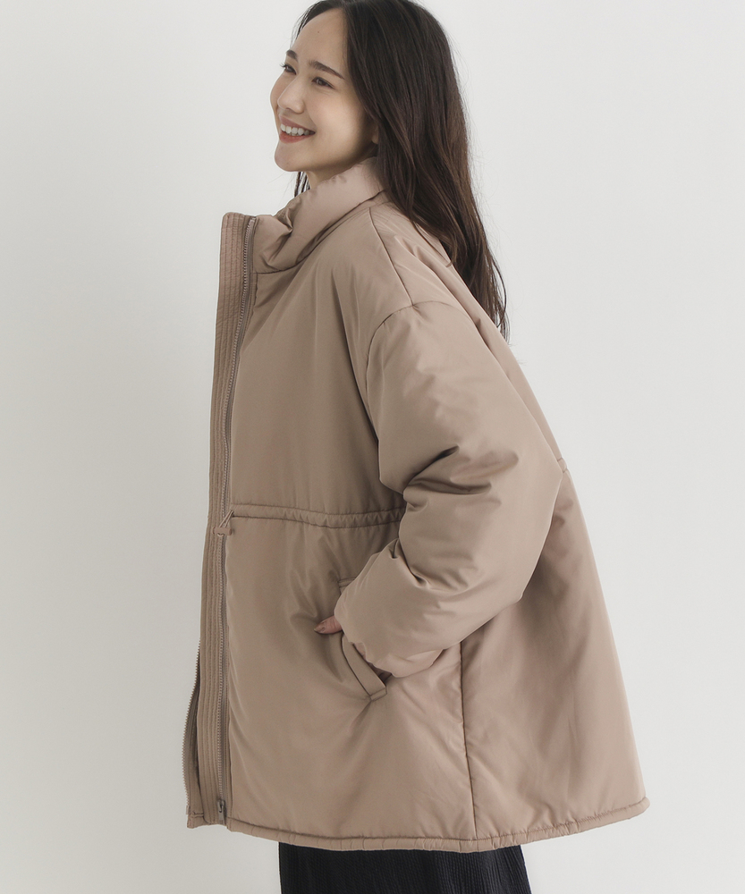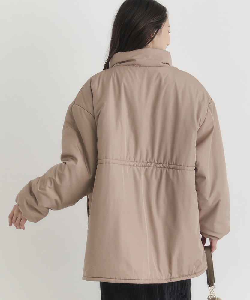 【仕様】スッキリとしたシルエットに拘った中綿ショートジャケットです。お尻まで隠れるミドル丈仕様となっており、ウエストのドロストで調整も可能です。フードは取り外しが可能で、シーンに応じた着こなしができるのもポイント。【素材】 ポリエステル100%の中綿が、軽量でありながら確かな保温性を提供。柔らかいタッチとしなやかな風合いが特徴で、着心地の良さを追求しています。外部からの風をしっかりと防ぎ、快適な温かさを保ちながらも、動きやすさも兼ね備えた機能的な素材です。 【スタイリング】 カジュアルなパンツやリブパンツと合わせて、休日のカジュアルスタイルにぴったり。レイヤードスタイルでタートルネックや薄手のニットを重ねると、シーズン感を楽しむことができます。シンプルなボトムに羽織るだけで、スタイリッシュでありながらも楽に過ごせるコーディネートを実現します。