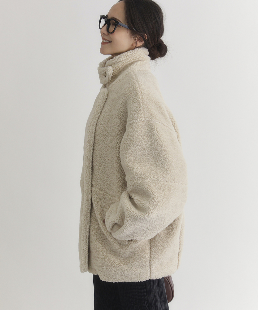 【仕様】マルチWAY仕様のボアジャケットは、スタイルやシーズンに応じて幅広く着こなせるアイテム。カジュアルすぎず大人っぽくも仕上げるため、様々なシーンでの活躍が期待できます。ボリューム感のある袖もデザインのポイント。【素材】 柔らかいボア素材を使用しており、保温性と肌触りの良さが魅力。軽やかな着心地で、重ね着にも適したアイテムです。暖かさを保ちつつ、見た目にもリラックスした印象を与えます。 【スタイリング】 ややゆったりとしたシルエットは、動きやすさを確保しつつ、リラックスしたスタイルを演出。重ね着をしても快適なフィット感があり、パンツやスカートなど、幅広いコーディネートにマッチします。