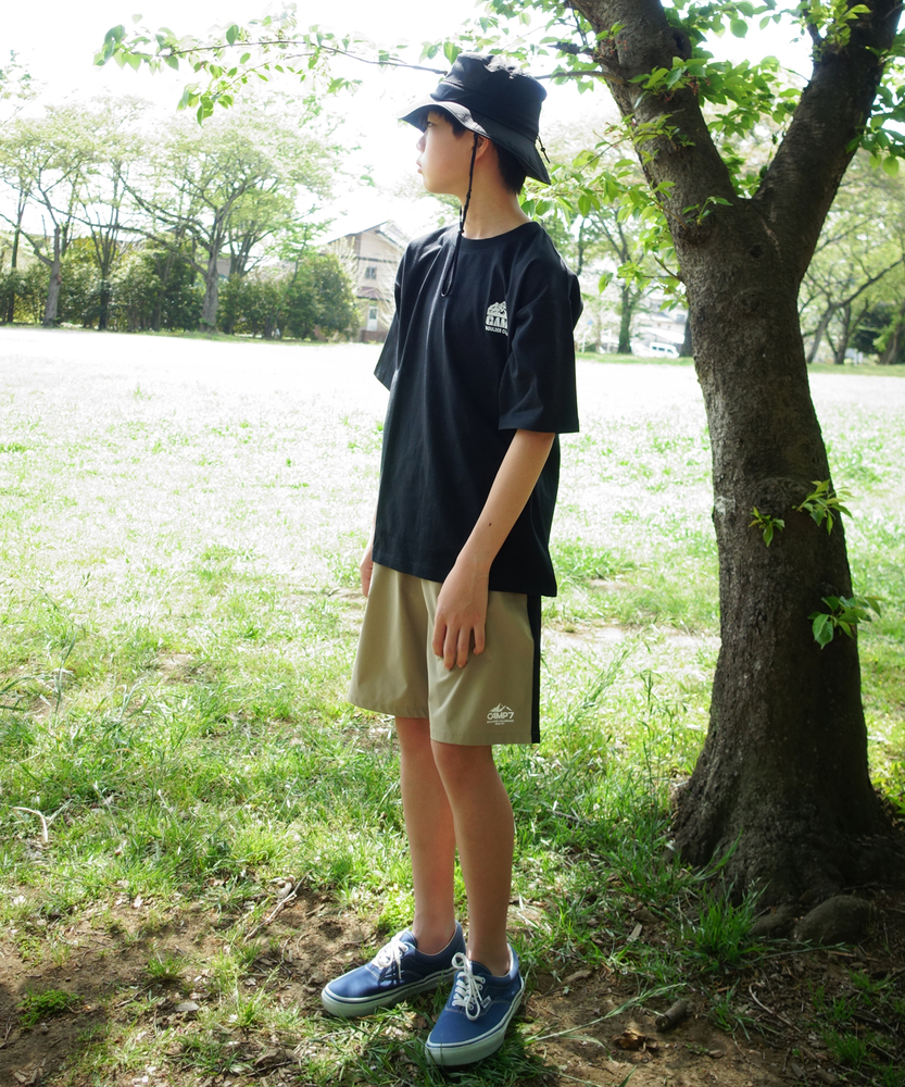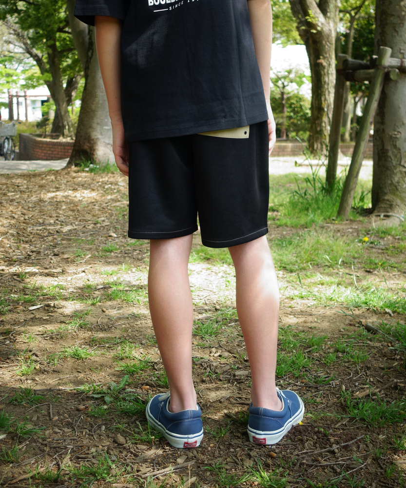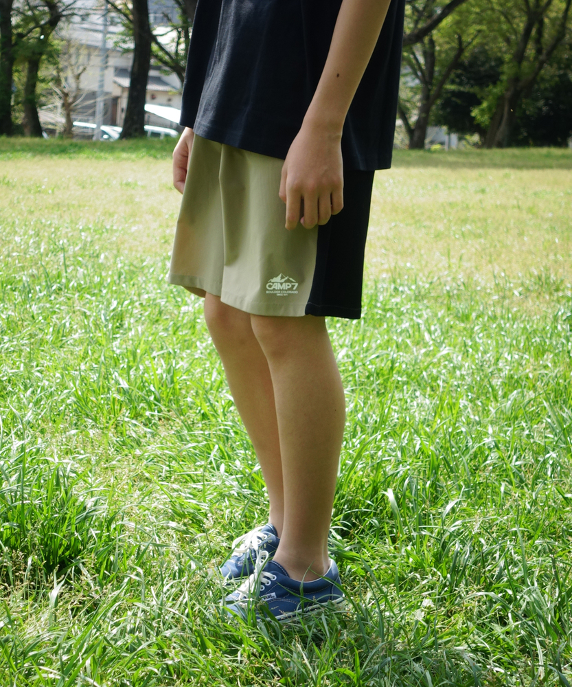 【仕様】異素材の組み合わせが特徴的なショートパンツ。前身頃には軽やかな布帛素材を使用し、後身頃には伸縮性に富んだカットソー素材を取り入れることで、快適さと動きやすさを両立しています。タウンユースからアウトドアシーンまで幅広く活躍するデザインです。【素材】薄手の布帛とフィット感のあるカットソー素材を組み合わせることで、通気性と動きやすさを兼ね備えています。これにより、暑い日でも涼しさを保ちながら、アクティブに動けることが実現します。お子様の遊びにぴったりのアイテムです。【スタイリング】シンプルながらも存在感のあるショートパンツは、Tシャツやタンクトップと合わせることで、軽快なカジュアルスタイルが完成します。また、アウターに風を通す軽めのジャケットを合わせれば、お出かけシーンにも対応できます。様々なシーンで活用できるアイテムです。