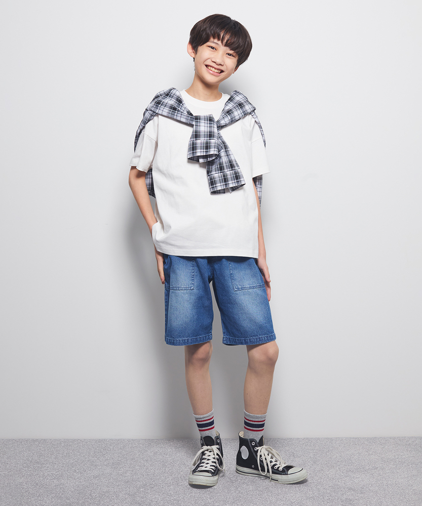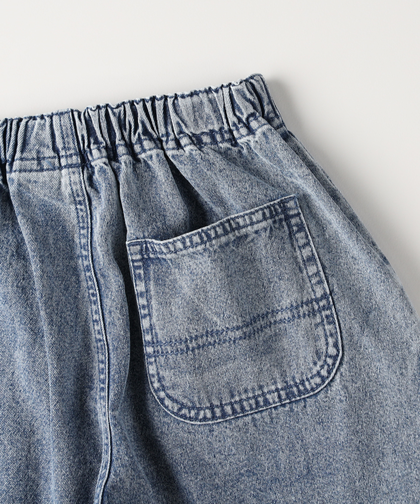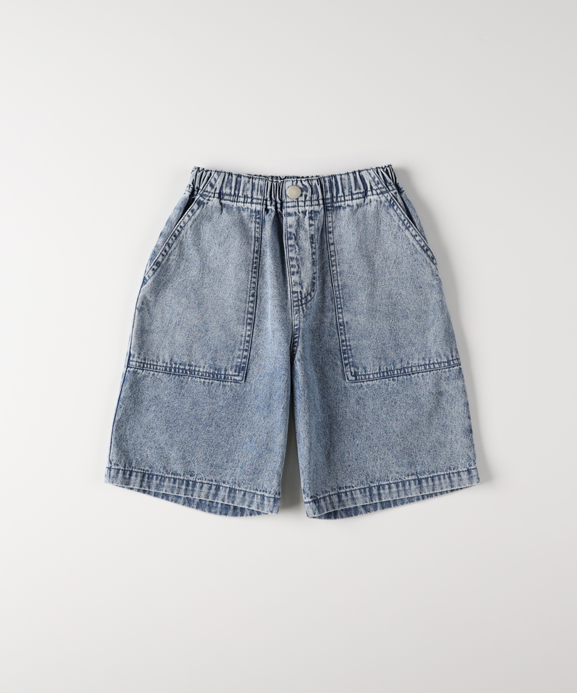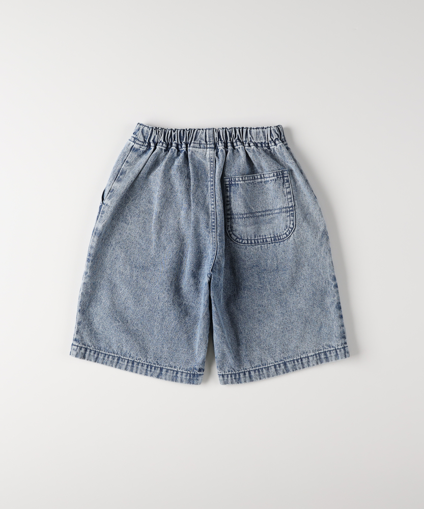 【仕様】シンプルでありながら洗練されたデニムショートパンツは、どんなトップスとも合わせやすいアイテム。ウエストのゴム仕様で着脱も簡単、元気な子どもたちのアクティブな動きにぴったりのデザインです。【素材】 柔らかなデニム素材を使用しており、快適さと耐久性を兼ね備えています。通気性が良く、夏の暑い日でもさらっと過ごせるため、遊び盛りの子どもたちにおすすめです。 【スタイリング】 Tシャツやカラフルなトップスと合わせて、カジュアルで爽やかなコーディネートを楽しめます。スニーカーやサンダルを合わせることで、日常のアクティブなシーンにぴったりなスタイルに仕上がります。