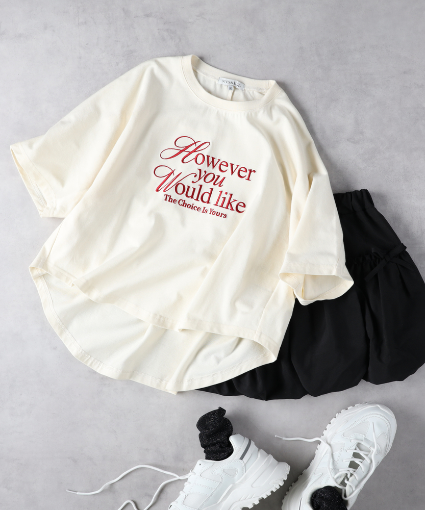 【仕様】5分袖ドルマンTシャツは、動きやすさを重視したゆったりとしたシルエットが特徴です。裾のラウンドデザインがかわいらしさを演出し、フロントのメッセージプリントが子どもたちの個性を引き立てます。カジュアルながらもおしゃれ感を忘れない一着です。【素材】 柔らかく肌触りの良いコットン素材を使用しており、子どもが快適に過ごせるよう工夫されています。通気性が高く、デイリーに着用してもストレスフリー。洗濯後も形崩れしにくく、使い勝手の良さも魅力の一つです。【スタイリング】デニムやショートパンツとの組み合わせで、元気な印象を与えることができます。また、レギンスを合わせることで、動きやすさをさらにアップ。スニーカーやキャップを加えて、休日のお出かけコーデにぴったりなスタイルを楽しめます。