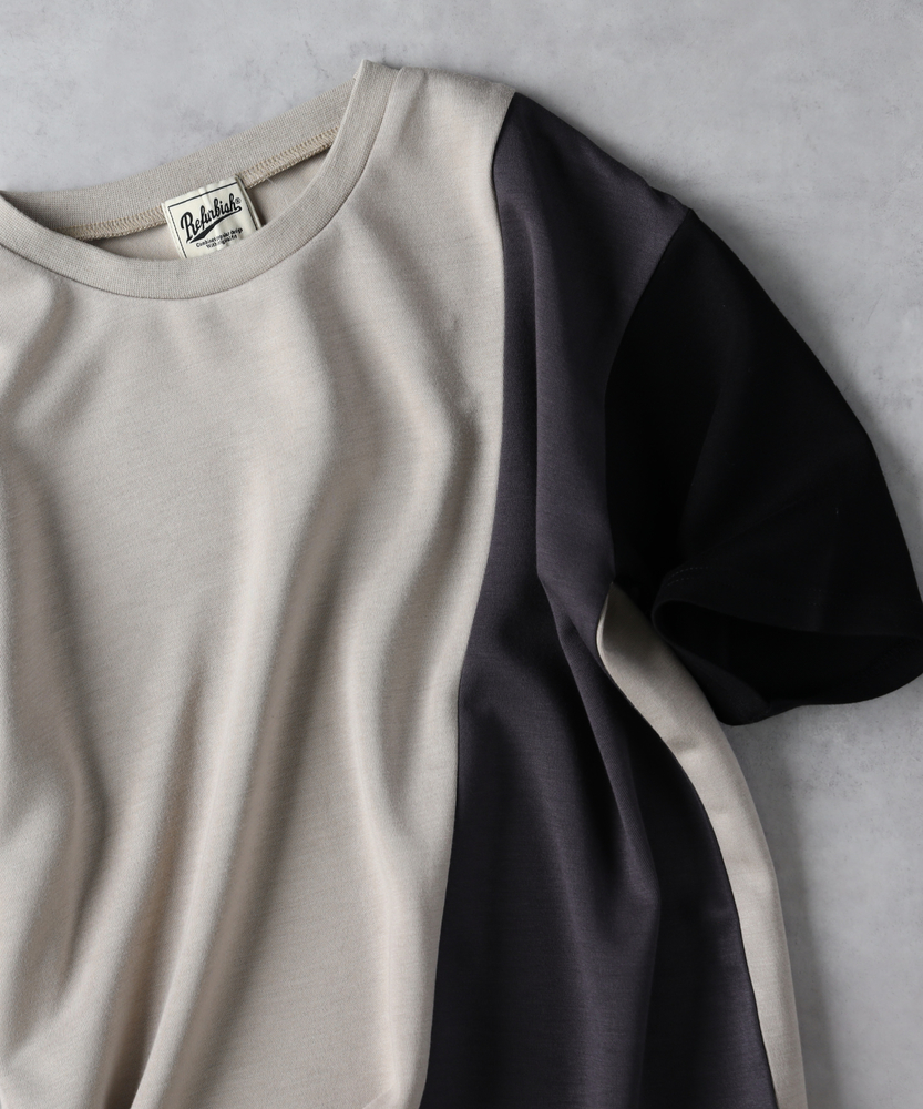 【仕様】ややゆったりとしたシルエットが特徴のTシャツで、トレンド感溢れる切替配色が魅力。シンプルながらも存在感があり、どんなスタイルにも合わせやすいデザインです。カジュアルなファッションが好きなお子様にぴったりのアイテムです。【素材】 接触冷感仕様の素材を使用しているため、暑い季節でも快適に過ごせます。柔らかでやさしい肌触りが、遊び回るお子様の肌に優しいのがポイント。デイリー使いにも最適な機能性です。 【スタイリング】 デニムやチノパンと合わせたカジュアルスタイルがおすすめ。サンダルやスニーカーと合わせれば、元気で爽やかな印象に。外出時は、トレンドのキャップや小物使いで個性を演出しても◎。
