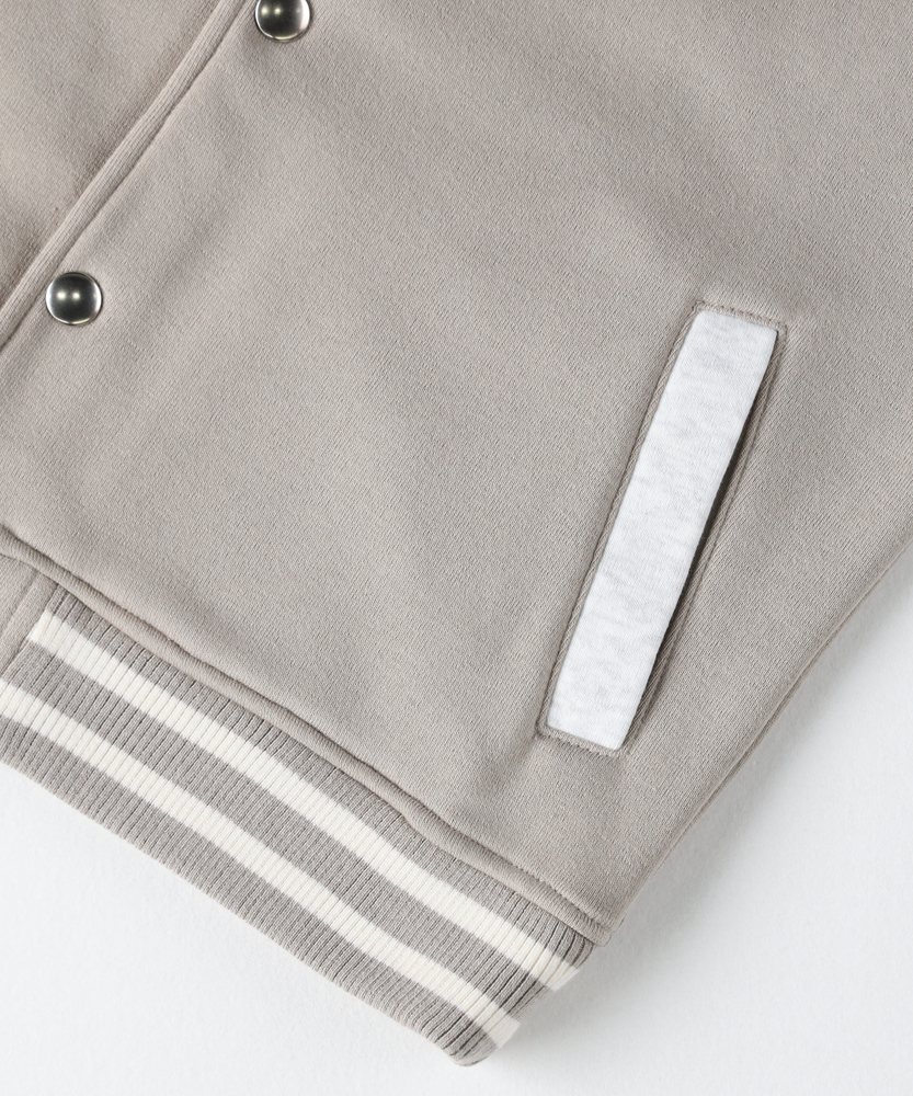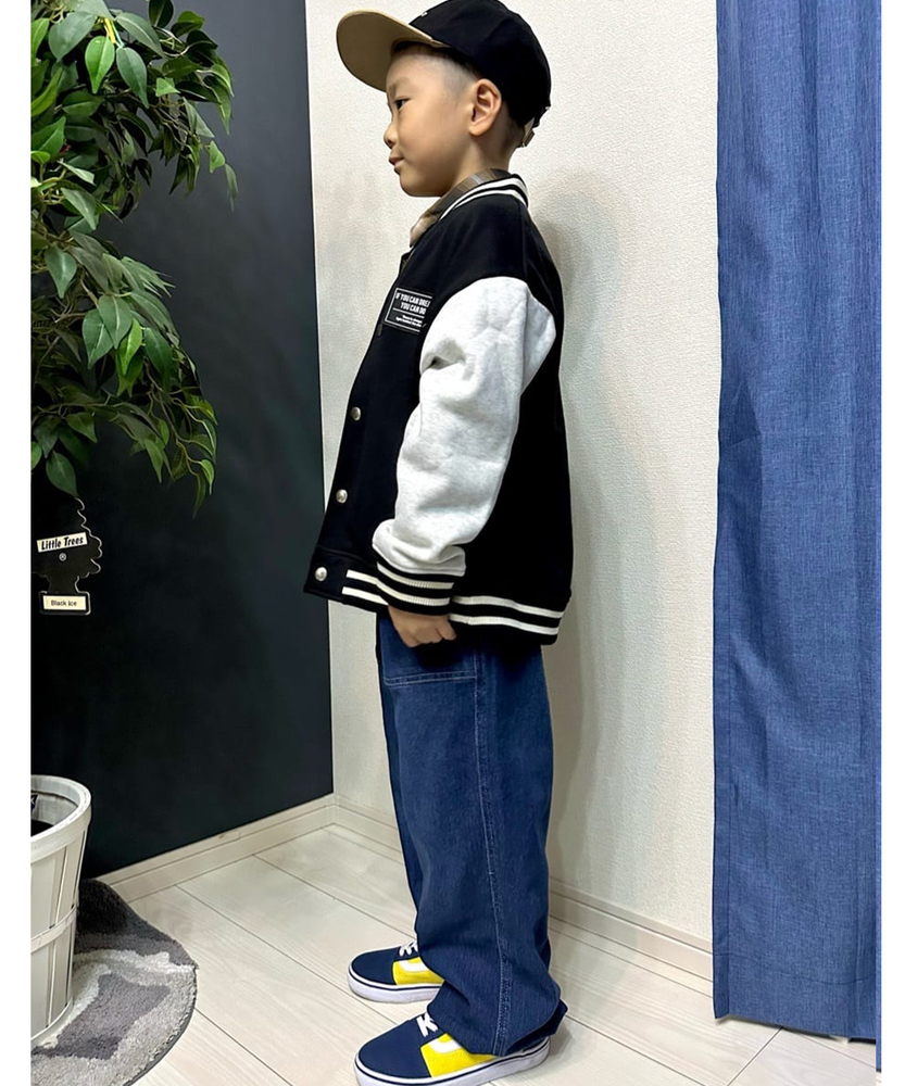 【仕様】スタイリッシュな裏起毛スウェットスタジアムジャンパーは、カジュアルな印象を与えつつも、洗練されたデザインが魅力。異素材の袖がアクセントとなり、個性的なスタイルを演出します。フロントのボタンとポケットが機能性を高めています。【素材】 裏起毛のスウェット素材は、柔らかく温かみがあり、寒い季節でも快適に着用できます。通気性も良く、アクティブなお子様にぴったりの一着です。耐久性にも優れ、日常使いに最適です。 【スタイリング】 デニムやチノパンと合わせてカジュアルに着こなすのがおすすめ。シンプルなTシャツやタートルネックと合わせることで、スタジャンの魅力を引き立て、トレンド感のあるコーディネートが完成します。