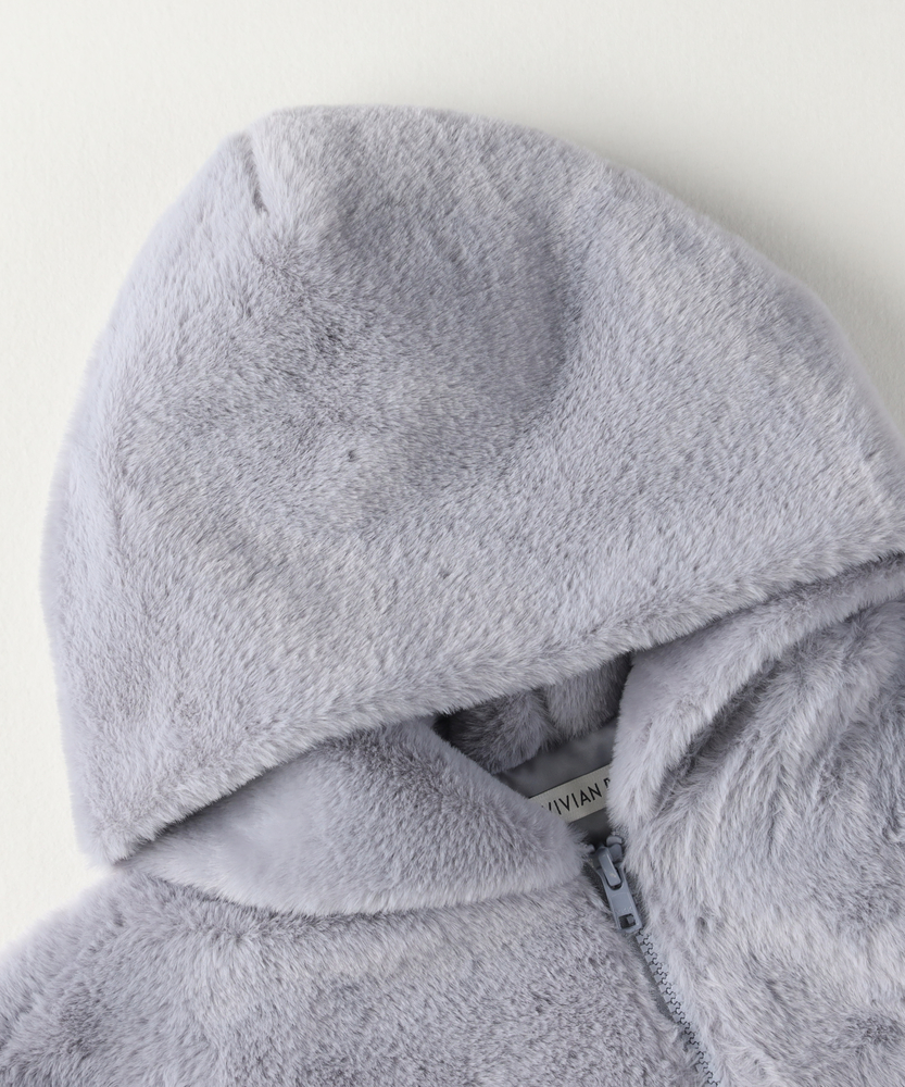 ※オンラインショップ、一部店舗の先行販売となります。また店舗での発売日と前後する可能性がございます。予めご了承ください。【仕様】可愛らしいフード付きのフェイクファーブルゾンは、レギュラーシルエットで着やすさ抜群。ふわふわとした素材感が、お子様の愛らしさを引き立てます。袖口と裾口のゴム仕様が、シルエットに遊び心をプラスしています。女の子にぴったりの冬に映えるカラーラインアップです。【素材】 肌触りの良いフェイクファー素材を使用しており、軽やかでありながら保温性も高いのが特徴です。柔らかな質感が、着るたびに心地よさを感じさせ、アクティブな日常をサポートします。 【スタイリング】 デニムやスカートと合わせてカジュアルに、またはレギンスと組み合わせてスポーティーに着こなすのがおすすめ。シンプルなインナーと合わせることで、フェイクファーのボリューム感を引き立て、スタイリッシュな印象を与えます。