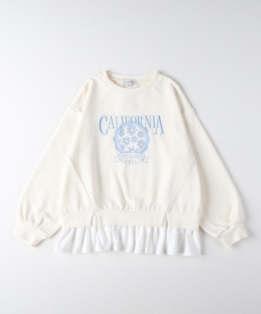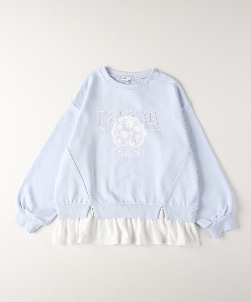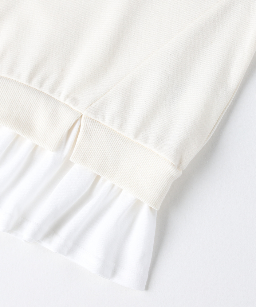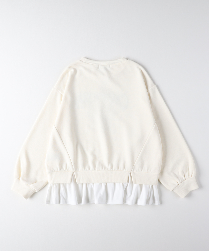【仕様】キュートなフェイクレイヤードスウェットは、カジュアルな印象を与えつつも、フリルのレイヤードデザインが特徴です。胸元のロゴが目を引き、遊び心満載のスタイルを演出します。シンプルながらも個性的な一着です。【素材】 柔らかなスウェット素材を使用しており、着心地が良く、動きやすさも抜群です。適度な厚みがあり、保温性も高く、寒い季節でも快適に過ごせます。耐久性にも優れ、日常使いに最適です。 【スタイリング】 デニムやレギンスと合わせてカジュアルに、またはスカートと組み合わせて少しおしゃれに着こなすのがおすすめ。シンプルなインナーと合わせることで、レイヤードデザインの魅力を引き立て、トレンド感のあるコーディネートが完成します。