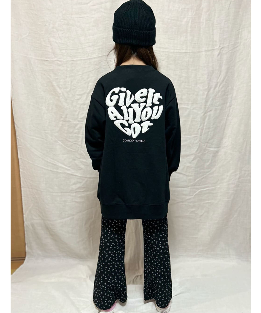 【仕様】キュートなハートサガラ刺繍が施されたスウェットチュニックは、カジュアルでありながらも個性的な印象を与えます。バックに大きく施されたデザインが、元気な雰囲気を演出。フリルの裾が可愛らしさをプラスしています。【素材】 柔らかなスウェット素材を使用しており、着心地が良く、動きやすさも抜群です。適度な厚みがあり、保温性も高く、寒い季節でも快適に過ごせます。耐久性にも優れ、日常使いに最適です。 【スタイリング】 デニムやレギンスと合わせてカジュアルに、またはスカートと組み合わせて少しおしゃれに着こなすのがおすすめ。シンプルなインナーと合わせることで、刺繍デザインの魅力を引き立て、トレンド感のあるコーディネートが完成します。