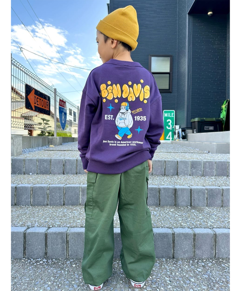 【仕様】ユニークなグラフィックが魅力的なこちらのスウェットプルオーバー。さまざまな色とデザインのアソートが揃い、お子様たちの個性を引き立てます。カジュアルでありながら遊び心満載で、毎日のコーデに楽しさをプラス。【素材】 柔らかなコットンブレンドを採用し、心地よい着心地を実現。しっかりとした厚手の生地が、暖かさを保ちながらも動きやすさを妨げません。日常からアクティブなシーンにも対応できる、実用的なアイテムです。 【スタイリング】 このスウェットは、リラックスしたパンツと合わせてカジュアルに着こなすのがおすすめ。レイヤードスタイルとして、Tシャツやヒートテックをインに着ることで、寒い日でも快適に過ごせます。スニーカーとの相性も抜群で、元気な印象を与えます。