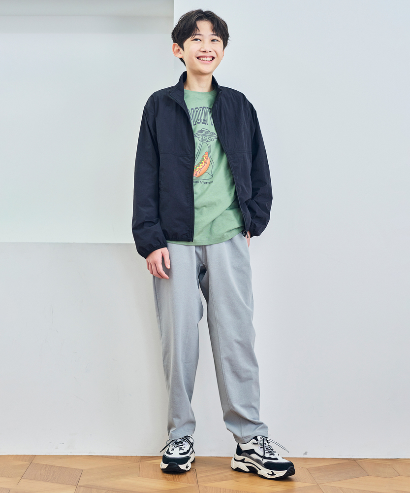 毎日着たくなる軽さ。シワ感がお洒落な、大人顔負けブルゾン。通学も遊びも。アクティブな毎日の相棒。■Point・表情豊かな「ワッシャー加工」あえてシワ感を出したお洒落な風合い。洗濯後のシワも気にならない。アイロンいらずで、ママも大助かり。・大人っぽい「スタンドネック」首元をすっきり見せる立ち襟デザイン。ジップを閉めれば風除けにも。フードがないので、ランドセルも背負いやすい。・丈夫で安心な「ナイロン素材」摩擦に強く、元気な遊びにも対応。汚れが付きにくく、落ちやすい。サラッとした肌触りで季節の変わり目に最適。・持ち運びに便利な「コンパクトさ」薄手で小さく畳んでも嵩張らない。バッグやランドセルに常備できる。朝晩の寒暖差対策にもおすすめ。・どんな服にも合う「万能デザイン」Tシャツの上にサッと羽織るだけで決まる。デニムやスカートとも相性抜群。通学から休日のお出かけまでフル稼働。【仕様】シンプルながらも、胸元の切り替えや袖口のシャーリングがアクセントになったスタンドジップブルゾンです。フードがないすっきりとしたデザインなので、通園・通学時の安全性も高く、ランドセルやリュックの邪魔になりません。適度なゆとりを持たせたシルエットで、スウェットの上からでも窮屈感なく着用でき、動きやすさを追求しています。【素材】ナイロン100%の軽量素材を使用しています。表面に細かいシワ感を出す「ワッシャー加工」を施すことで、のっぺりせず奥行きのある表情に仕上げました。耐久性が高く、汚れてもケアしやすいので、公園遊びなどのアクティブなシーンでも気兼ねなくガシガシ使っていただけます。【スタイリング】ロゴTシャツやボーダーカットソーの上に羽織れば、爽やかなカジュアルスタイルの完成。男の子はスウェットパンツでスポーティーに、女の子はワンピースやスカートと合わせた甘辛ミックススタイルも可愛らしく決まります。季節の変わり目の体温調節用として、一枚持っておくと非常に便利なアイテムです。【MPS】累計販売本数2000万本突破したMPSボトムをメインにデイリー使いしやすいディテールやデザイン、生地まで拘った大人顔負けなカジュアルスタイルにぴったりなアイテムを展開。