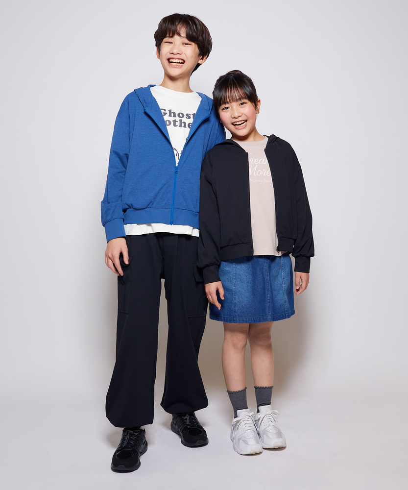 UVカットで、外遊びをもっと自由に。驚くほど伸びて動きやすい、万能ジップパーカー。通学からアウトドアまで、季節の変わり目の必需品。■Point・頼れるUVカット機能羽織るだけで手軽に紫外線対策が可能。デリケートなお子様の肌を日差しから守ります。・動き回れるストレッチ性縦にも横にも伸びる伸縮素材を使用。活発に遊ぶ日もストレスフリーな着心地。・体温調節が楽なジップ仕様サッと羽織れて、暑くなったらすぐ脱げる。寒暖差のある季節や冷房対策に最適です。・男女で使えるシンプルデザイン無駄な装飾を省いたミニマルなルックス。兄弟・姉妹でのリンクコーデやお下がりにも。・持ち運びも楽な軽量感ランドセルやバッグに入れても嵩張らない。旅行や林間学校などの行事にも重宝します。・毎日洗えるイージーケア汚れを気にせずガシガシ使えるタフさ。乾きやすく、忙しい毎日の強い味方に。【仕様】フロントのポケットや紐などの装飾を極力省き、すっきりと洗練された印象に仕上げたジップアップパーカーです。肩のラインを落としたドロップショルダーが、今っぽい抜け感とリラックスした着心地を演出。どんなテイストの服にも馴染むため、毎日のコーディネートに迷うことなく取り入れられます。【素材】商品名の通り、優れた伸縮性を持つストレッチ素材を採用しています。肌触りはなめらかで優しく、素肌の上から羽織ってもチクチクしません。UVカット機能を備えているため、日差しの強い時期の羽織りとしてはもちろん、プールサイドやキャンプなどのレジャーシーンでも活躍する機能的な一枚です。【スタイリング】男の子はカーゴパンツやショートパンツと合わせてスポーティーに、女の子はスカートやワンピースの上に羽織ってガーリーにと、ボトムスを選ばず楽しめます。シンプルな無地なので、ボーダーTシャツや柄物のボトムスとも好相性。通学時の防寒着としても、休日のお出かけ着としても幅広く活躍します。【MPS】累計販売本数2000万本突破したMPSボトムをメインにデイリー使いしやすいディテールやデザイン、生地まで拘った大人顔負けなカジュアルスタイルにぴったりなアイテムを展開。