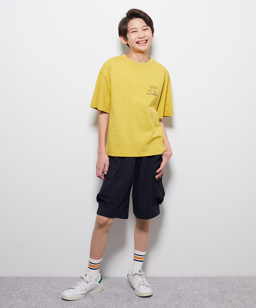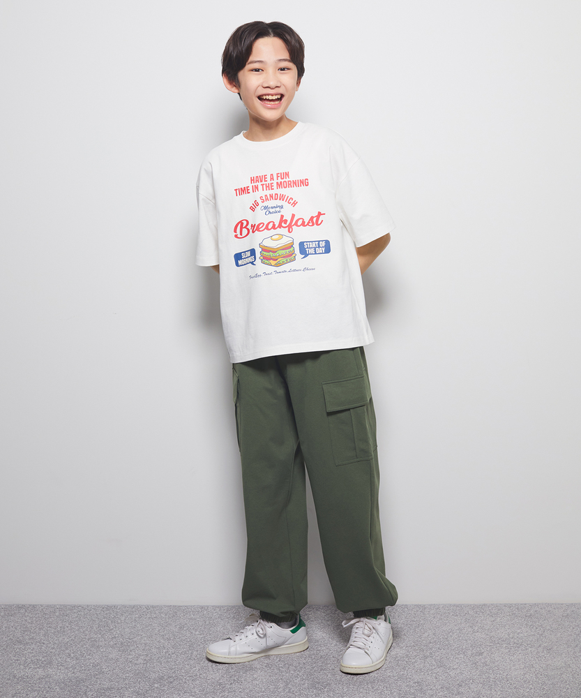 大人顔負けの「遊び心」。視線を集めるポップなフードロゴT。1枚で着映えする、主役級のデザイン。毎日のお出かけがもっと楽しくなる一枚。■Point・大人顔負けの「アメリカン」なグラフィック。架空のダイナーをイメージさせるレトロなイラスト。ヴィンテージライクな雰囲気が、こなれ感を演出します。派手すぎず、センス良く決まるデザインです。・1枚で着映えする「存在感」抜群のプリント。サンドイッチやホットドッグなど、愛らしいフードモチーフ。シンプルなボトムスに合わせるだけでコーデが完成。写真映えも間違いなしの可愛らしさです。・動き回るキッズに嬉しい「ゆったり」シルエット。程よく肩の落ちたドロップショルダーを採用。窮屈感なく、アクティブな動きを妨げません。リラックスして着られるサイズ感です。・素肌に嬉しい「柔らか」な着心地。汗をかきやすい季節にも快適な肌触り。なめらかな質感が、優しく体を包み込みます。デイリーに気兼ねなく使えるタフさも魅力。・カラーで異なる「こだわり」の配置。ホワイトはインパクトのあるフロントプリント。イエローは背中で語るバックプリント仕様。色違いで揃えたくなるバリエーションです。・ボトムスを選ばない「万能」な着回し力。デニムからスカートまで幅広くマッチ。通園・通学から休日のお出かけまで活躍。毎朝の服選びの強い味方になります。【仕様】アメリカのダイナーショップのメニューを思わせる、ポップでキャッチーなグラフィックTシャツです。カラーによってデザイン構成を変えており、ホワイトは大きなサンドイッチをフロントに、イエローはコミカルなホットドッグのキャラクターをバックにプリントしました。イエローのフロントには胸元のワンポイント刺繍を施すなど、細部まで遊び心を詰め込んでいます。【素材】直接肌に触れても心地よい、さらりとした柔らかな風合いのカットソー生地を使用しています。適度な厚みがあるため透けにくく、洗濯機で気軽に洗えるケアのしやすさも、忙しいパパ・ママには嬉しいポイント。吸水性のある素材感で、元気いっぱいに遊ぶお子様も一日中快適に過ごせます。【スタイリング】デニムやカーゴパンツと合わせた、王道のアメカジスタイルが特におすすめです。夏場はハーフパンツやサンダルと合わせて軽快に、肌寒い時期は長袖Tシャツとのレイヤードスタイルも楽しめます。キャップやスニーカーなどの小物使いで、スポーティにまとめるのもおしゃれです。