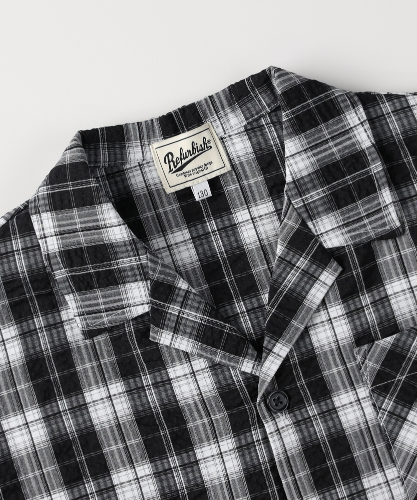 汗ばむ季節もさらりと快適に。大人顔負けのこなれ感スタイル。夏の主役にしたい、涼しげオープンカラー。■Point・さらりと快適なサッカー生地ぽこぽことした表面感が特徴。肌に張り付きにくく涼しげ。汗をかく季節も快適な着心地。・大人顔負けの開襟デザイン首元がすっきり見える仕様。程よい抜け感でおしゃれに。ちょっぴり背伸びした着こなし。・動きやすいゆったりシルエット身幅を広めにとったデザイン。元気いっぱい動いても快適。風通しが良く涼しさもアップ。・シワが気になりにくい素材感生地特有の凹凸感が味方に。お洗濯後のお手入れもラクチン。忙しいママとパパの強い味方。・アクセントになる胸ポケット左胸に配した便利なポケット。チェック柄は斜めの配置に。さりげないデザインのポイント。・着回しやすい落ち着いた配色合わせやすいシックなトーン。どんなボトムスとも相性抜群。デイリー使いに大活躍します。【仕様】大人っぽく洗練された印象を与える、オープンカラーデザインの半袖シャツです。身幅にゆとりを持たせたボックスシルエットは、リラックス感があり動きやすさも抜群。左胸のポケットがさりげないアクセントになり、特にチェック柄は生地を斜めに使い遊び心をプラスしています。Tシャツの上にサッと羽織るだけで、こなれたスタイルが完成します。【素材】表面にぽこぽことした凹凸のあるサッカー生地を使用しています。肌に触れる面積が少なくなるため、汗をかいてもベタつきにくく、さらりとした爽やかな着心地をキープ。通気性が良く、暑い季節にぴったりの素材感です。生地特有のシボ感のおかげでシワが目立ちにくく、日常的なお手入れがしやすいのも嬉しいポイントです。【スタイリング】無地のTシャツやタンクトップの上にサッと羽織る、レイヤードスタイルがおすすめです。フロントボタンを留めて一枚着として着こなすのもスマート。ハーフパンツやゆったりとしたイージーパンツを合わせれば、季節感のあるコーディネートに仕上がります。落ち着いたトーンなので、キャップやスニーカーで差し色を入れるのもお洒落です。