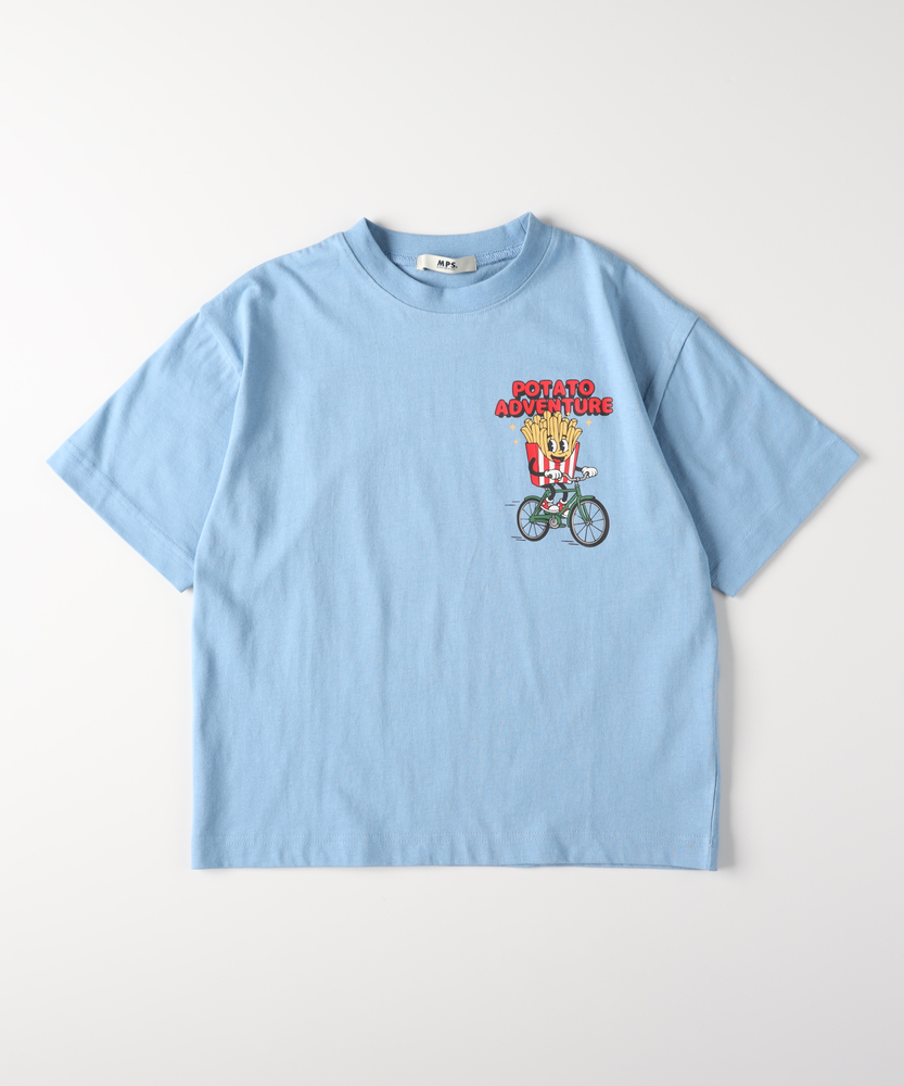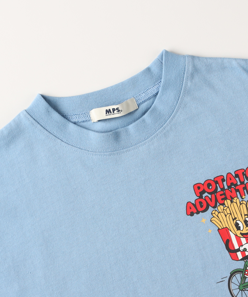 前から見ても、後ろから見ても隙なしの可愛さ。レトロポップな主役級アメカジトップス。毎日のお出かけがもっと楽しくなる一枚。■Point・遊び心溢れるバックプリント後ろ姿で差がつく大ぶりデザイン。アメリカンレトロなキャラクター。思わず笑顔になるポップな仕上がり。・使いやすい胸元ワンポイント前から見るとシンプルな印象に。羽織りのインナーとしても大活躍。どんなボトムスとも相性抜群です。・動きやすいゆったりシルエット活発なお子様も快適な着心地。身幅に余裕を持たせたリラックス感。風通しが良く、暑い日も爽やかに。・安心のクルーネック仕様お着替えしやすいベーシックな首元。開きすぎず、だらしなく見えません。毎日の通園や通学にもぴったり。・きょうだいでのお揃いにもおすすめ異なるモチーフでリンクコーデも。写真映えするキャッチーなルックス。お出かけやイベントがもっと特別に。・親御様も納得のデイリーウェア気兼ねなく洗えて毎日着たくなる。大人顔負けのセンスの良いカラー。クローゼットの一軍になるアイテム。【仕様】アメリカンヴィンテージを感じさせる、コミカルなフードキャラクターを落とし込んだ半袖カットソー。フロントは左胸にさりげないワンポイントを施し、バックには存在感抜群の大きなプリントを配置しました。ベーシックなボックスシルエットで、トレンド感のあるリラクシーな着こなしが叶います。【素材】活発に動き回るキッズに寄り添う、肌触りの良い柔らかな風合いが魅力です。汗をかきやすい季節でも心地よく着用でき、デイリーユースに最適なケアのしやすさもポイント。程よい厚みを持たせているため、一枚で着てもインナー感がなく、シーズンを通して長くご愛用いただけます。【スタイリング】デニムやチノパンと合わせた王道のアメカジスタイルはもちろん、カラーショーツを合わせてアクティブにまとめるのもおすすめです。少し肌寒い時期には、チェックシャツやジップパーカーを羽織り、胸元のワンポイントを覗かせるレイヤードスタイルも◎。キャップやスニーカーなどの小物使いで遊び心をプラスして。【MPS】累計販売本数2000万本突破したMPSボトムをメインにデイリー使いしやすいディテールやデザイン、生地まで拘った大人顔負けなカジュアルスタイルにぴったりなアイテムを展開。