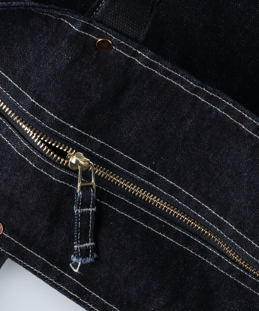 日本製素材、カイハラ和紙デニム(13OZ)を使用したトートバッグ。裏側にラミネート加工を施し、防水機能を加えています。デニムパンツを生産した際に発生した残り生地を使用しています。ムダを出さない、サスティナブルをコンセプトとした商品です。 店舗へのお問い合わせ品番:BN424115004