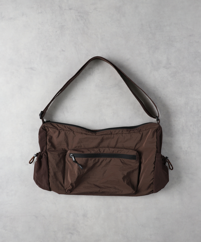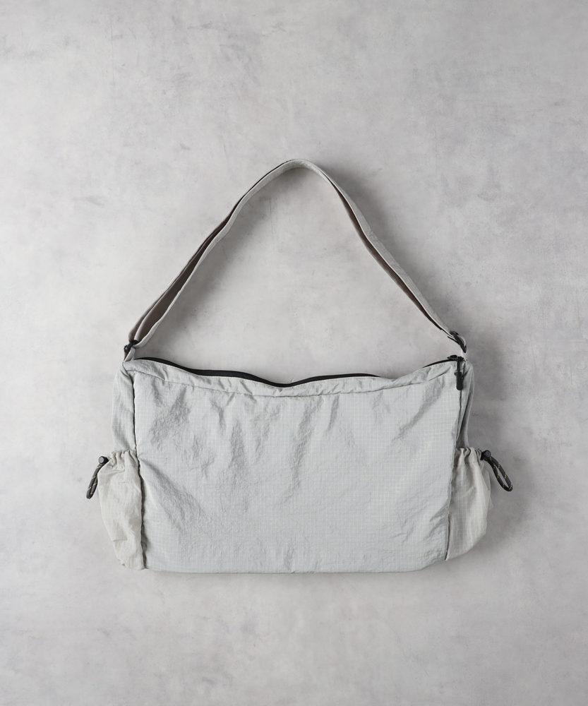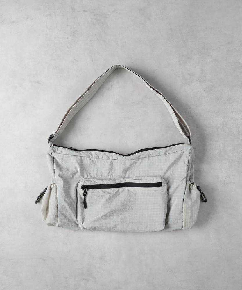 【仕様】軽量で耐久性のあるリップストップナイロンを使用したショルダーバッグ。両端にはペットボトルなどを収納できる立体ポケットが搭載されており、忙しい日常に便利です。スマートフォンや小物を整理しやすい小ポケットも備えており、すぐに取り出したいアイテムをサッと収納できます。内装には鍵を掛けられるナスカンも付いており、セキュリティ面も安心。シンプルながらも洗練されたデザインは、通勤や外出、趣味のシーンにもフィットします。忙しい毎日をスタイリッシュに彩る、使いやすさにこだわったアイテムです。