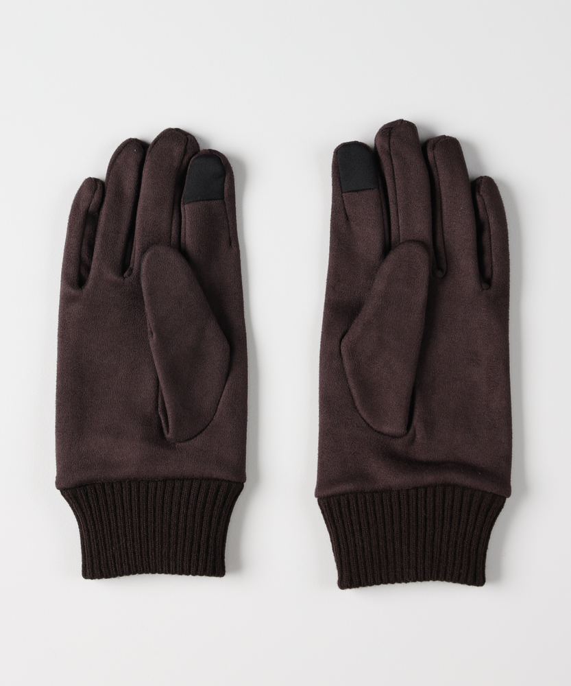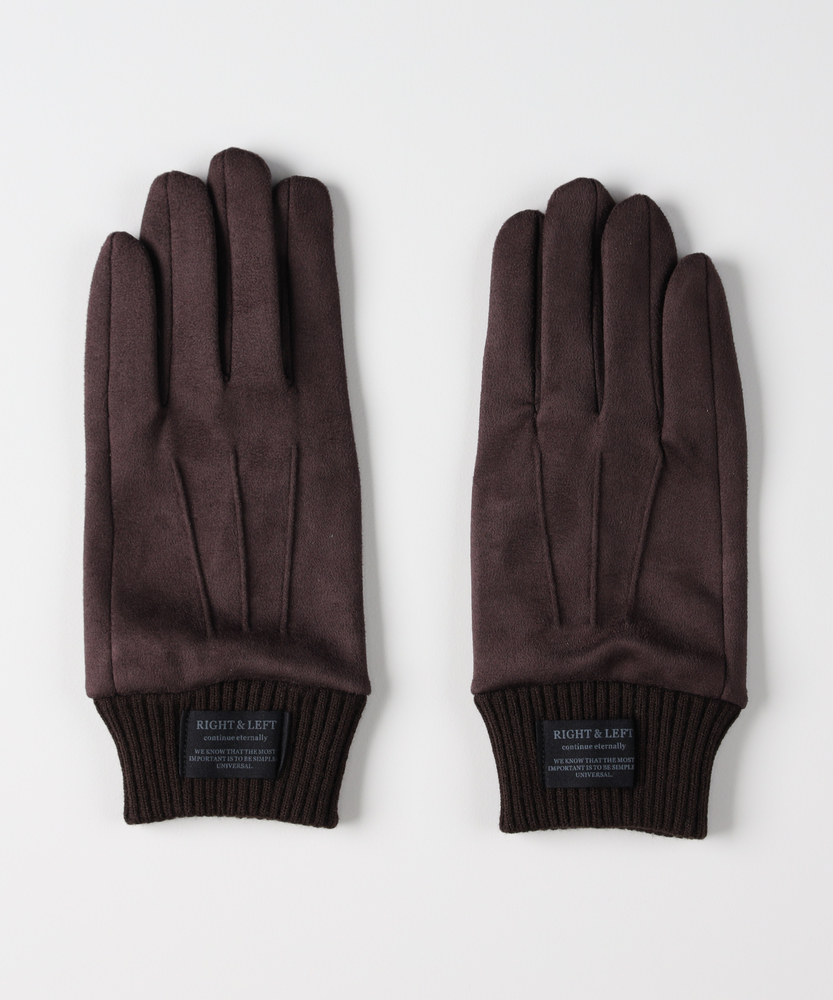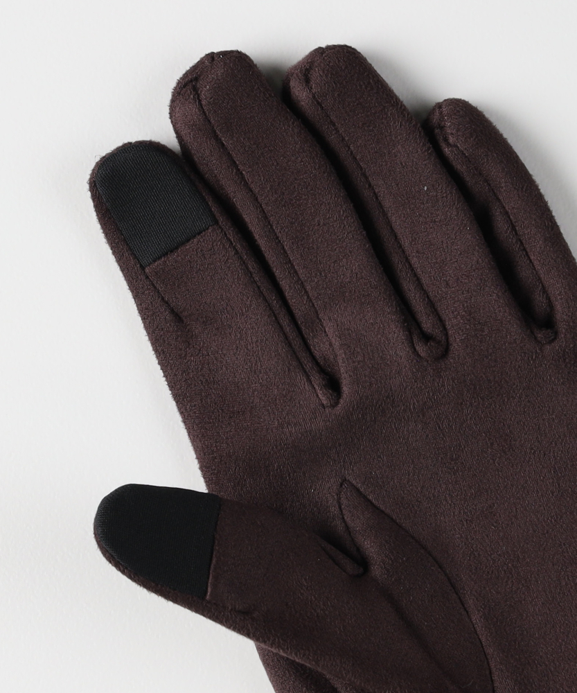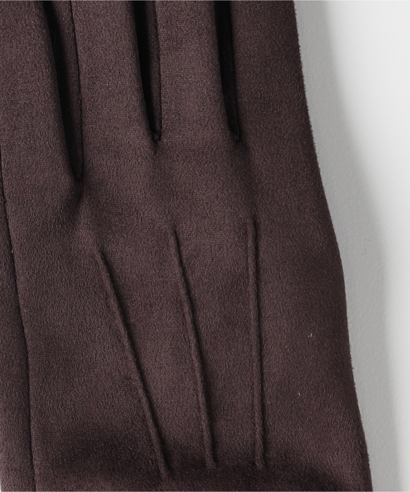 【仕様】柔らかな起毛感のフェイクスエードを用いたミニマルな佇まい。手の甲の縦ステッチが指先へと流れるシャープなラインを作り、リブの袖口と控えめなロゴが都会的なアクセントに。人差し指先のタッチ操作対応で実用性も両立します。【素材】 フェイクスエードの微起毛が肌当たりをやさしく包み込み、マットな質感で洗練された印象を演出。軽やかな保温性と柔軟さで装着感がよく、リブが手首をしっかりホールドするため冷気の侵入を抑えデイリーに扱いやすい仕様です。 【スタイリング】 程よくフィットする細身のフォルムはジャケットやロングコートの袖口にすっきり収まり、パンツスタイルのシャープさを引き立てます。ワンピースには抜け感を添え、同系の小物と合わせて品よくまとめると都会的な完成度が高まります。