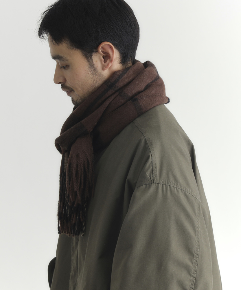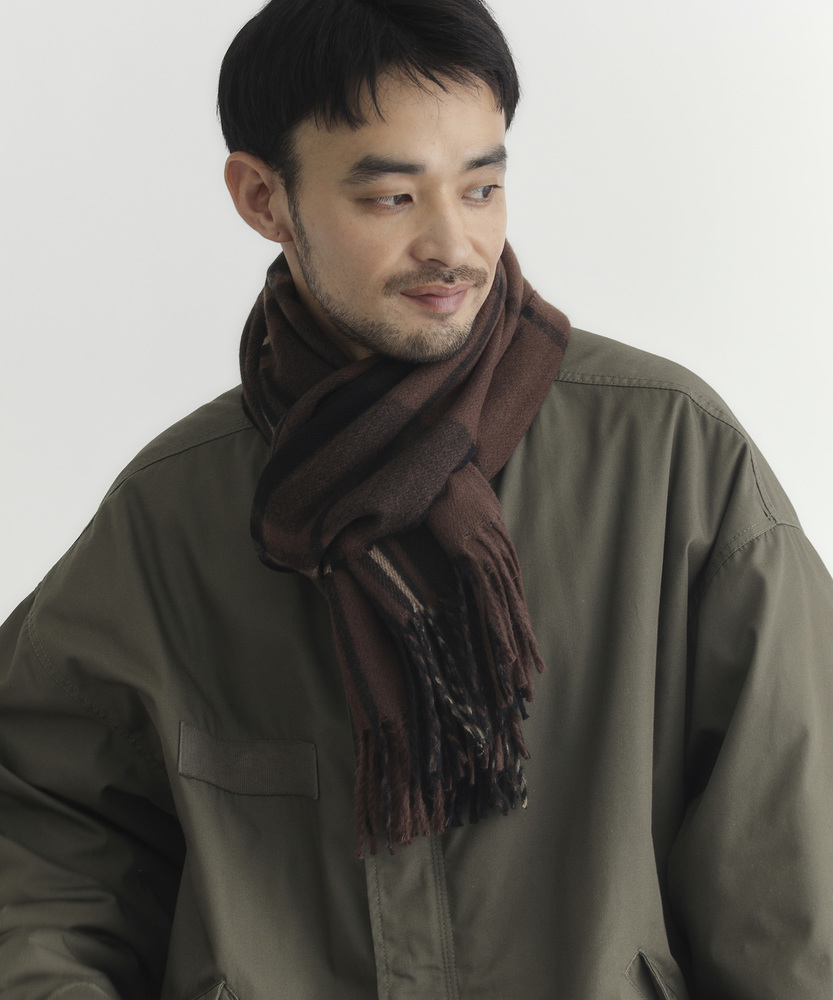 【仕様】先染めのチェック柄が特徴的なこの大判マフラーは、コーディネートのアクセントにぴったり。選べる2種類のチェックデザインが、その日のスタイルに合わせて多彩な表情を引き出します。洗練されたカラーコンビネーションが、どんなアウトフィットにも自然に溶け込みます。柔らかな素材が首回りを優しく包み込み、あたたかさを提供。寒い季節でも快適に過ごせるようデザインされています。フリンジディテールがさりげないオシャレを演出し、シンプルさとの絶妙なバランスが実現しています。ビジネスカジュアルに合わせれば、さりげないアクセントが大人の余裕を感じさせ、カジュアルスタイルにはリラックス感をプラスします。