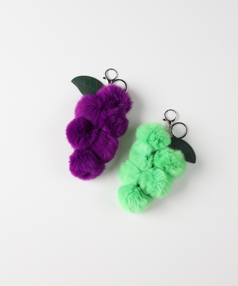 【仕様】ふんわりとしたポンポンを連ねてブドウの房を象ったチャーム。リーフのステッチワークと鏡面仕上げのメタルリングがモダンなアクセントを添え、さりげなく遊び心と上品さを両立させます。軽量で日常使いしやすく、バッグやキーに幅広く取り付け可能です。【素材】 ファー調ポンポンが柔らかな手触りと豊かなボリュームを生み、表情ある立体感を演出します。リーフはレザー調の引き締めパーツとなり、赤みの効いたステッチが洗練されたアクセントに。金具は堅牢で扱いやすく実用性も確保しています。 【スタイリング】 シンプルなトートやショルダーバッグにぶら下げてアクセントに。モノトーンやベージュの装いに差し色として添えると洗練された抜け感が生まれ、デニムやカジュアルスタイルには遊び心をプラスします。