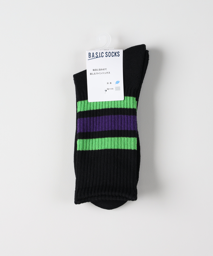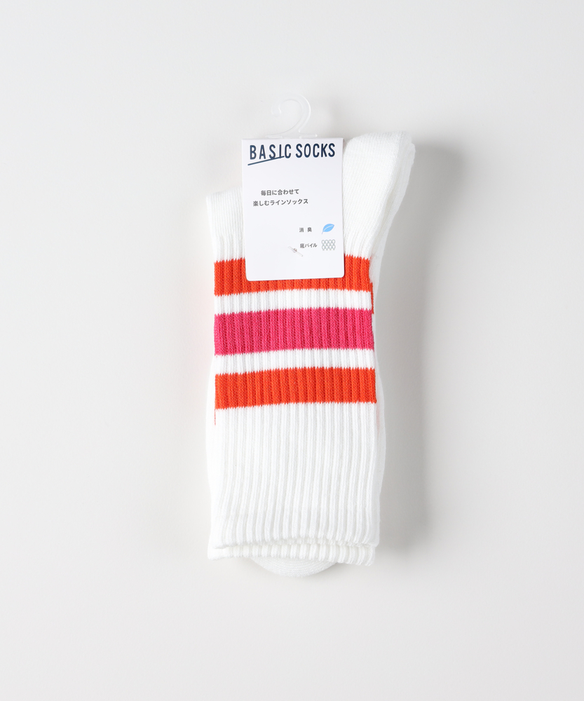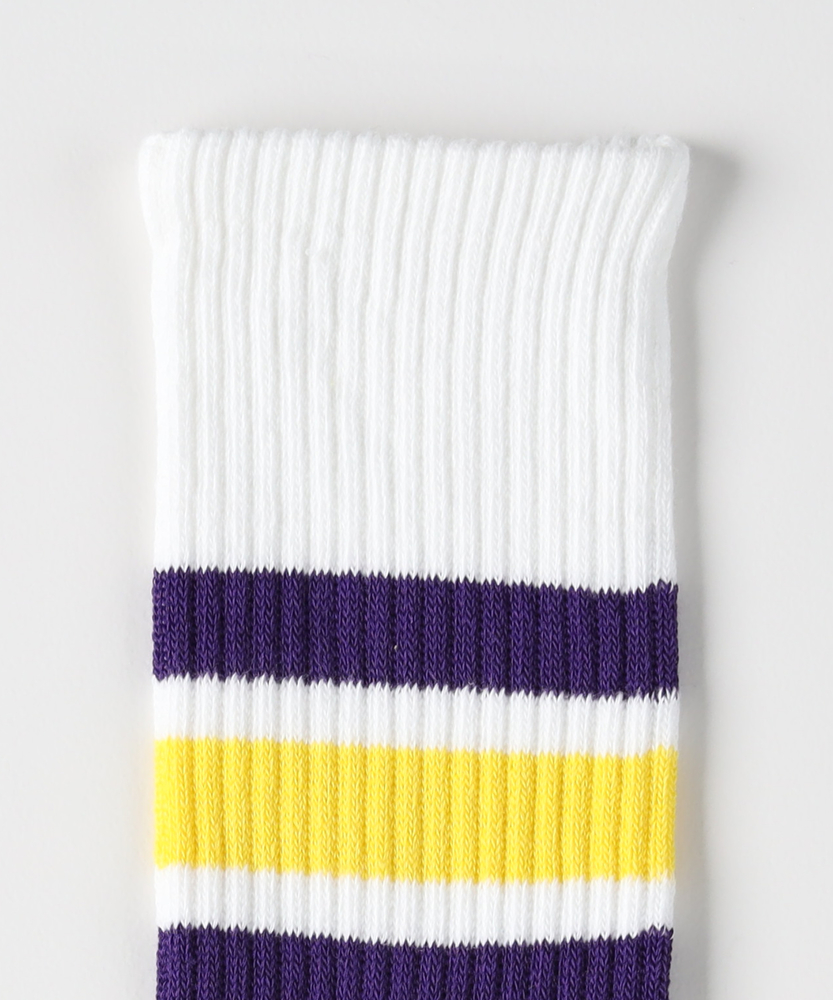 【仕様】リブ編みのハイカット丈が足元にクリーンな存在感を添える一足です。太めのラインがさりげないアクセントとなり、スポーティーさと都会的な上品さを両立。履き口のホールド感でずれにくく、日常の動きにも馴染みます。【素材】 程よい厚みのリブ編みでしっかりとした表情とソフトな足当たりを両立。伸縮性が高くフィット感を保ちやすいため、型崩れしにくくデイリーユースに頼れる素材感です。 【スタイリング】 ラインが効いたデザインは裾をロールアップしたチノやクロップドパンツと好相性。白スニーカーやレザーシューズと合わせて、スポーティーさを残しつつ洗練された足元に仕上げます。