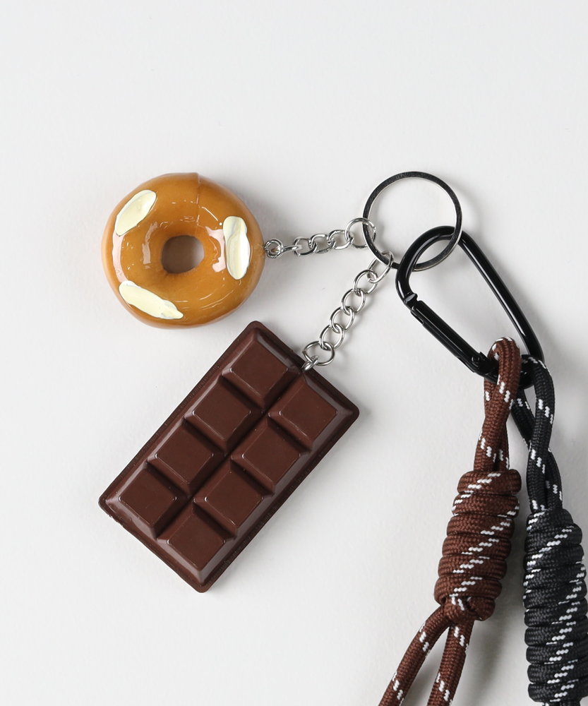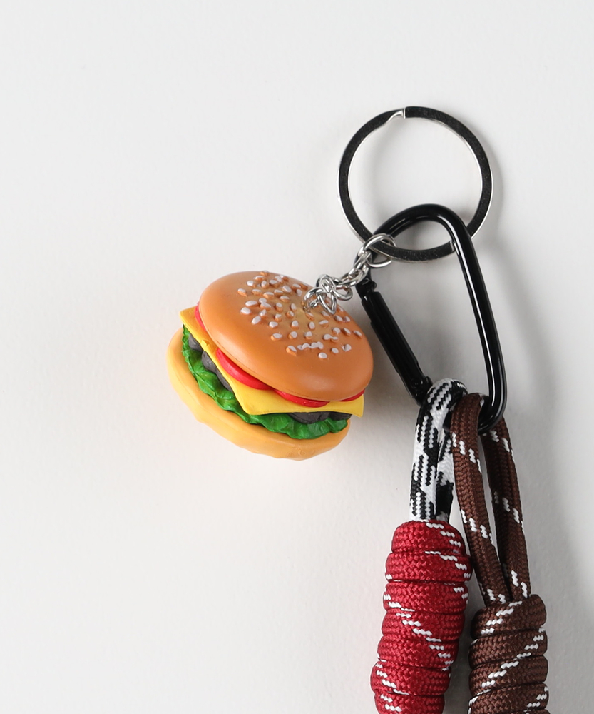 【仕様】無骨なカラビナとタフなパラコードに、どこかノスタルジックで愛嬌のあるモチーフを組み合わせた、大人の遊び心をくすぐるキーチャーム。スポーツやフードといったアメリカンポップな要素を、洗練されたコードの配色でモダンに昇華させています。機能美とウィットに富んだデザインは、ふとした瞬間に会話のきっかけを生むカンバセーションピースとしても活躍します。【素材】 アウトドアギアにも採用される耐久性に優れたパラコードを使用しており、しっかりとした密度とハリ感が信頼性を漂わせます。立体的で緻密なノット(結び目)のデザインが、プロダクトとしての質感を向上。先端の金属パーツやカラビナのマットな光沢感も相まって、チープに見えない、大人が持つにふさわしいこだわりのガジェットに仕上がっています。 【スタイリング】 デニムやカーゴパンツのベルトループにラフに引っ掛けるだけで、シンプルなメンズコーデに絶妙な「抜け感」と個性をプラスできます。愛用のバックパックやトートバッグのチャームとして取り入れれば、無機質になりがちなバッグ周りのアクセントに。クリーンなシャツスタイルやセットアップの外しアイテムとしてもセンス良く機能します。