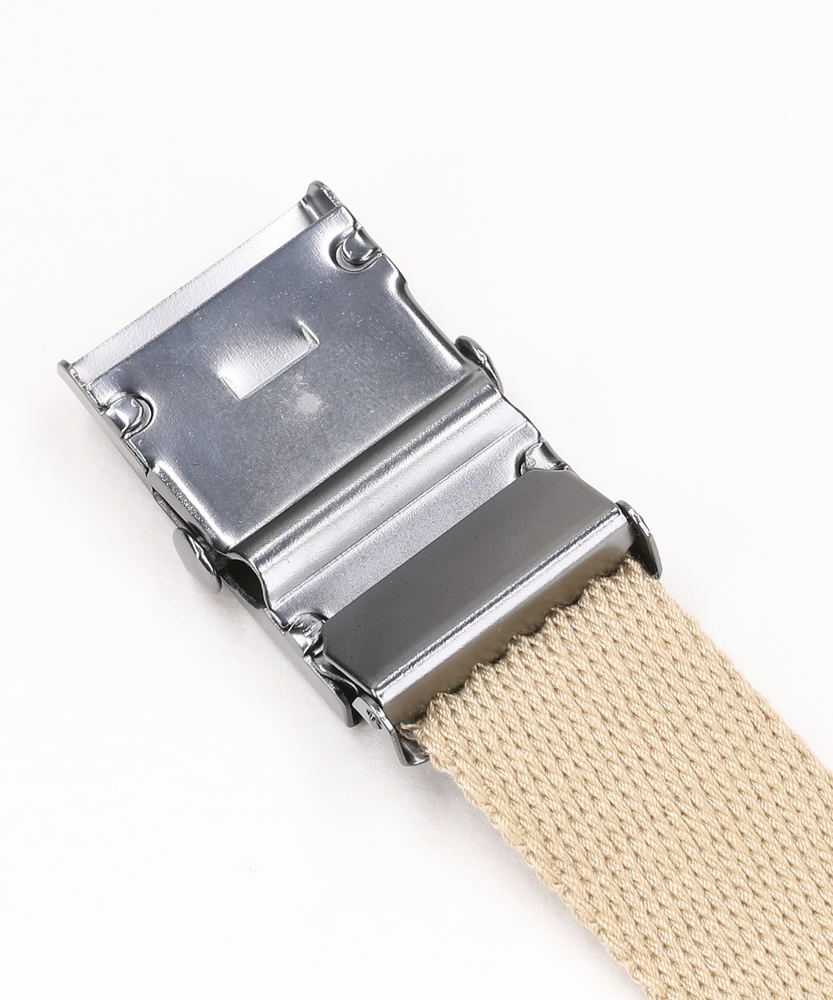 【仕様】ミリタリーの定番であるGIベルト。通常よりも少し細身に設定することで、ワークテイスト特有の野暮ったさを払拭し、スマートで都会的な印象に仕上げています。バックルなどの金属パーツはマットな質感で統一し、シンプルながらもチープに見えない洗練されたルックスを実現しました。【素材】高密度に織り上げられた厚手のテープ素材を採用しており、摩擦に強く耐久性は抜群です。ガシガシ使えるタフな質感ながら、適度な柔軟性もあり腰回りにしっかりとフィットします。ピン穴のないフリーサイズ仕様のため、好みの位置で無段階に固定でき、体型の変化やその日のボトムスの厚みに合わせてジャストサイズで着用できる利便性が魅力です。【スタイリング】カジュアルなパンツとの愛情が抜群。細身の29mm幅なら子供っぽくならず、程よい「抜け感」として大人っぽく決まります。アクティブに動くアウトドアシーンのアクセントとしても活躍する万能アイテムです。