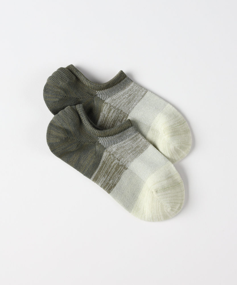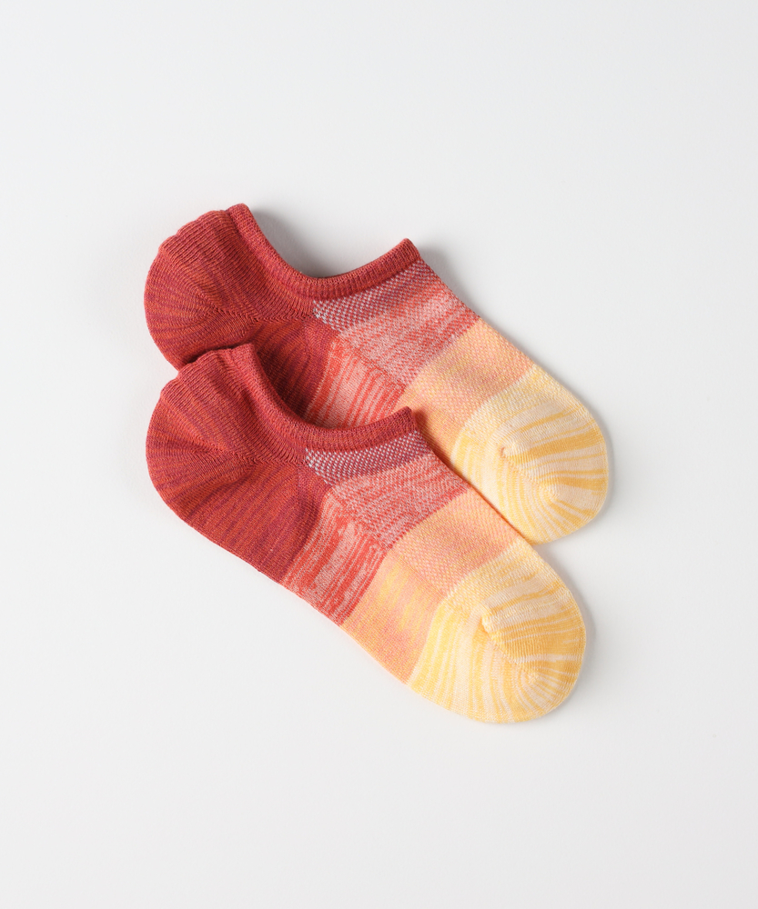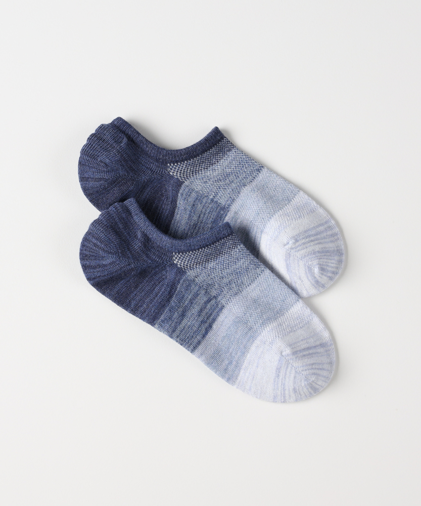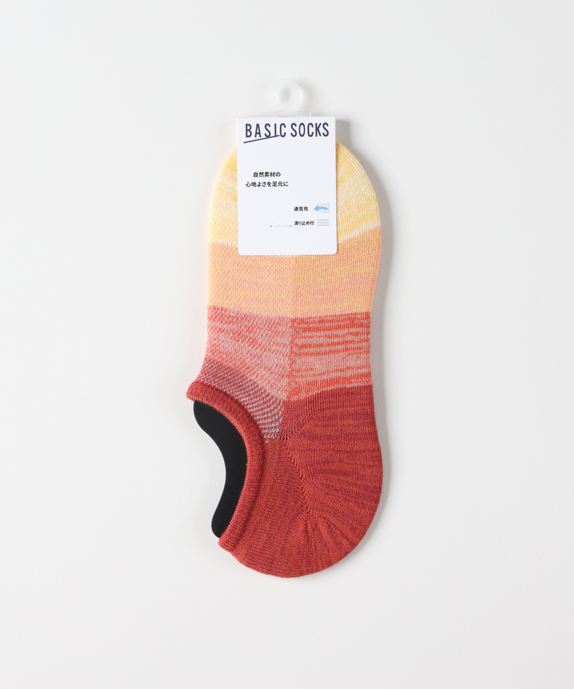 靴を脱いでも抜かりない、大人のグラデーション。「蒸れない・脱げにくい」が叶う快適メッシュ。自然素材の優しさで、足元から日常をアップデート。■Point・目を惹くグラデーション靴を脱いだ時も隙なし。遊び心のある美しい配色。大人の足元を格上げします。・快適なメッシュ編み仕様甲部分は通気性の良いメッシュ。不快な蒸れを軽減します。長時間の外出も快適に。・脱げにくい滑り止め付きかかと内側に滑り止めを配置。歩行中のズレを防ぎます。脱げるストレスを解消。・心地よいバンブー素材自然由来の素材を採用。なめらかな肌触りが魅力。足元をやさしく包み込みます。・スニーカーに隠れる丈感靴から見えにくいインステップ。足首をすっきり見せます。こなれたスタイリングに貢献。・選べる豊富なカラー落ち着きのある絶妙な色合い。その日の気分に合わせて。何足も揃えたくなるデザイン。【仕様】足元にさりげない遊び心をプラスする、洗練されたグラデーション柄のインステップソックスです。スニーカーから見えにくい絶妙な丈感で、足首周りをすっきりとスマートに演出。かかと部分にはホールドする滑り止めが施されており、歩行時に靴の中でソックスが脱げてしまう不快なズレを軽減します。【素材】自然素材であるバンブー由来の繊維を使用しており、なめらかで優しい肌触りが特徴です。さらに、足の甲にあたる部分は通気性に優れたメッシュ編みを採用。靴の中の嫌な蒸れを逃がし、汗ばむ季節やアクティブに動く日でも、一日中ドライで快適な履き心地をキープしてくれます。【スタイリング】お気に入りのローカットスニーカーと合わせるだけで、足首を見せる抜け感のあるモダンなスタイリングが完成します。靴を脱ぐシーンでも、計算された美しいグラデーション柄が目を惹き、大人の余裕とセンスをアピール。休日のカジュアルコーデからリラックススタイルまで幅広く活躍します。